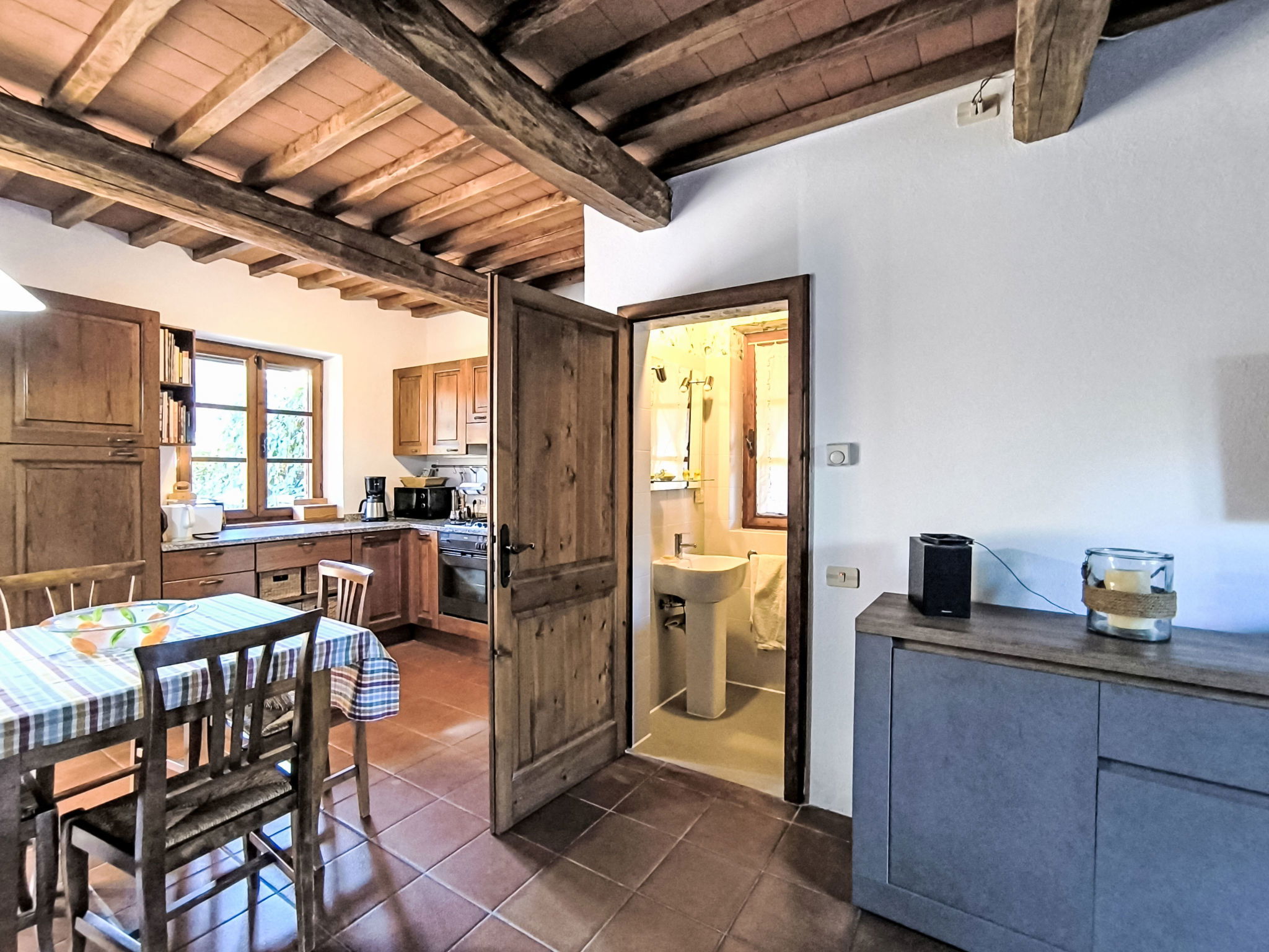 "Steffi's House", 3-room terraced house 95 m2 on 2 levels. Spacious, comfortable and cosy furnishings: large living/dining room with open-hearth fireplace " 19 km. Marina 24 km, golf course (18 hole) 17 km, sailing school 30 km, tennis 25 km. Nearby attractions: Vetulonia 11 km, grosseto 26 km, Castiglione della Pescaia / Punta Ala 25 km, Massa Marittima / Follonica 26 km. Hiking paths: Le Bandite di Scarlino 25 km. Please note: car recommended.