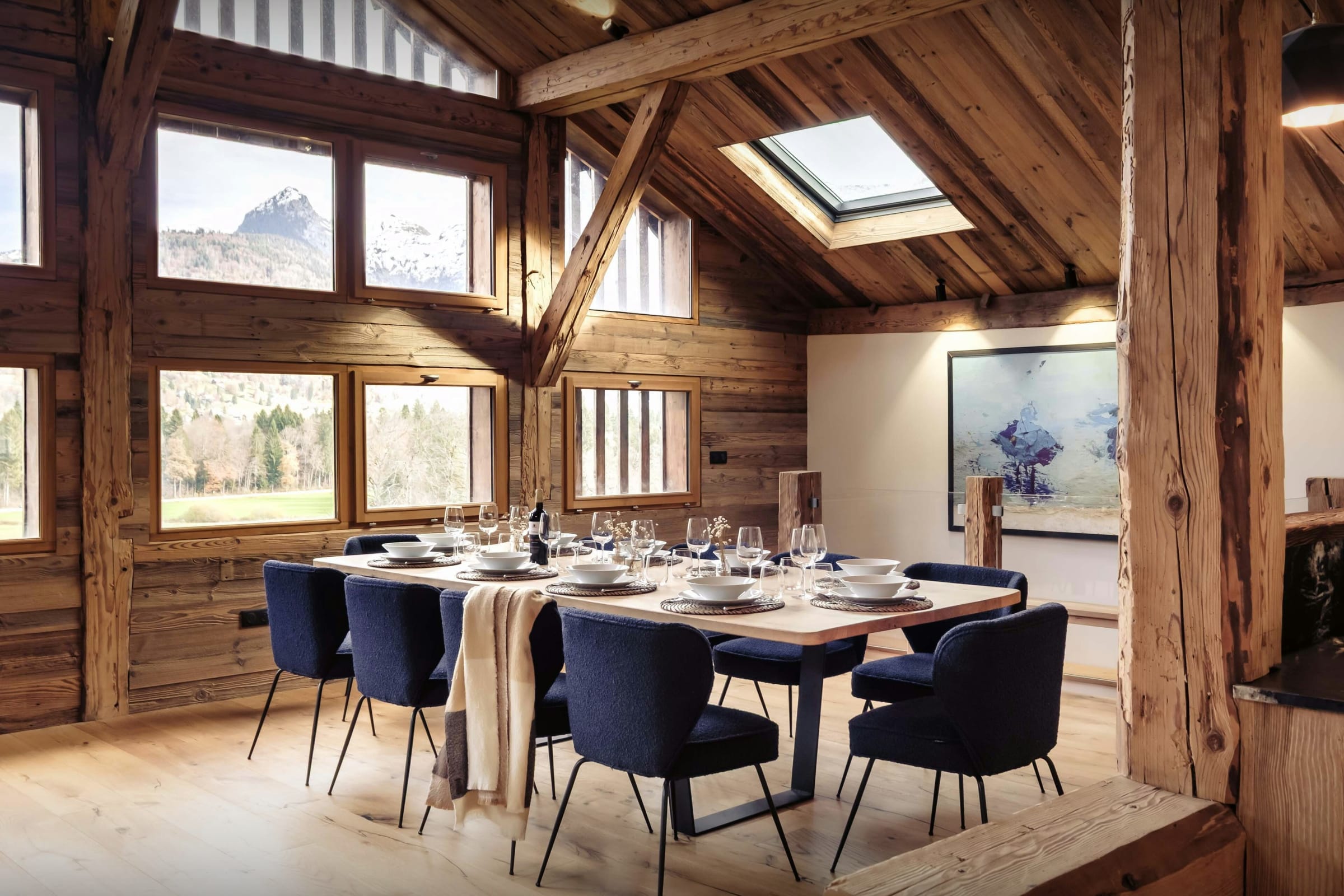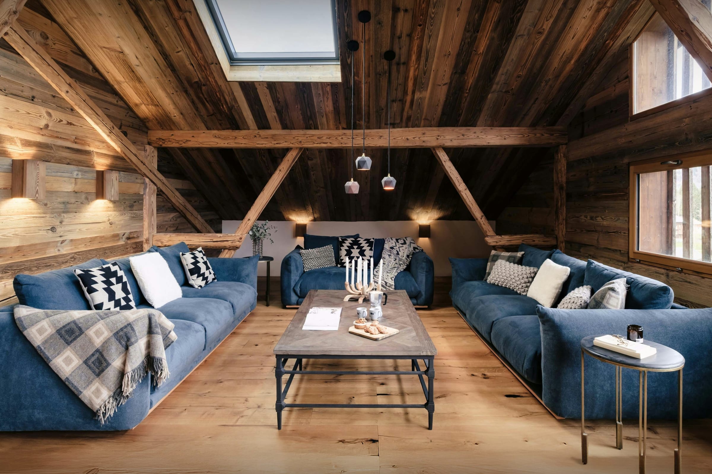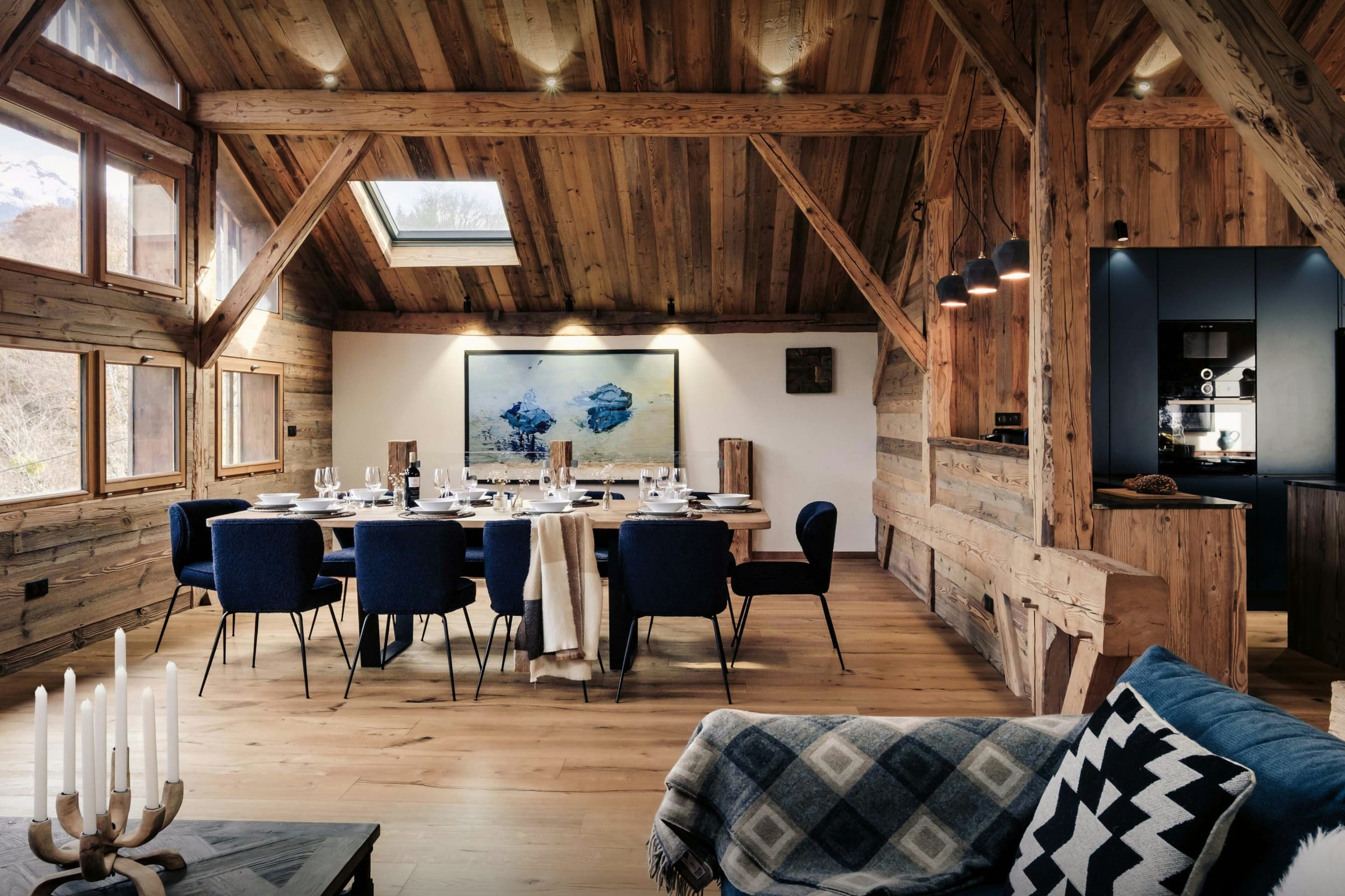 Spread over two levels, Chalet Trumont can accommodate up to 12 guests (including 10 adults) in five bedrooms with four bathrooms. This charming chalet combines modern comfort with the authentic character of a restored barn, complete with several separate living areas and a terrace with a relaxing hot tub.