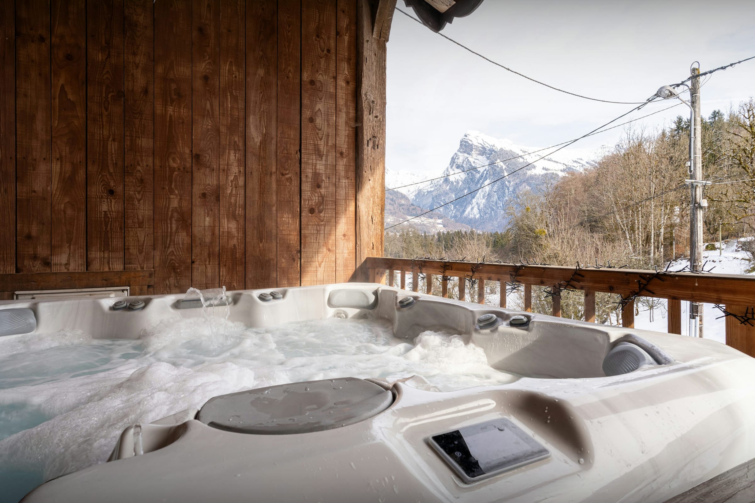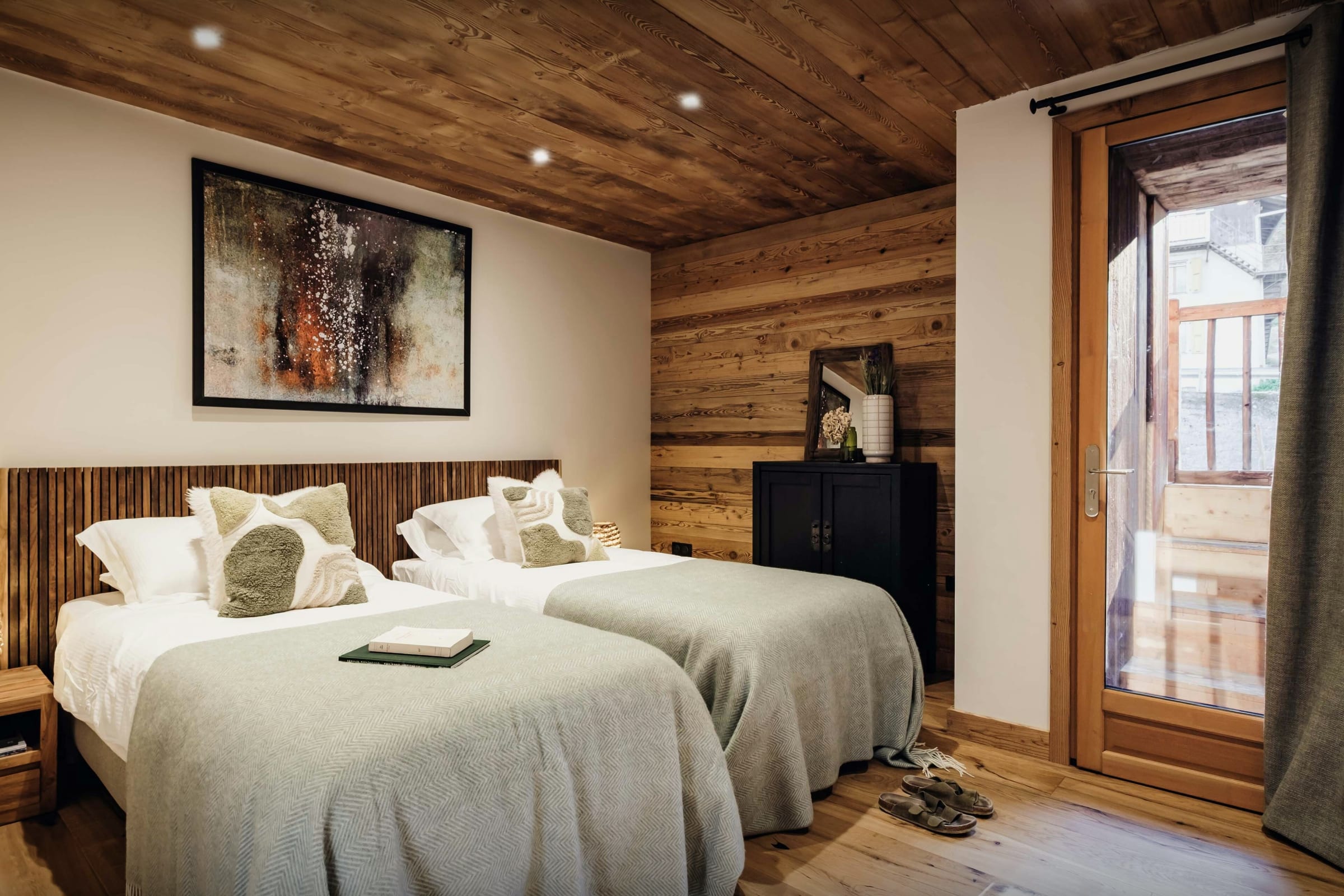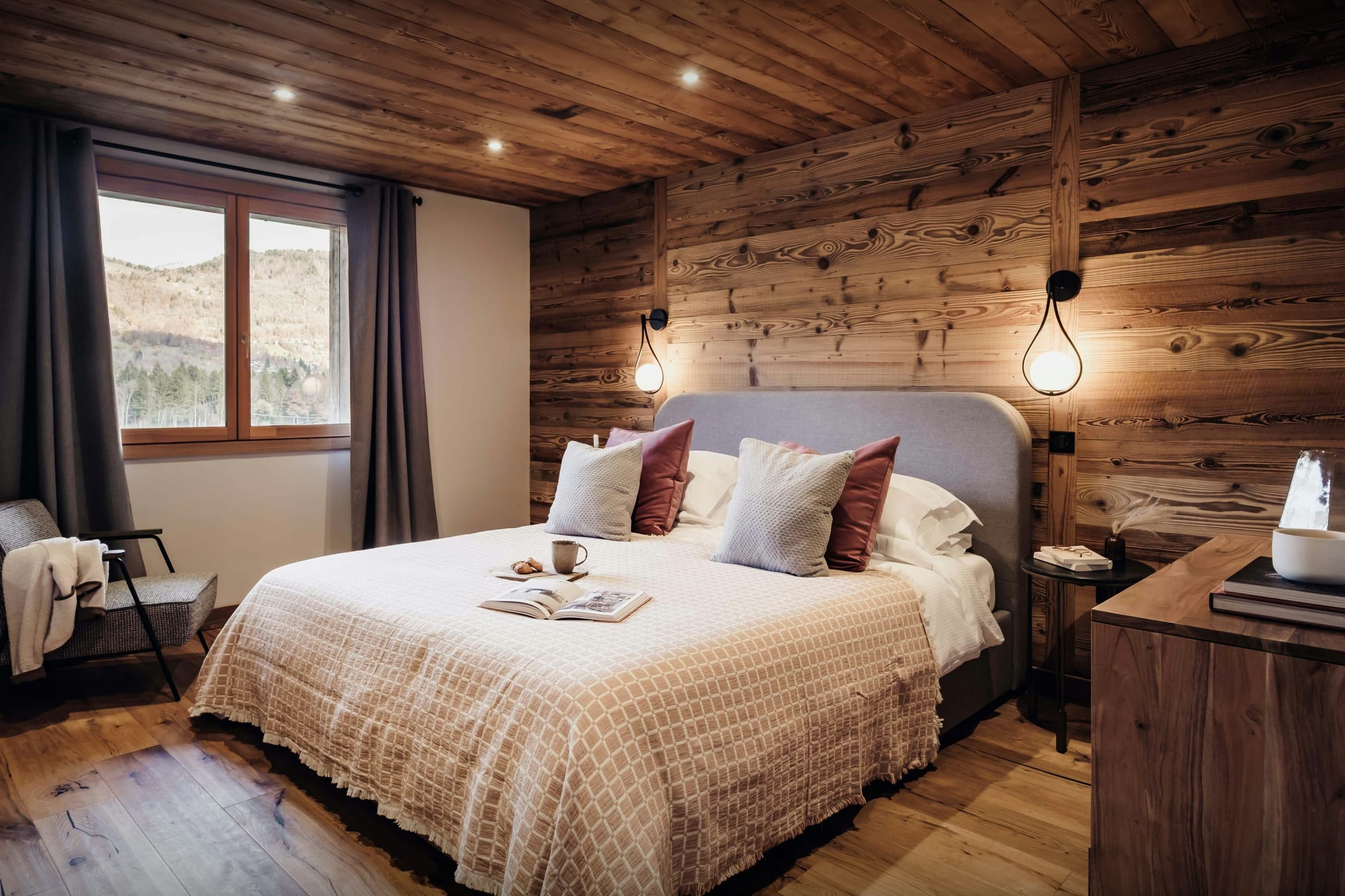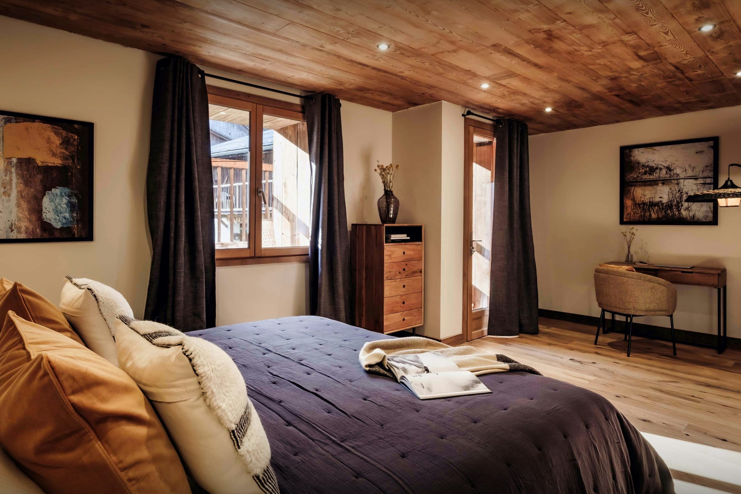 Spread over two levels, Chalet Trumont can accommodate up to 12 guests (including 10 adults) in five bedrooms with four bathrooms. This charming chalet combines modern comfort with the authentic character of a restored barn, complete with several separate living areas and a terrace with a relaxing hot tub.