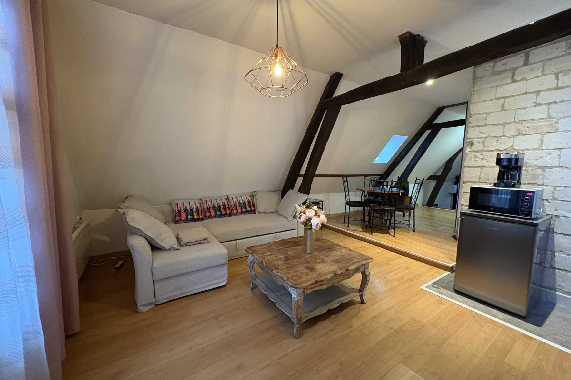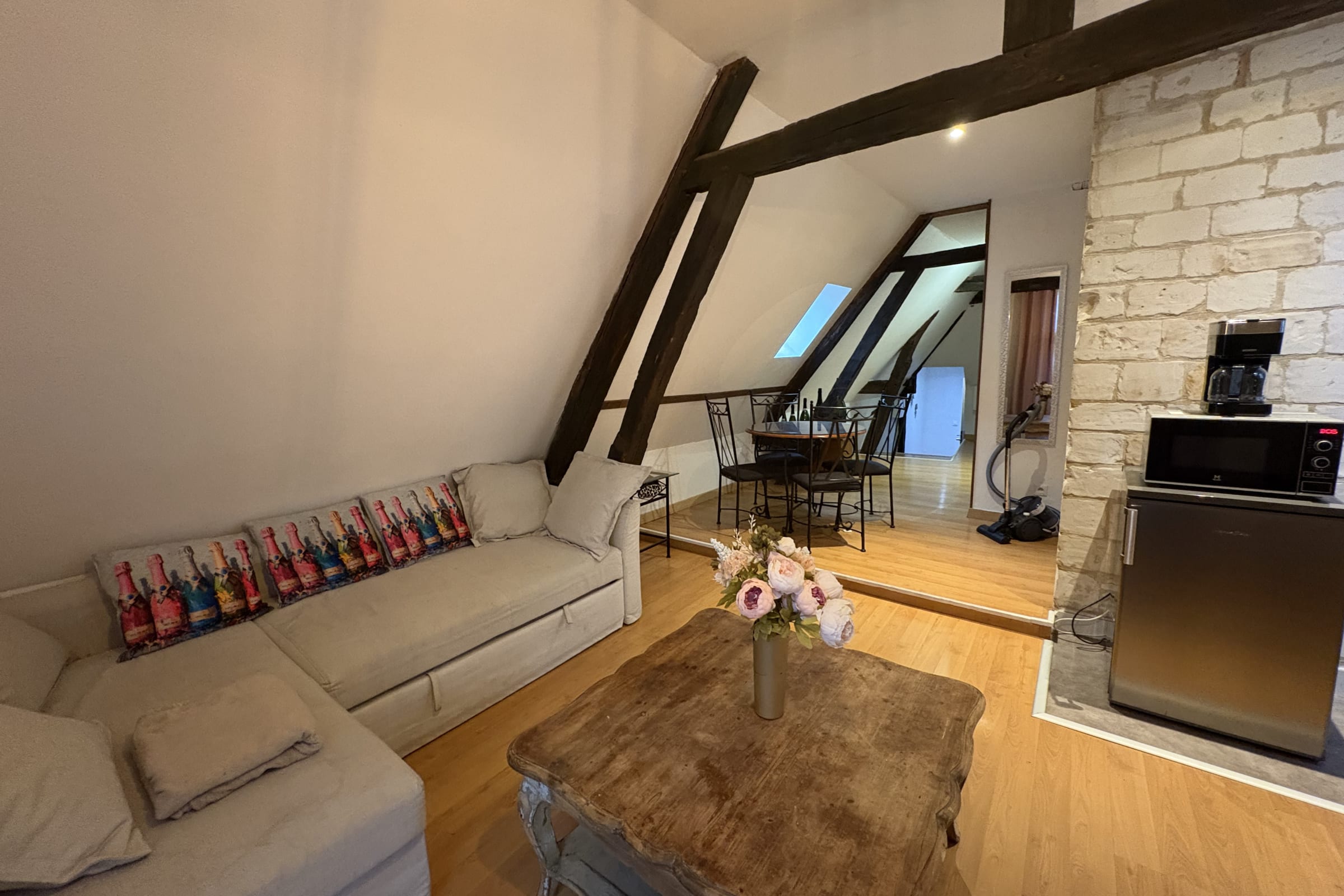 ✨ Comfort with a touch of vintage: A cozy double bed, a large convertible sofa, fully equipped kitchen, TV… everything designed for a stay as smooth and enjoyable as a fine vintage Champagne.