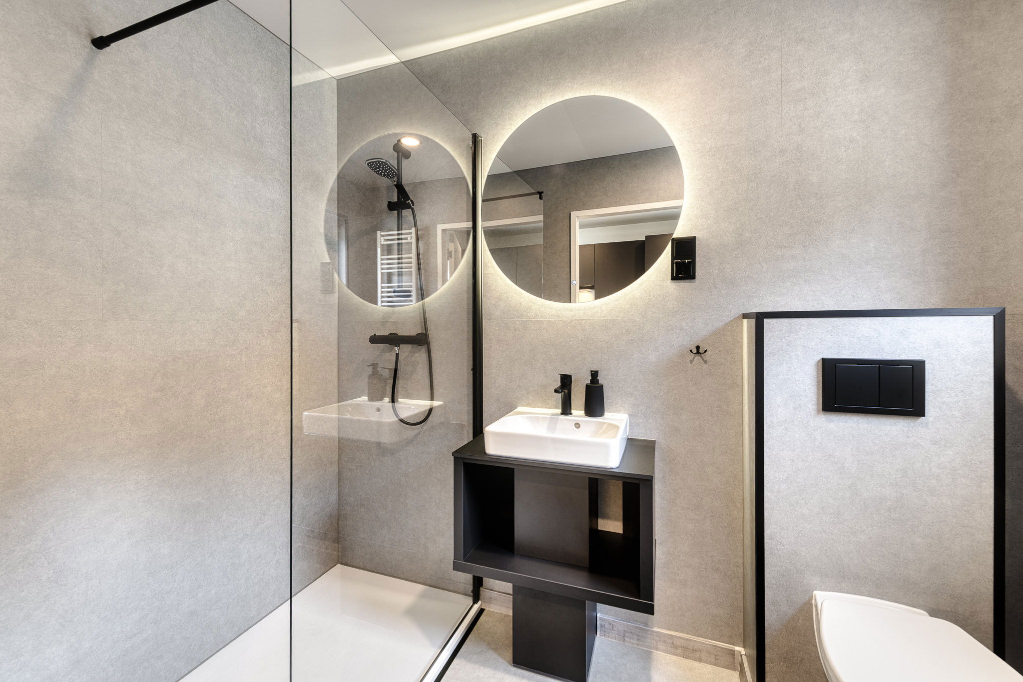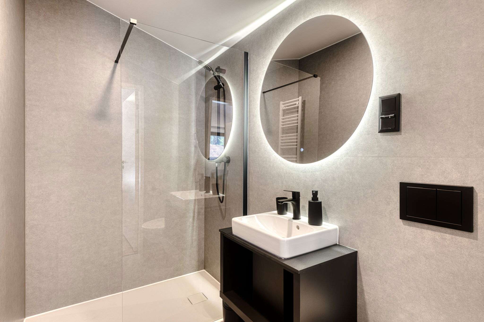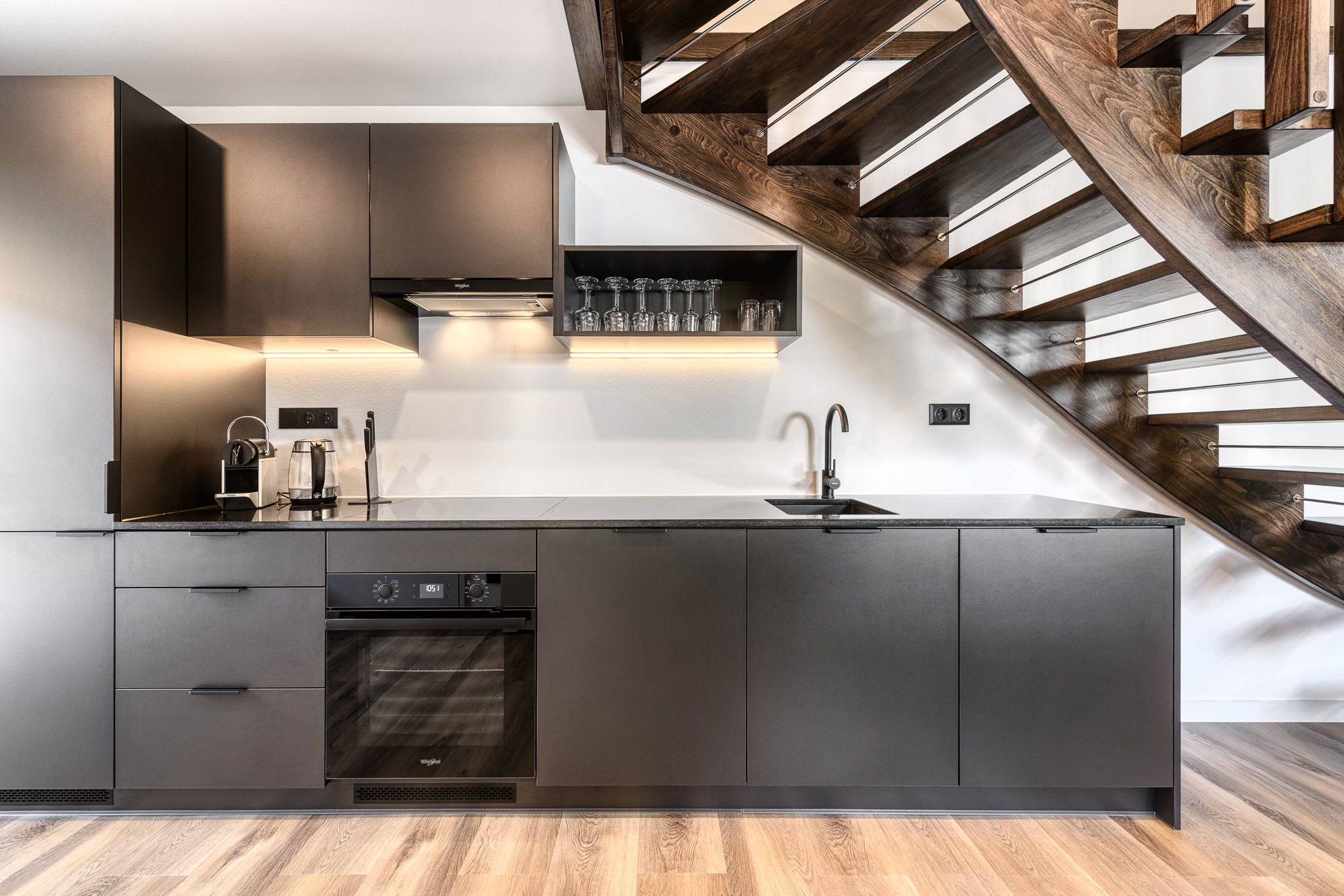 The Tiny House Vaya offers you a stylish and thoughtful accommodation over two floors and 70 m², perfectly suited for up to four people. The open living area is both modern and cosy, with a fully equipped kitchen, an inviting dining area and a comfortable seating corner that invites you to linger. The large windows let in plenty of light and bring nature directly into the house. On the upper floor, two lovingly furnished bedrooms await you, each with its own en-suite bathroom – a small piece of privacy amidst the mountains.