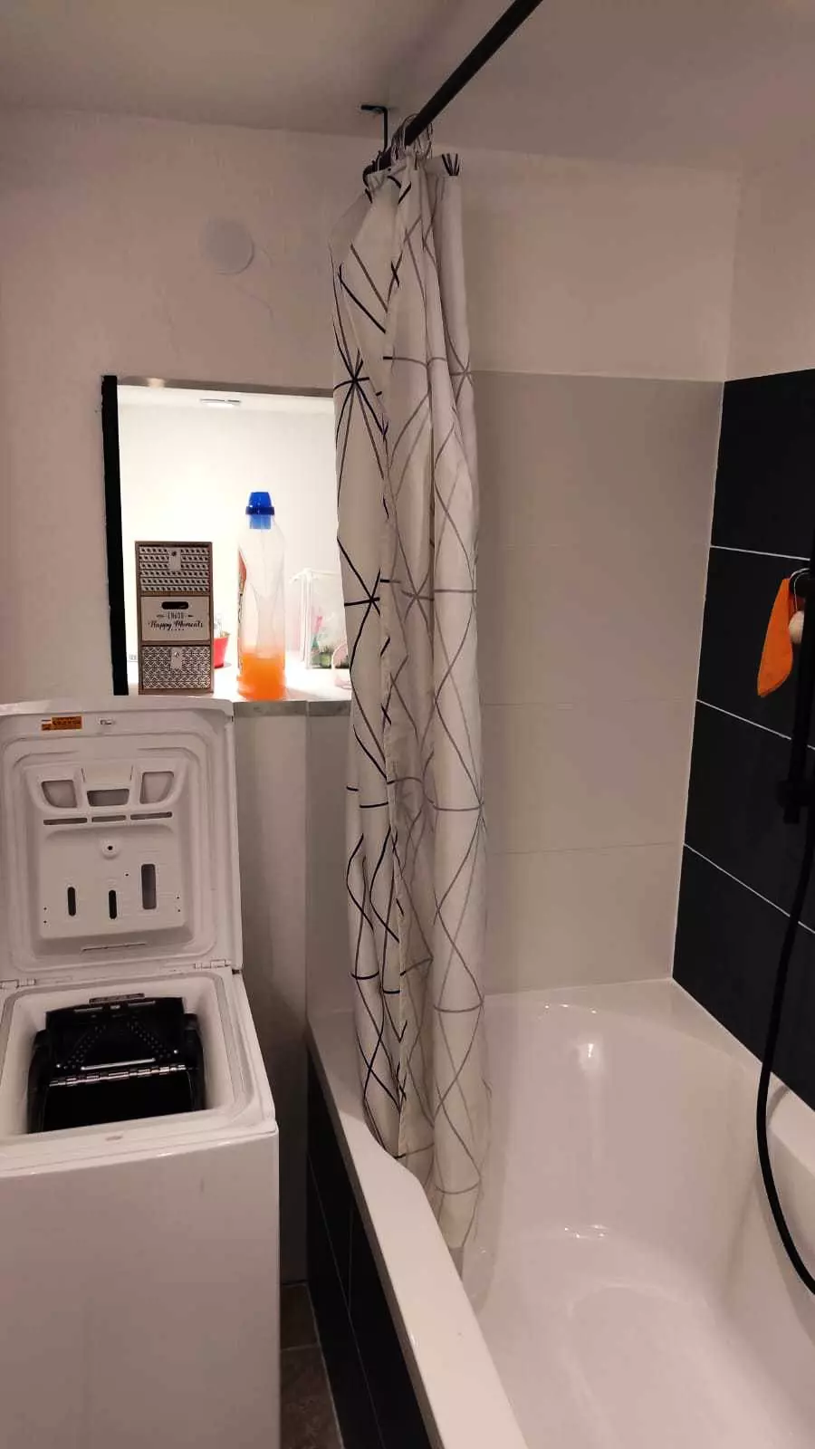 Bathroom (4m²): sink, shower, washing machine. Separate WC.