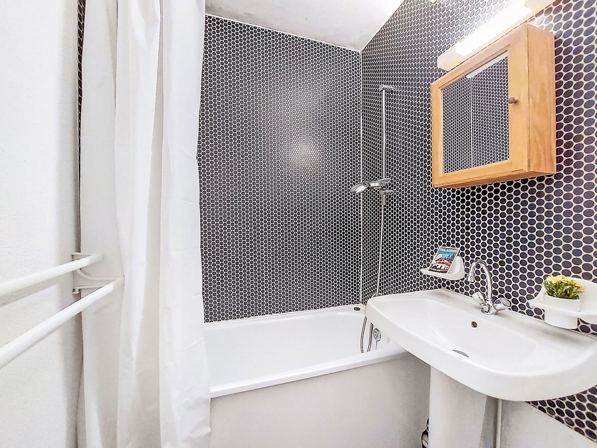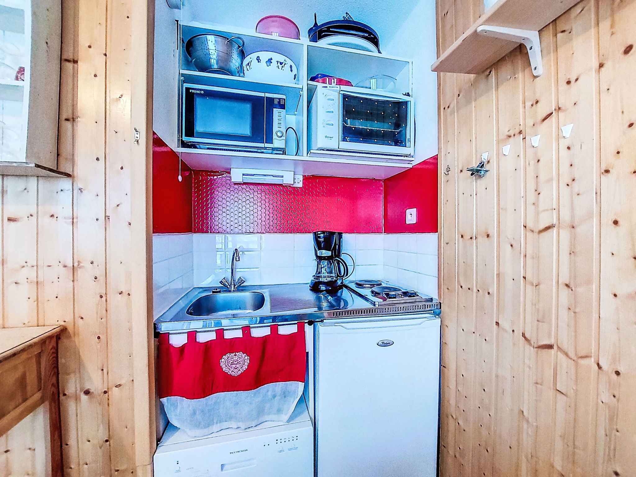 "Topaze 30", 2-room apartment 32 m2, on the ground floor. Living/dining room with 2 sofabeds (80 cm, length 190 cm), TV (flat screen). Exit to the balcony. Sleeping alcove with 1 x 2 bunk beds (70 cm, length 190 cm). 1 room with 1 french bed (160 cm, length 200 cm). Kitchenette (2 hot plates, mini-oven, dishwasher, toaster, kettle, electric coffee machine, combination microwave). Bath/WC. Electric heating. Balcony, south facing position. Partial view of the mountains. Facilities: Internet (WiFi, extra). Parking. Please note: non-smokers only. TV only FR. Smoke alarm. Offer by a private individual according to Art. 155, IV of CGI.