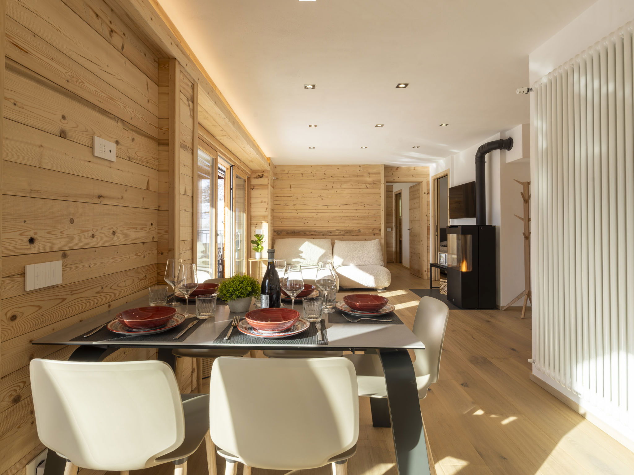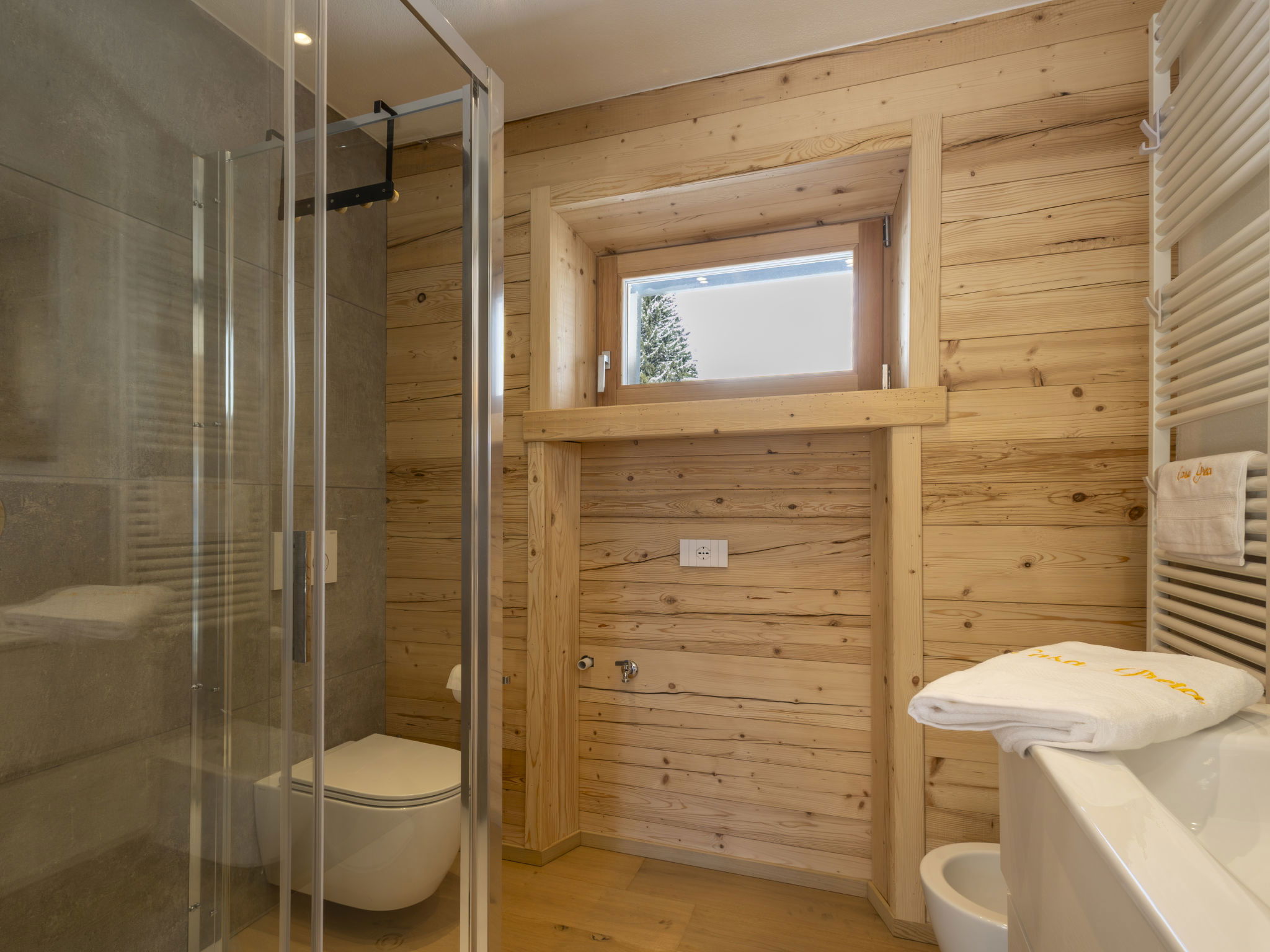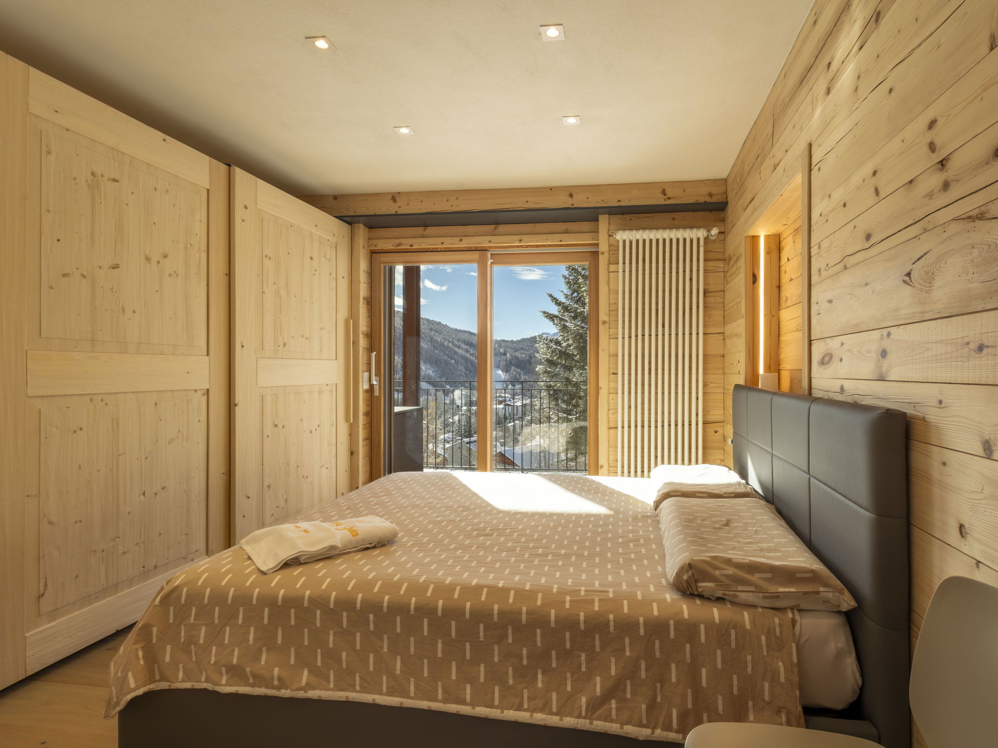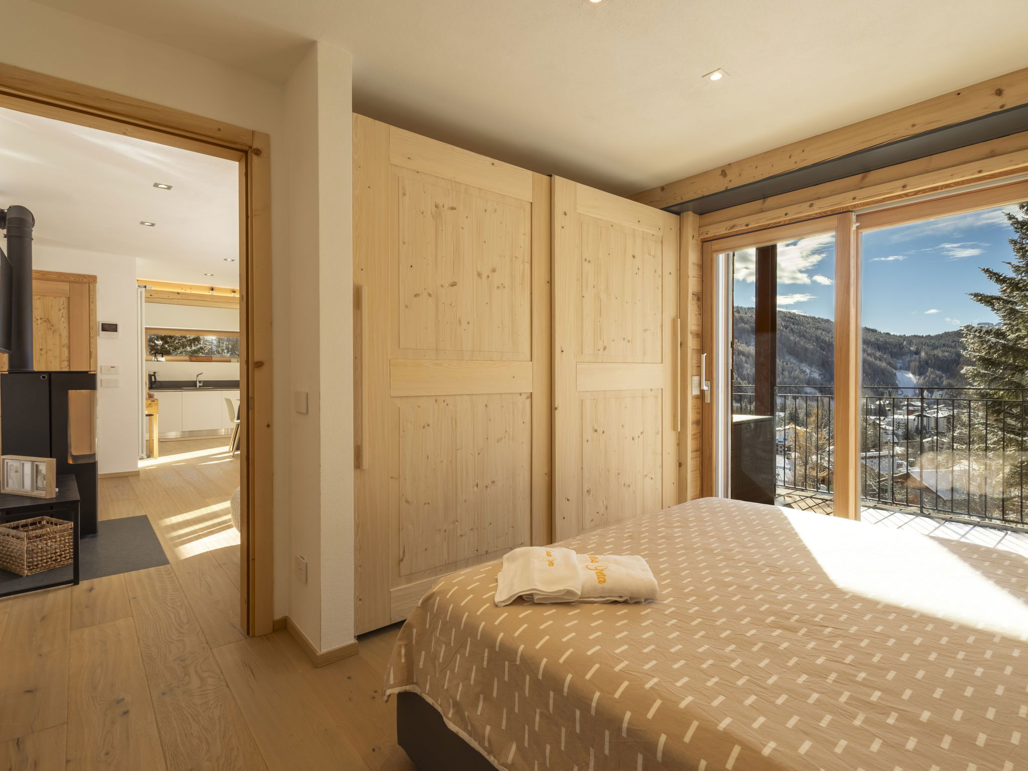 3-room apartment 88 m2 on 2nd floor, south facing position. Bright, fully renovated in 2025, modern and stylish furnishings: large living/dining room with sliding door, panoramic window with 1 double sofabed and Scandinavian wood stove (only for decoration), dining table and TV. Exit to the terrace. 1 room with sliding door, panoramic window with 1 double bed and shower/bidet/WC. 1 room with 1 french bed. Kitchenette (oven, dishwasher, 4 induction hot plates, toaster, kettle, freezer, electric coffee machine, Capsules for coffee machine (Nespresso) free, steamer). Shower/bidet/WC. Heating. Parquet floors, natural stone floors. Large terrace 34 m2, roofed, south facing position. Terrace furniture. Very beautiful panoramic view of the mountains, the valley and the forest. Facilities: children's high chair, baby cot, hair dryer. Internet (WiFi, free). Please note: suitable for families. Non-smokers only. Maximum 1 pet/ dog allowed. Fire extinguisher. IT014035C2T4JZ4BE2