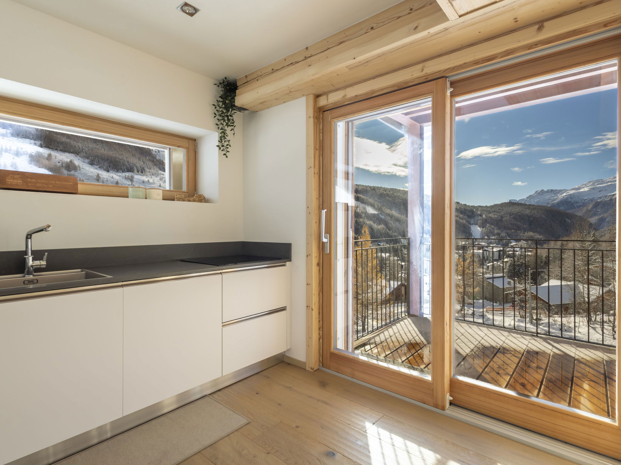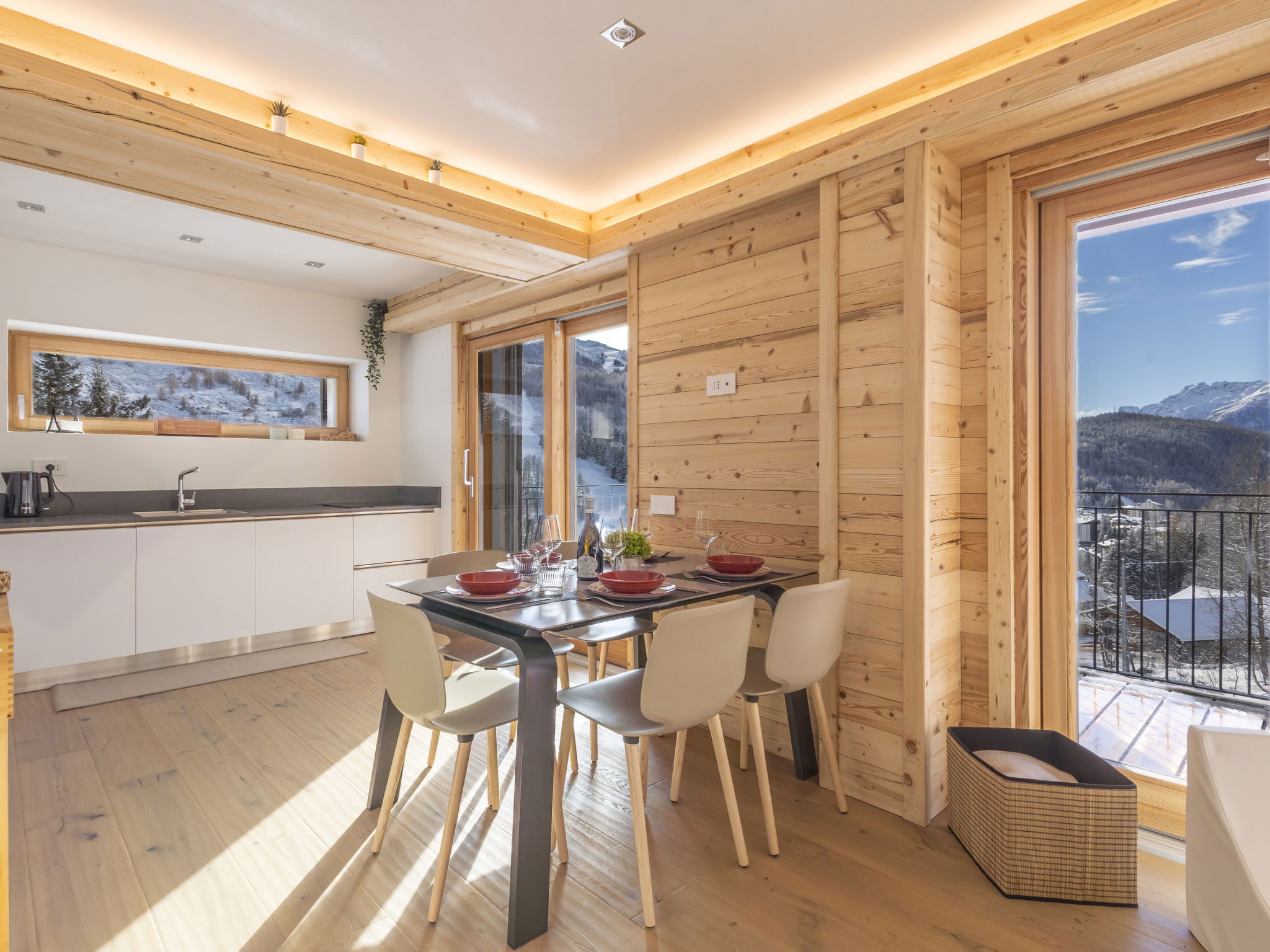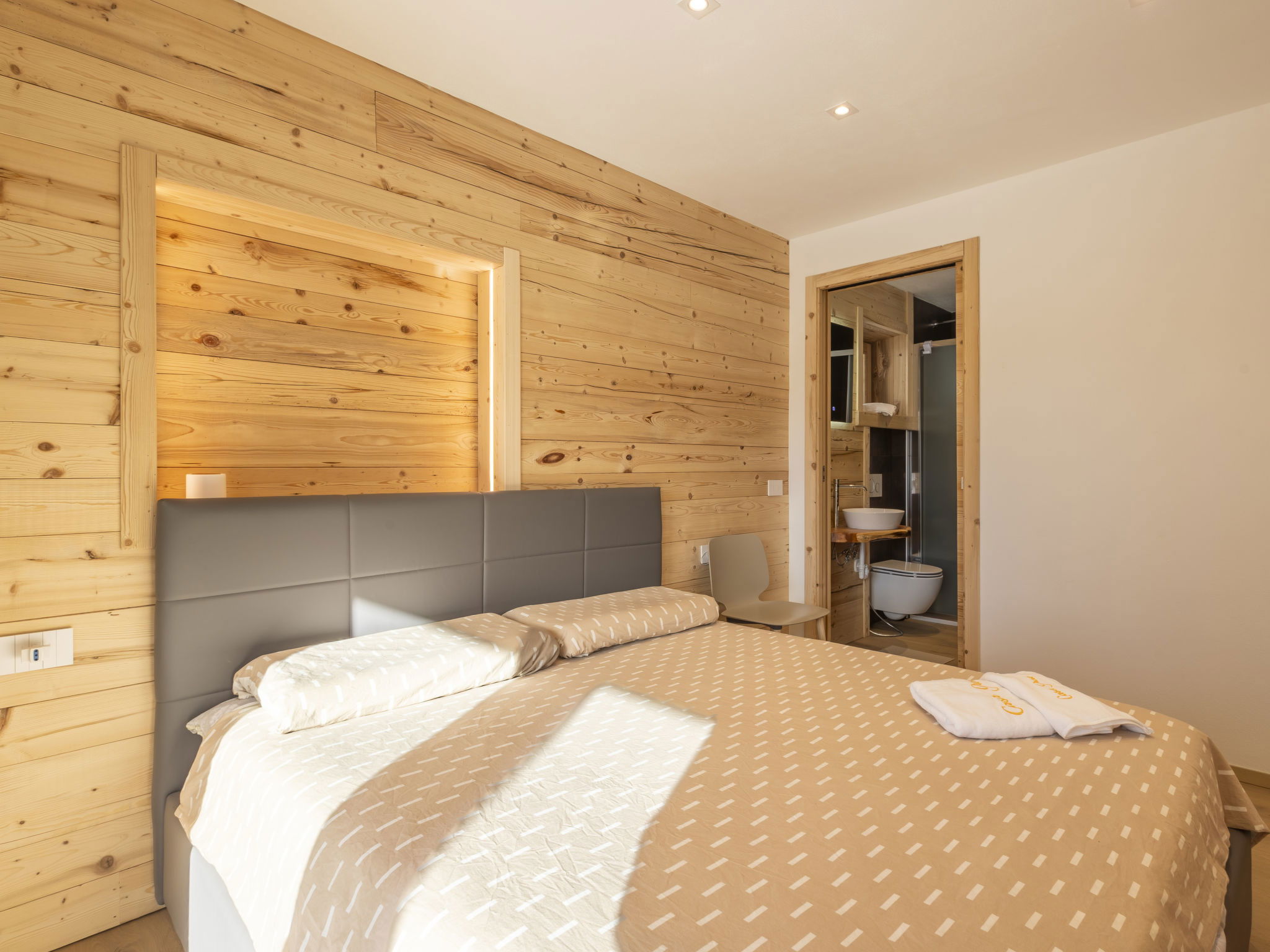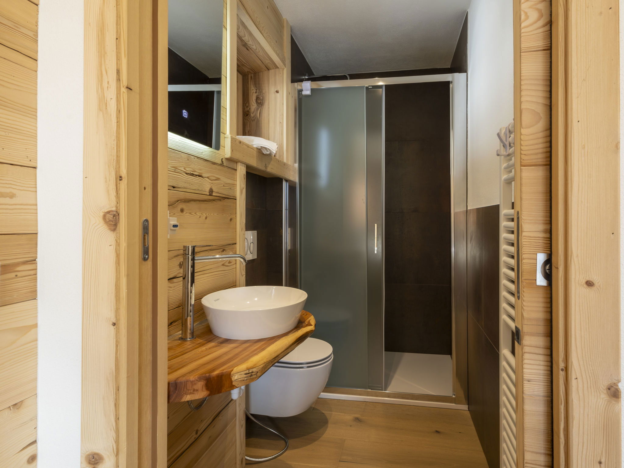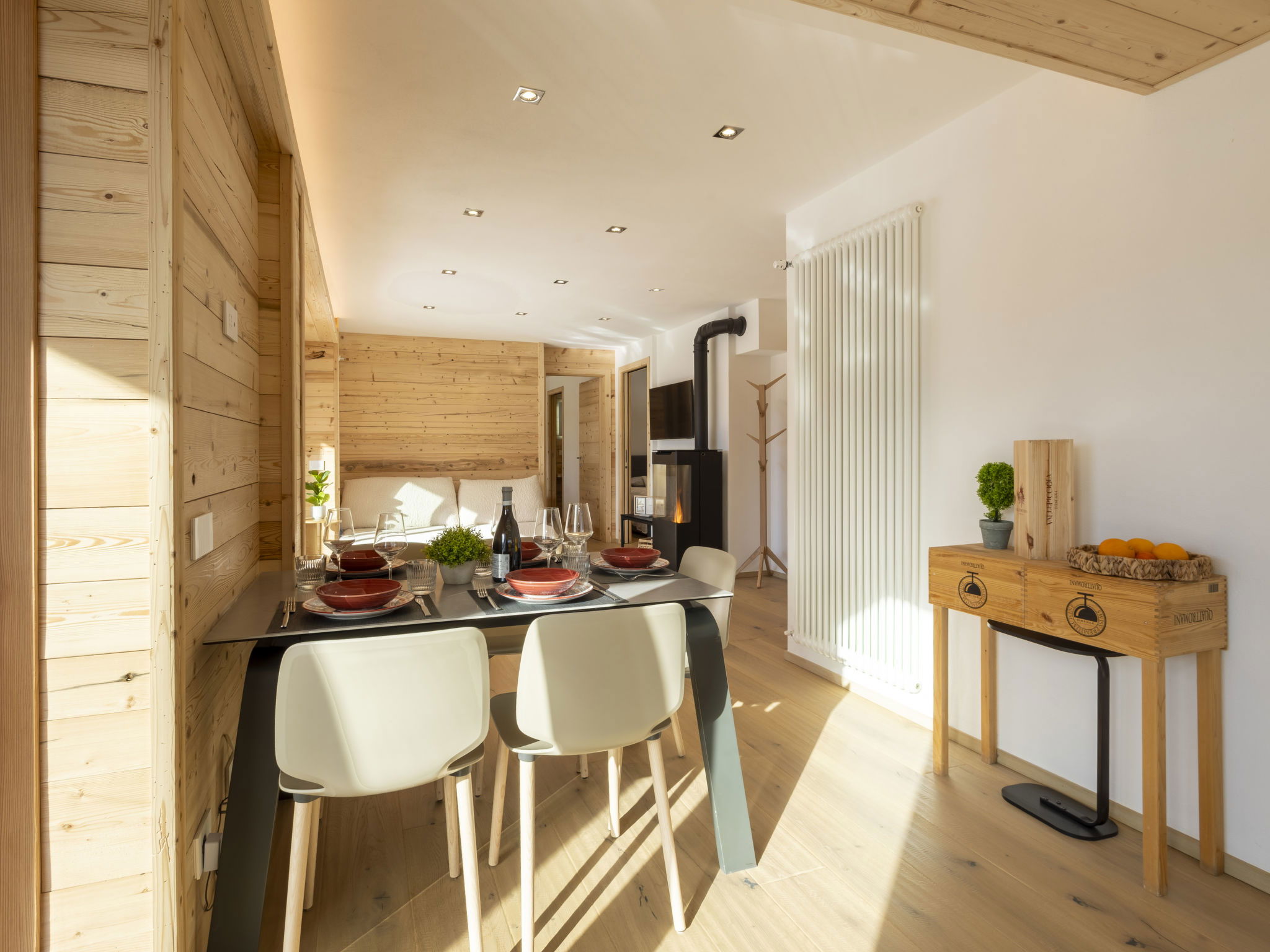 3-room apartment 88 m2 on 2nd floor, south facing position. Bright, fully renovated in 2025, modern and stylish furnishings: large living/dining room with sliding door, panoramic window with 1 double sofabed and Scandinavian wood stove (only for decoration), dining table and TV. Exit to the terrace. 1 room with sliding door, panoramic window with 1 double bed and shower/bidet/WC. 1 room with 1 french bed. Kitchenette (oven, dishwasher, 4 induction hot plates, toaster, kettle, freezer, electric coffee machine, Capsules for coffee machine (Nespresso) free, steamer). Shower/bidet/WC. Heating. Parquet floors, natural stone floors. Large terrace 34 m2, roofed, south facing position. Terrace furniture. Very beautiful panoramic view of the mountains, the valley and the forest. Facilities: children's high chair, baby cot, hair dryer. Internet (WiFi, free). Please note: suitable for families. Non-smokers only. Maximum 1 pet/ dog allowed. Fire extinguisher. IT014035C2T4JZ4BE2