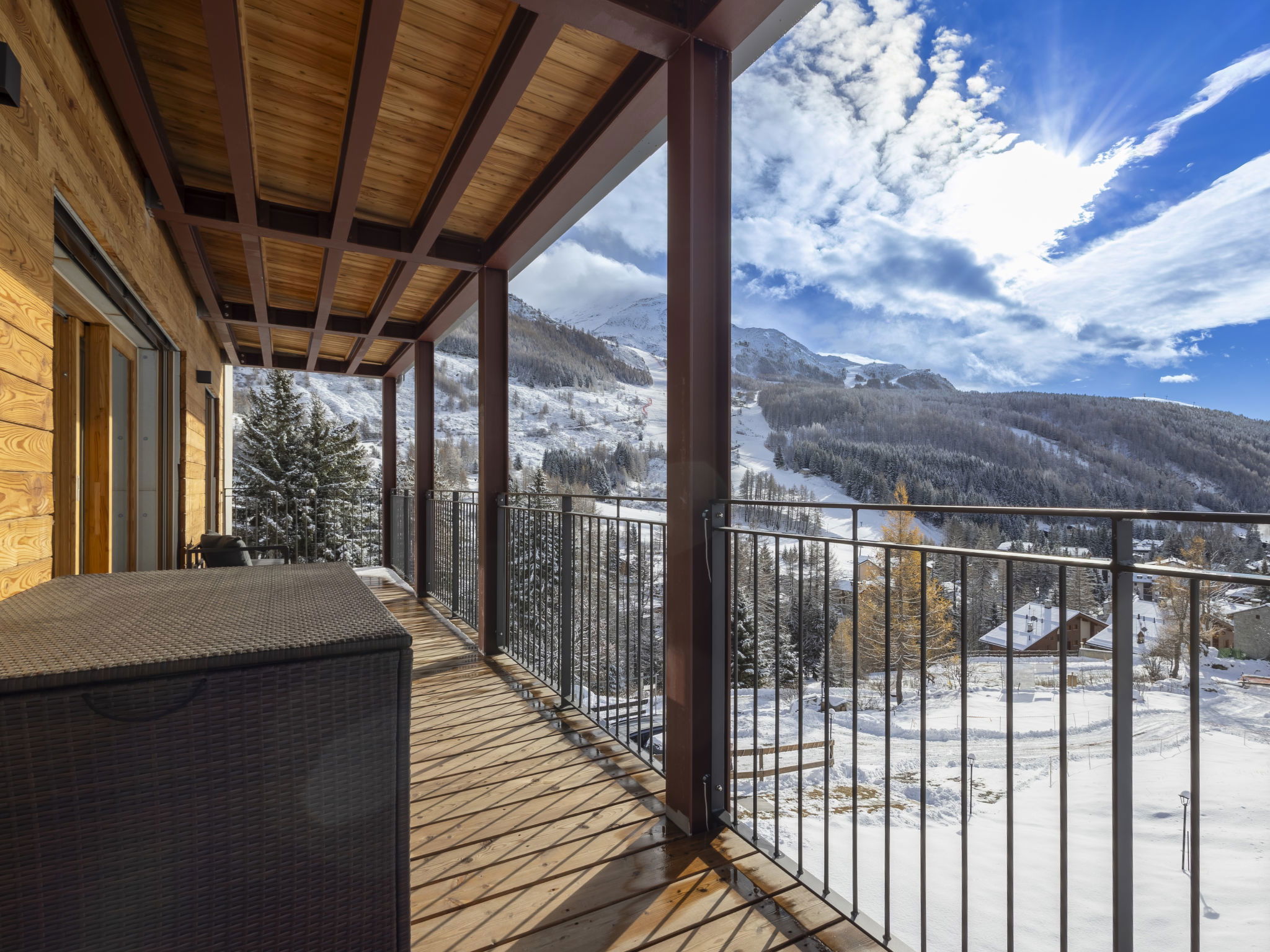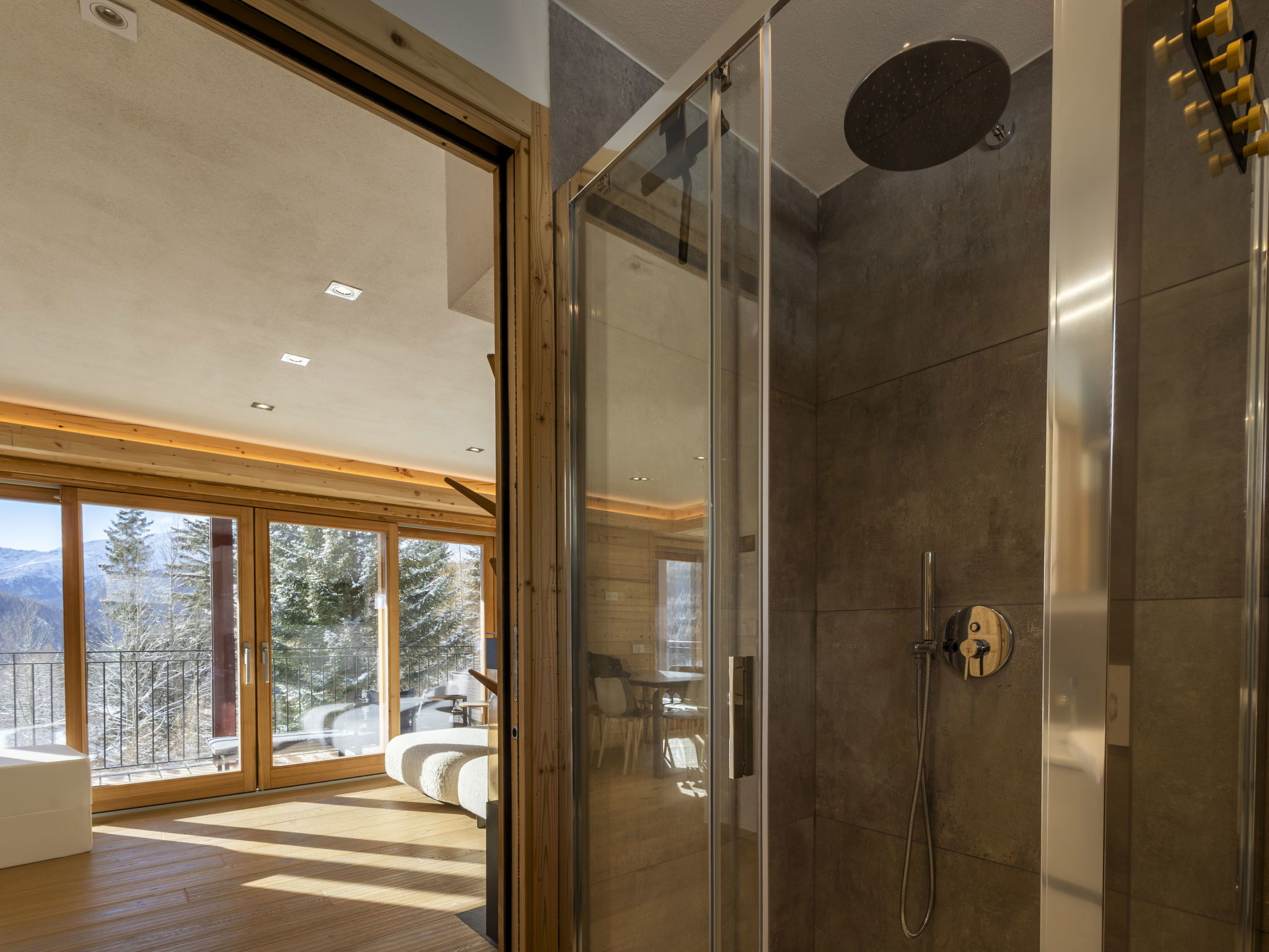 3-room apartment 88 m2 on 2nd floor, south facing position. Bright, fully renovated in 2025, modern and stylish furnishings: large living/dining room with sliding door, panoramic window with 1 double sofabed and Scandinavian wood stove (only for decoration), dining table and TV. Exit to the terrace. 1 room with sliding door, panoramic window with 1 double bed and shower/bidet/WC. 1 room with 1 french bed. Kitchenette (oven, dishwasher, 4 induction hot plates, toaster, kettle, freezer, electric coffee machine, Capsules for coffee machine (Nespresso) free, steamer). Shower/bidet/WC. Heating. Parquet floors, natural stone floors. Large terrace 34 m2, roofed, south facing position. Terrace furniture. Very beautiful panoramic view of the mountains, the valley and the forest. Facilities: children's high chair, baby cot, hair dryer. Internet (WiFi, free). Please note: suitable for families. Non-smokers only. Maximum 1 pet/ dog allowed. Fire extinguisher.