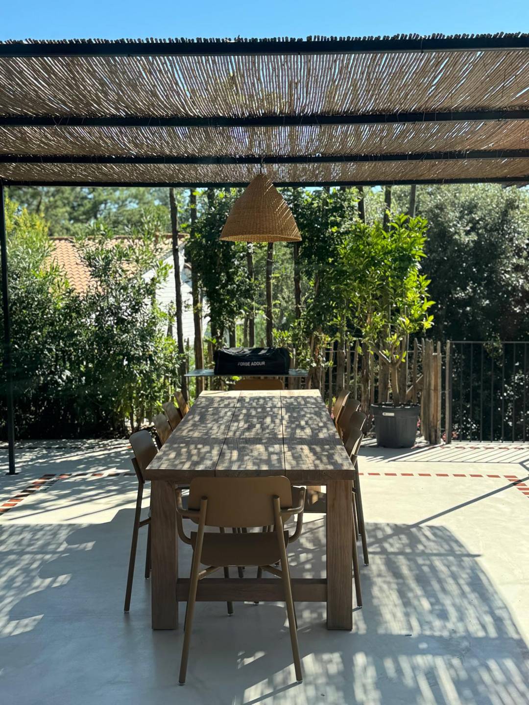 Agrémenté d'un salon de jardin et d'une table pour prendre vos repas dehors à l'abris du soleil, la terrasse est l'un des atouts de cette superbe villa.
