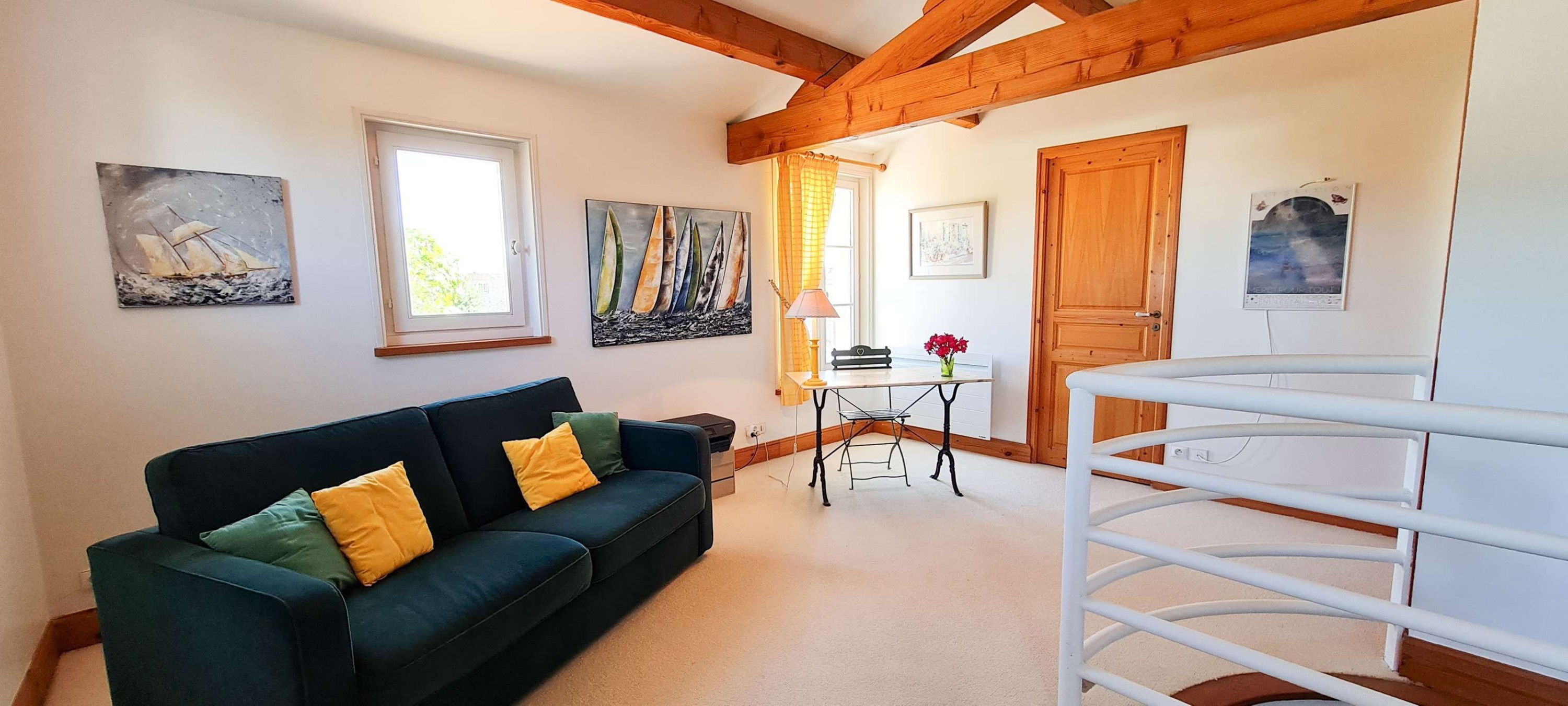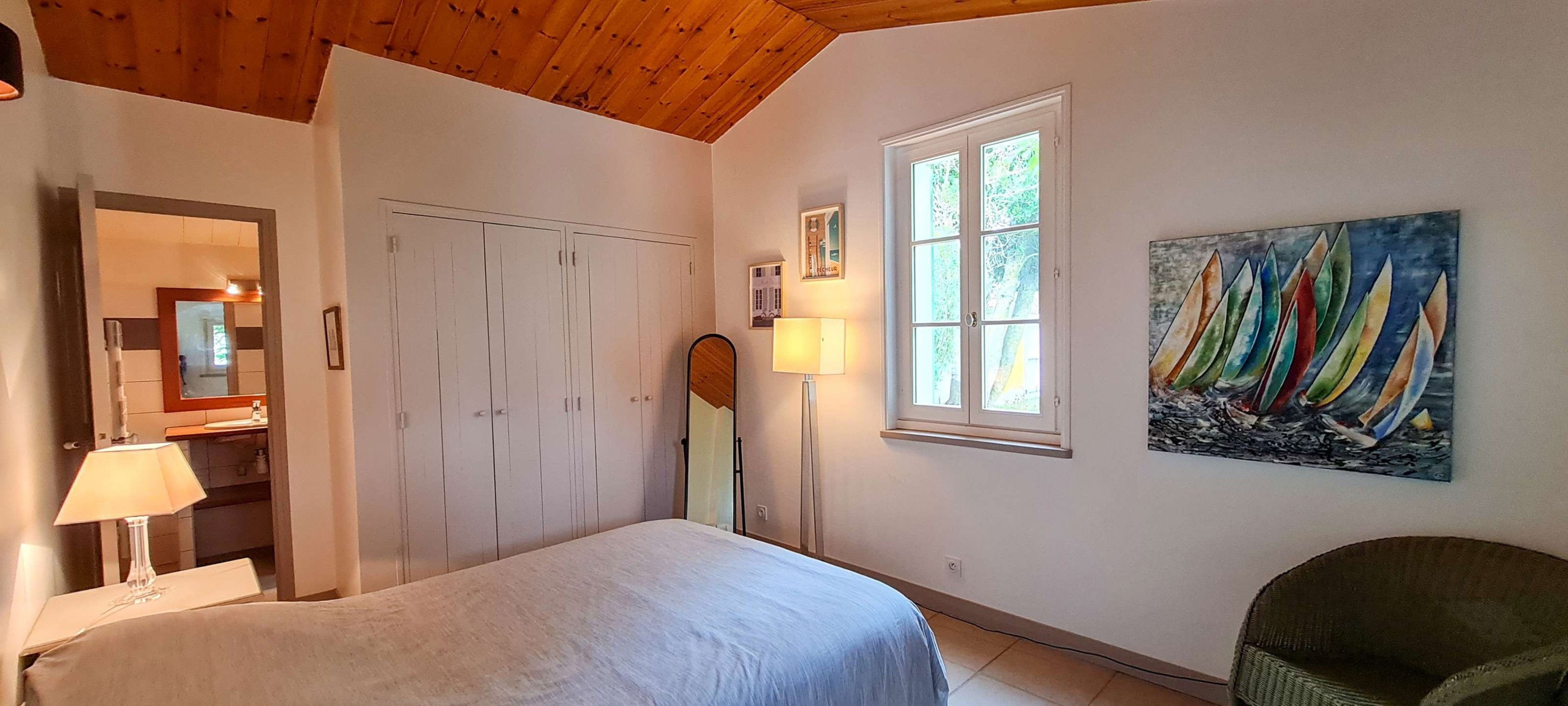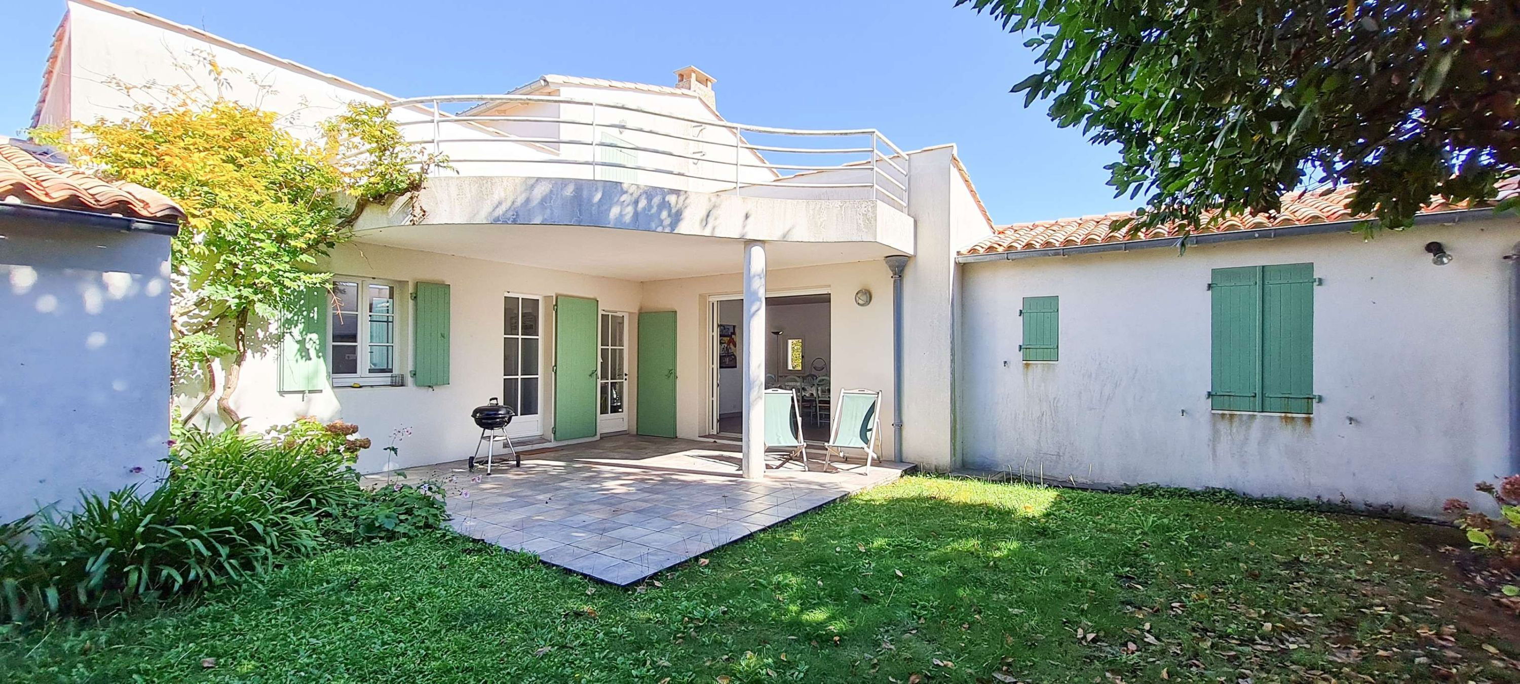 In the center of La Couarde, superb family villa with its large 80m² garden. Two-storey villa with spiral staircase. You will appreciate the fully enclosed garden, with its covered terrace, ideal for your meals with family or friends! This villa offers 5 bedrooms, 3 shower rooms and a bathroom. PARKING - WIFI - END OF STAY CLEANING AND HOUSEHOLD LINEN MANDATORY (Bed linen, towels, bath mats and kitchen linen)