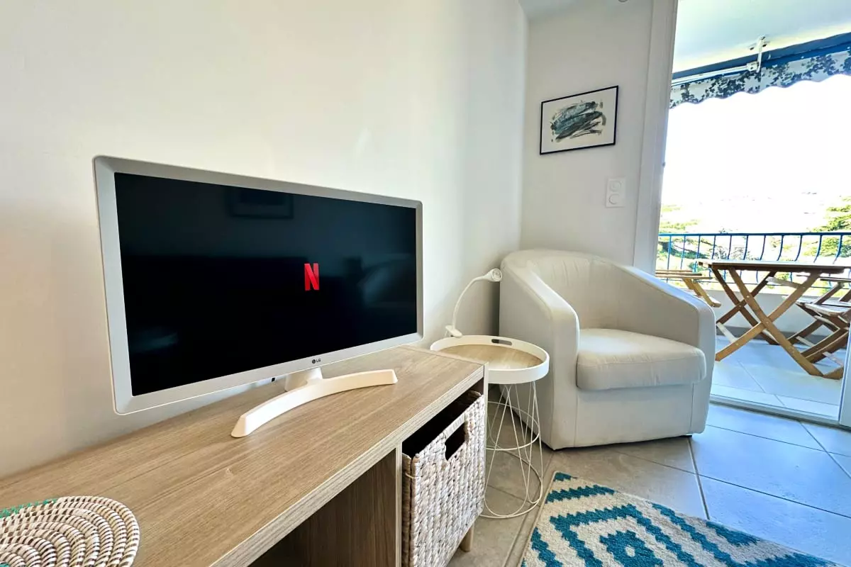 One of the apartment's major assets is its terrace, where you can enjoy moments of tranquility. Furthermore, you'll be captivated by its prime location, offering views of the sea and the Esterel mountains, with breathtaking sunsets. You'll be close to various restaurants and just a 20-minute walk from a Monoprix supermarket for your daily shopping.