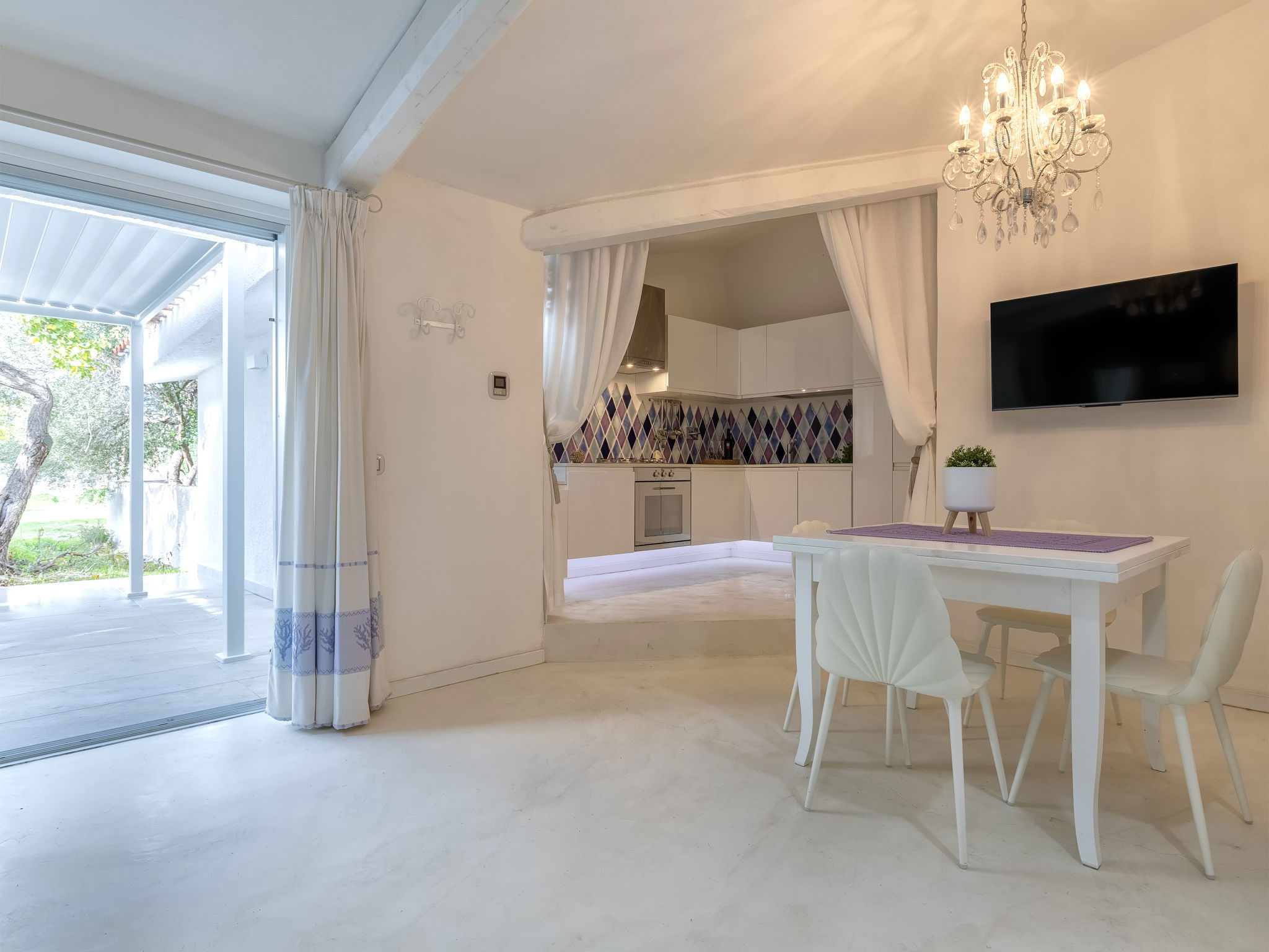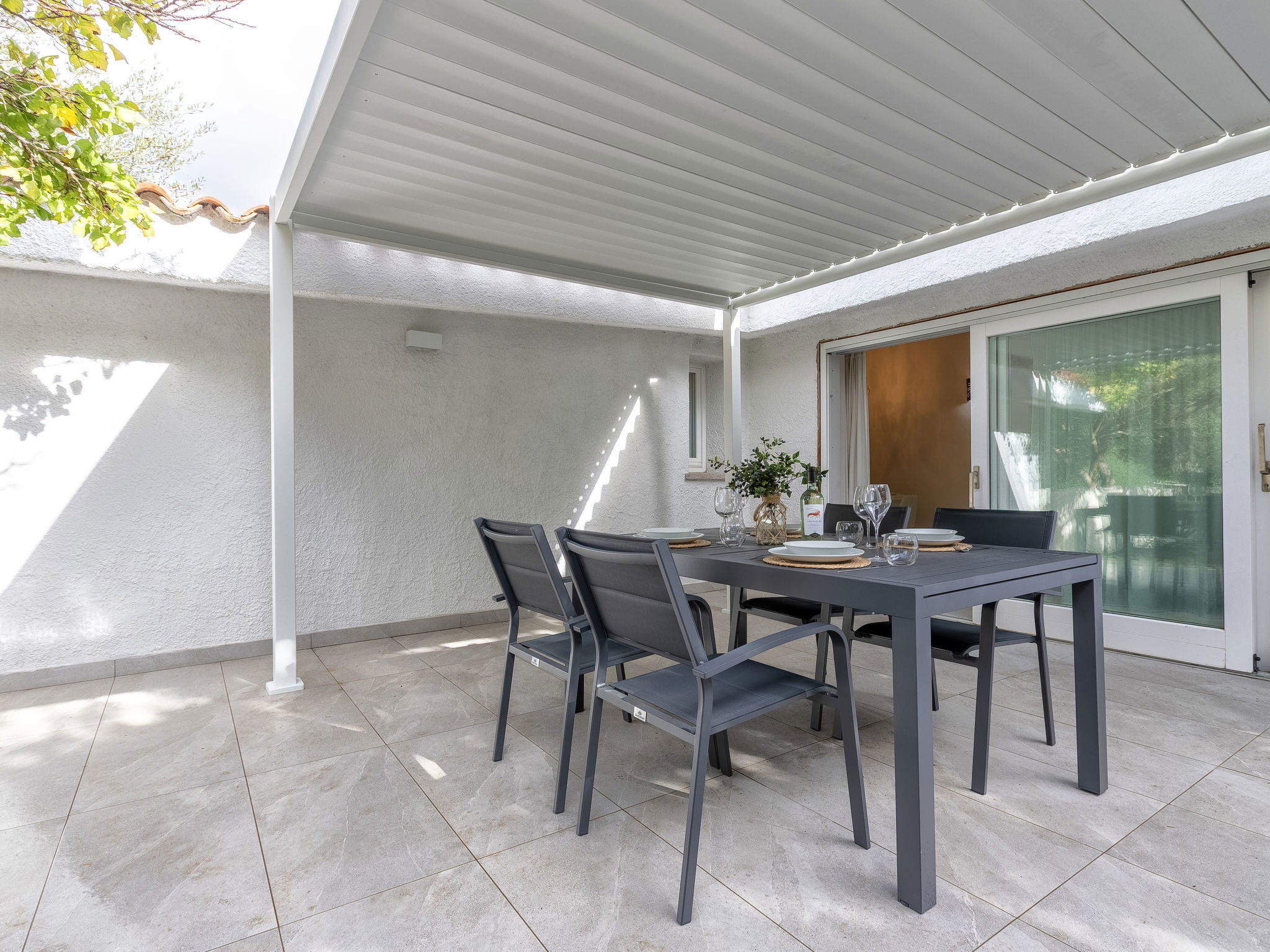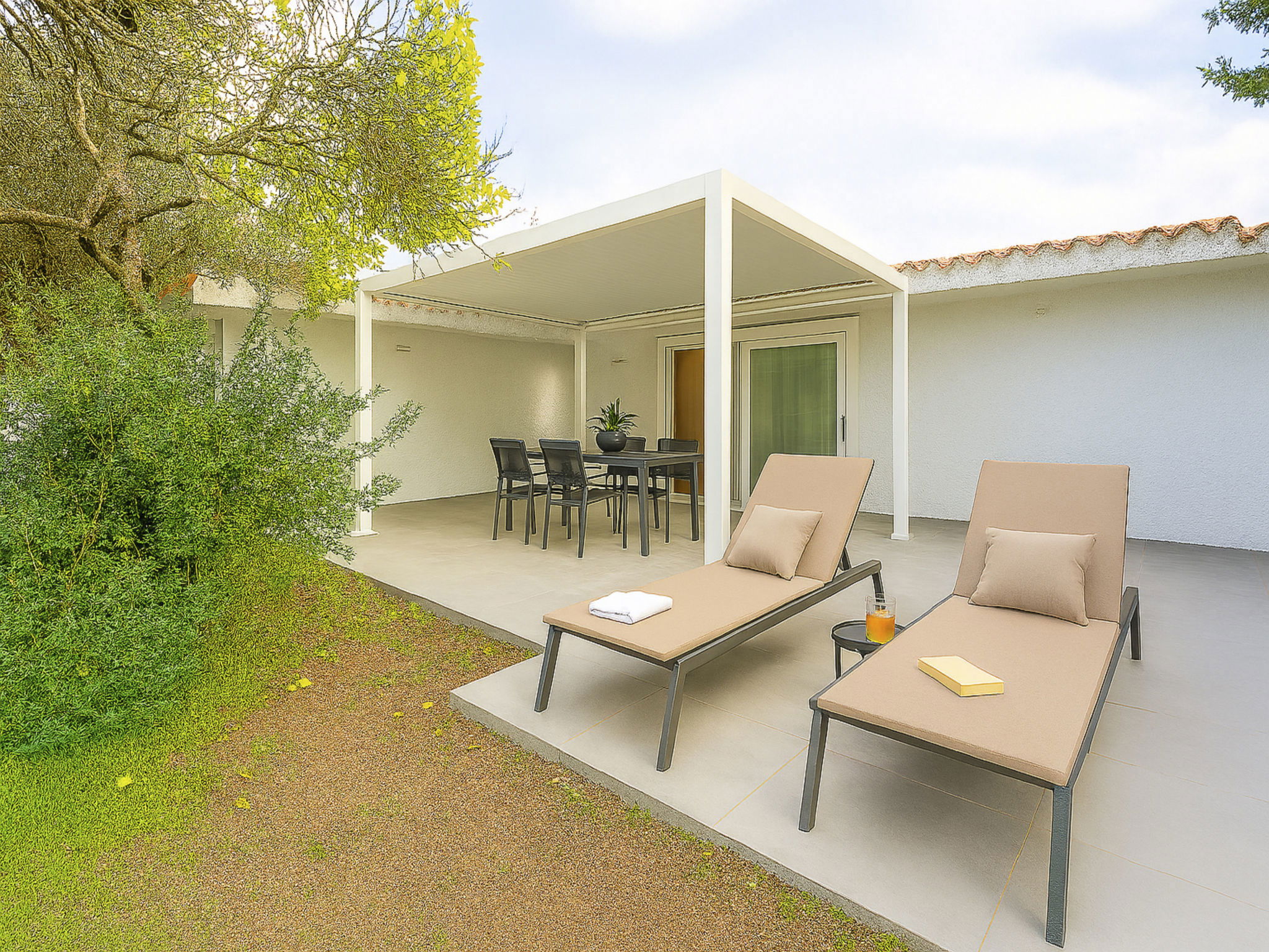 3-room house 57 m2, on the ground floor. Modern and luxurious furnishings: living/dining room with satellite TV (flat screen). Exit to the terrace. 1 double bedroom with satellite TV (flat screen). 1 room with 1 x 2 bunk beds. Large, open kitchen (4 hot plates, oven, dishwasher, kettle, microwave, electric coffee machine). Shower/bidet/WC. Air-conditioning, forced-air heating. Large terrace partly roofed. Terrace furniture, barbecue (portable), sitting area. Facilities: washing machine, iron, hair dryer. Internet (WiFi, free). Please note: maximum 1 pet/ dog allowed. Fire extinguisher. IT090081C2000Q8123