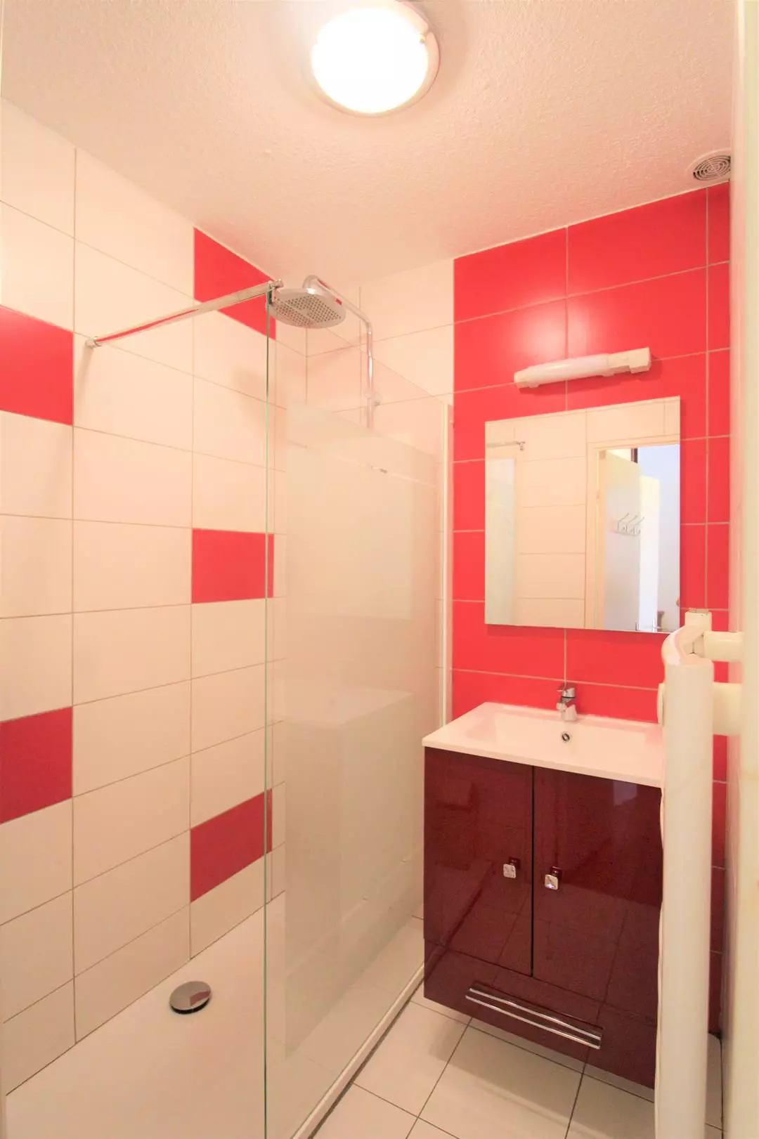 On the lower floor you have 2 bedrooms: one with a double bed (140cm), and the other with 2 bunk beds, a bathroom with shower, a separate toilet.