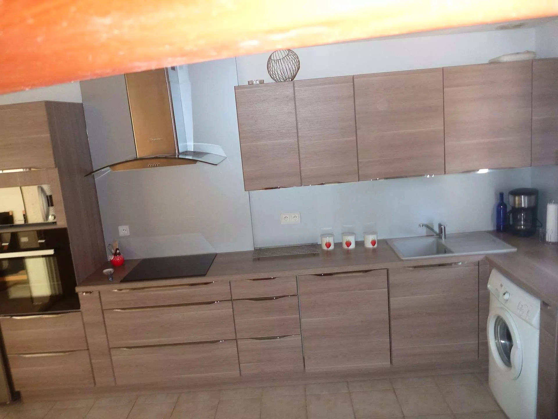 Fully equipped open kitchen: fridge/freezer, microwave, ceramic hob, electric coffee maker, washing machine, dishwasher, oven for convenient and convivial meals.