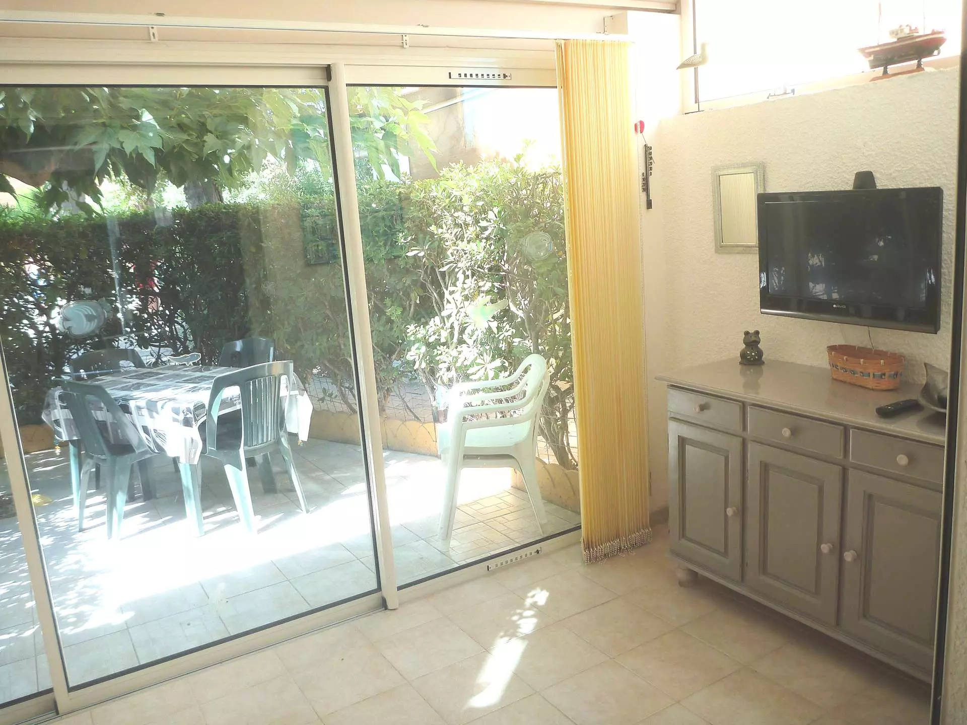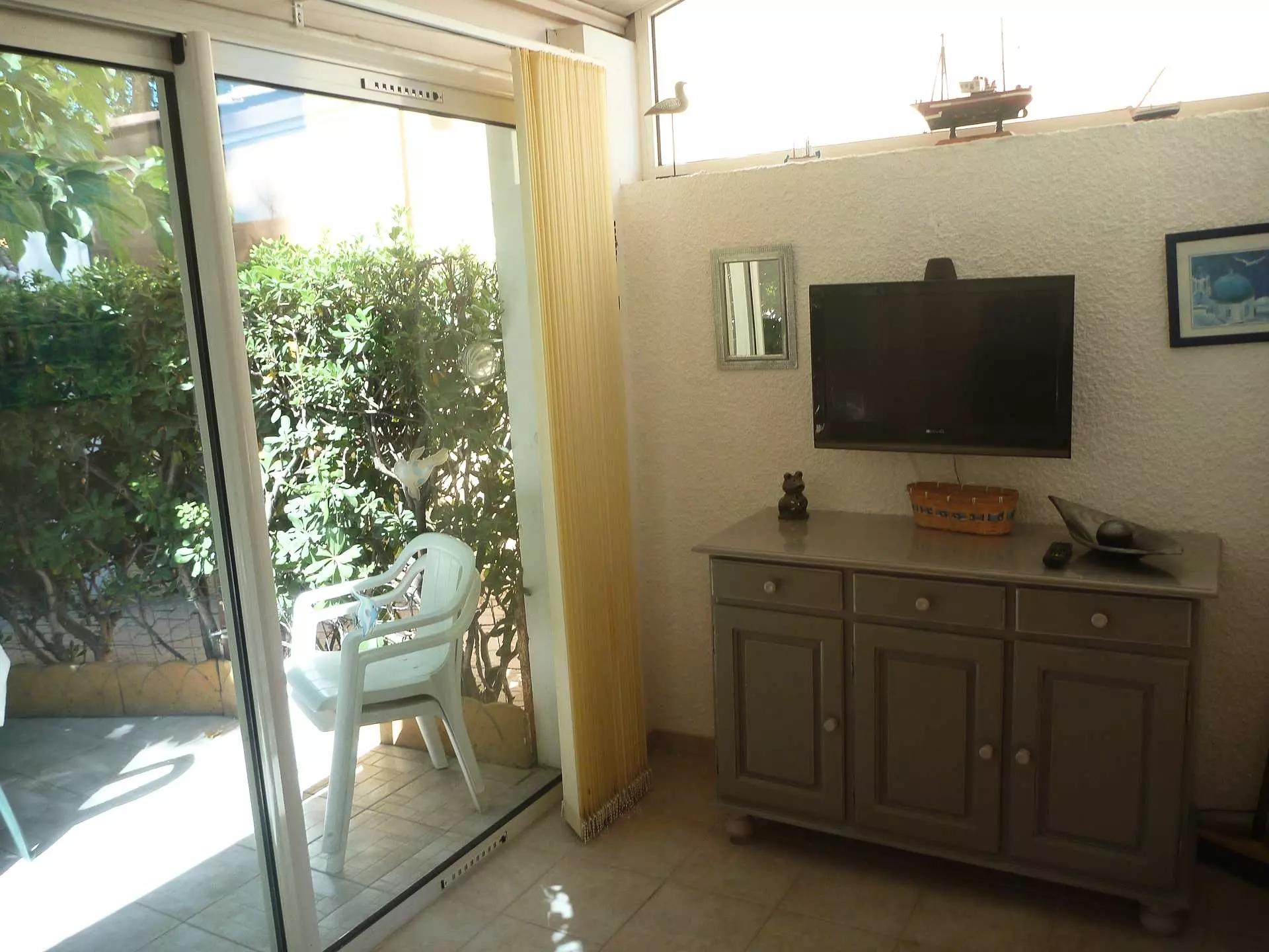 Bright living room: fold-down bed, dining table, chairs for your moments of relaxation.