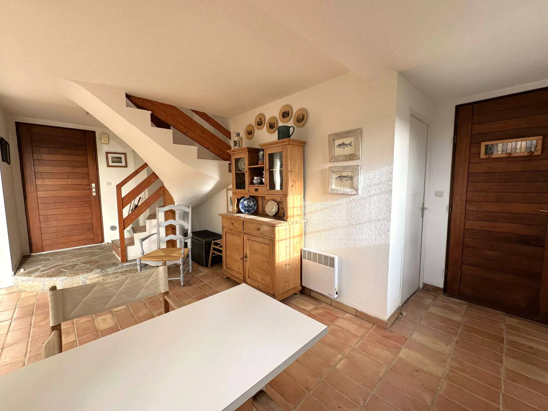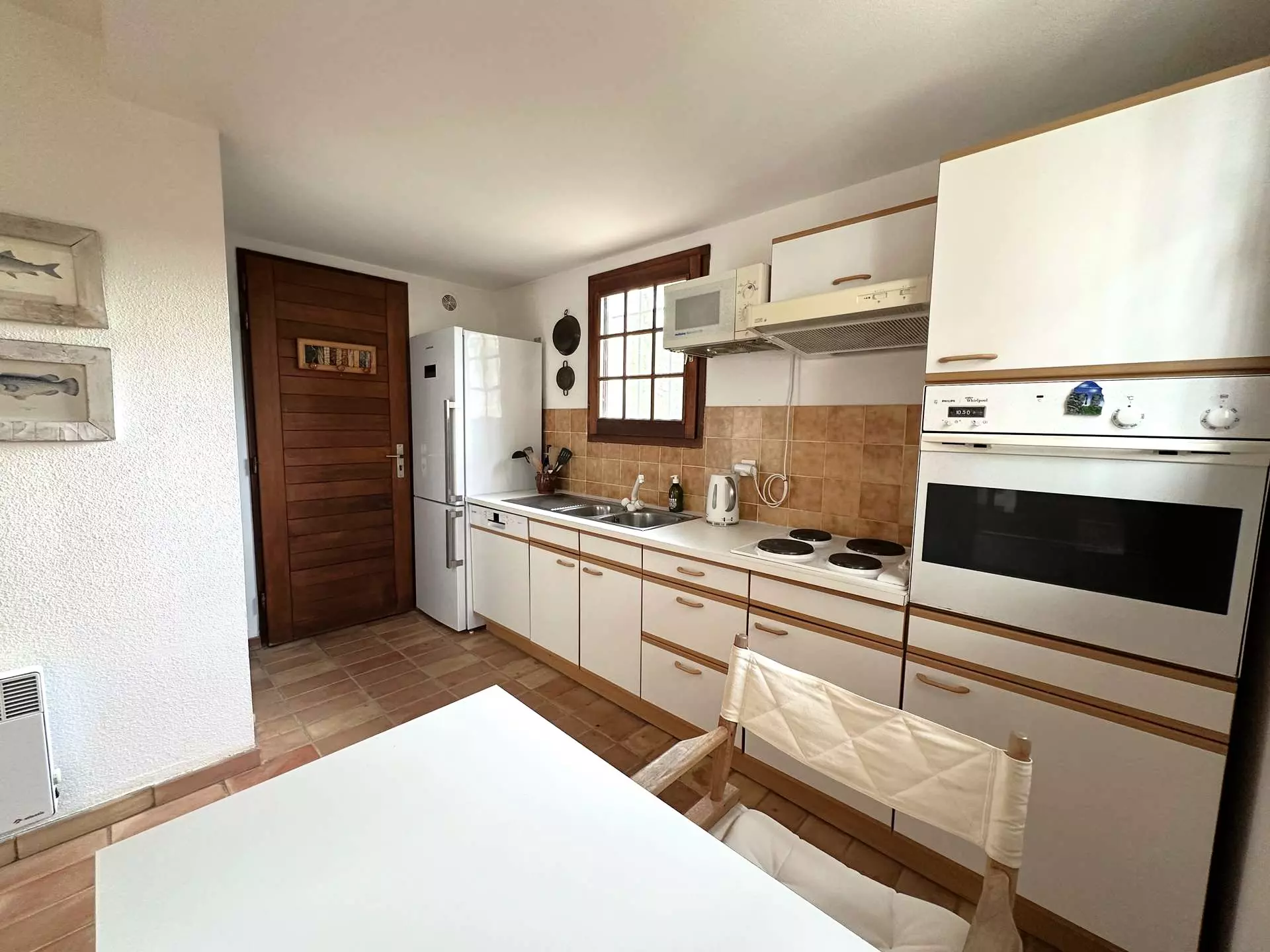 Living and dining room opening onto the garden and terrace equipped with a barbecue. Fully fitted and functional open-plan kitchen.