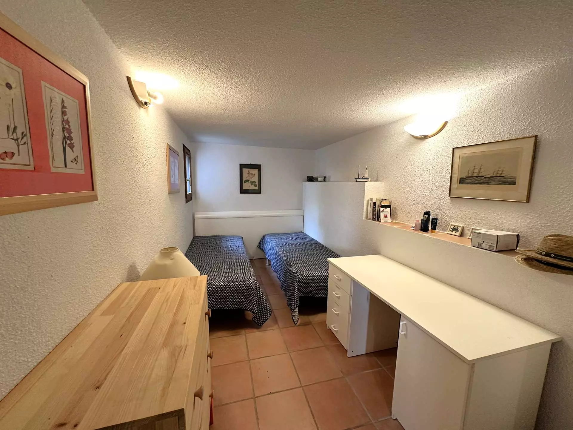 A bedroom with two single beds (90x200 cm), a shower room and a separate toilet complete this level.