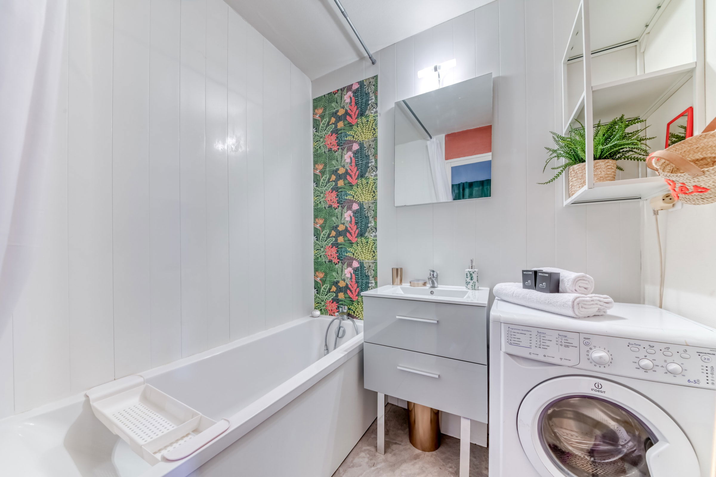 - washing machine, tumble dryer, hairdryer, iron, smoke detector, clothes hangers,