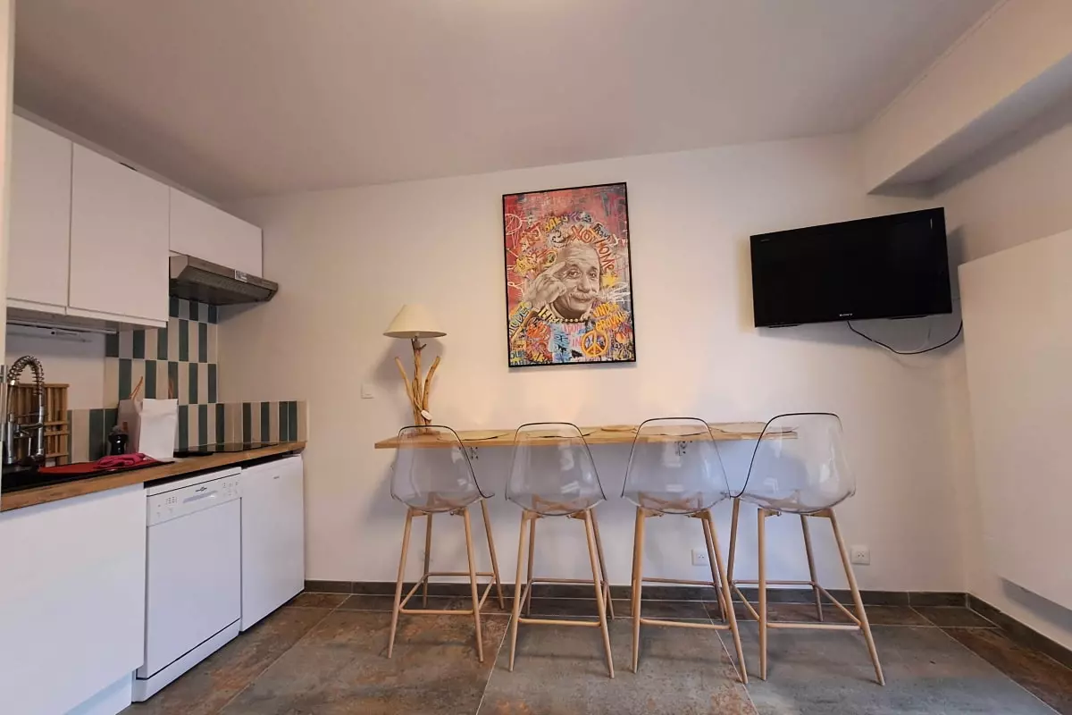 Enjoy a wide range of amenities for a most pleasant stay. You will have access to Wi-Fi, a television, a dishwasher, a washing machine, a coffee machine, a microwave, an oven, a raclette grill, an iron and a balcony.