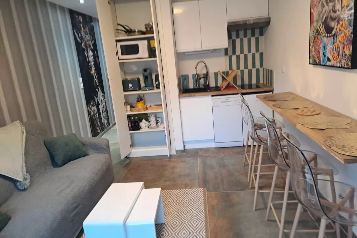 Discover this charming 28 m² studio in Le Touquet, perfect for a functional and relaxing stay. Ideal for up to 4 people, it comprises a sleeping area with a bunk bed separated by a curtain, a fully equipped kitchen, a shower room, and a relaxation area with a sofa bed, perfect for unwinding after a day of exploring.