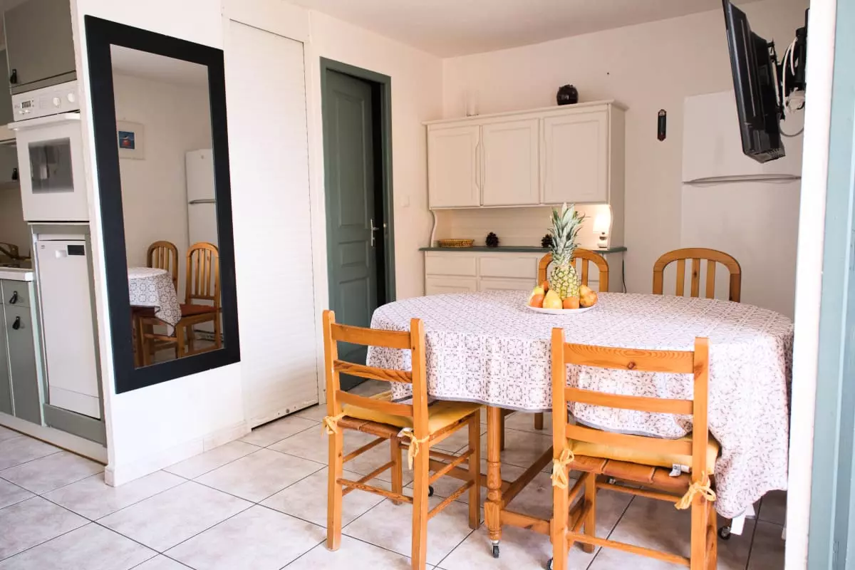Located opposite the beach, it offers a bedroom with a double bed (140x190cm), a functional shower room, and a fully equipped kitchen for easy meal preparation. The living area features a sofa bed (160x190cm), ideal for relaxing after a day of exploring.