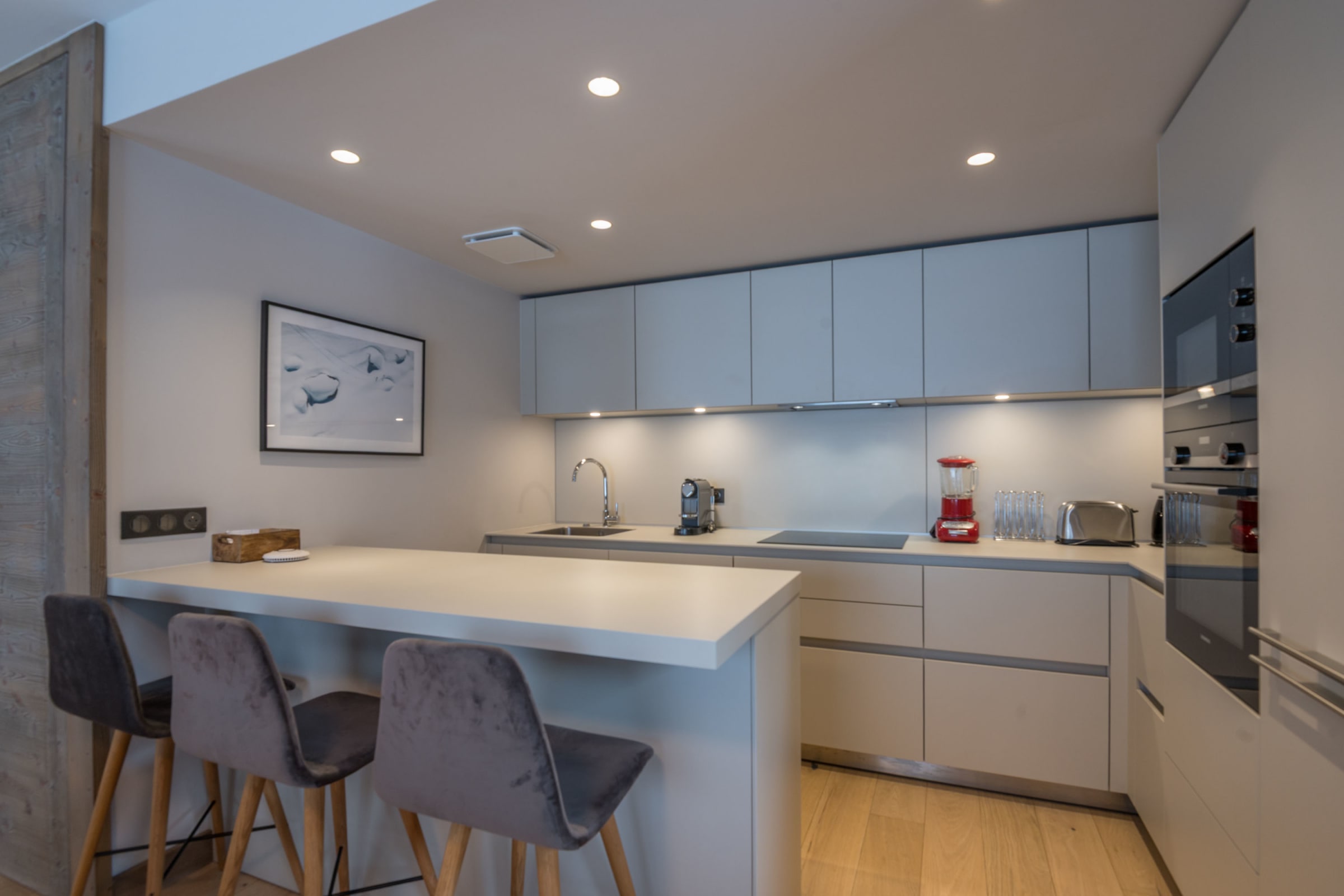 - a fully-equipped open-plan kitchen (coffee machine, kettle, mixer, toaster, hob, oven, microwave, fridge, freezer, dishwasher),