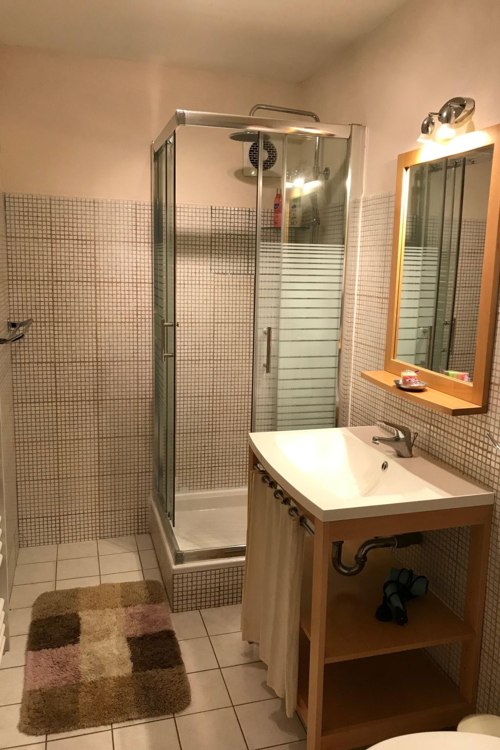 The interior of the flat is designed for your comfort and relaxation, with an air-conditioned main room featuring a 1.40 m sofa bed for rest and relaxation. The kitchen, equipped with an induction hob, several coffee makers (filter, pod, soft pod), a mini-oven, an Airfryer, and much more ensures that you can prepare meals just like at home. There's also a washing machine for private use, a dishwasher, and a 107 cm connected TV for relaxing after a day of exploring.