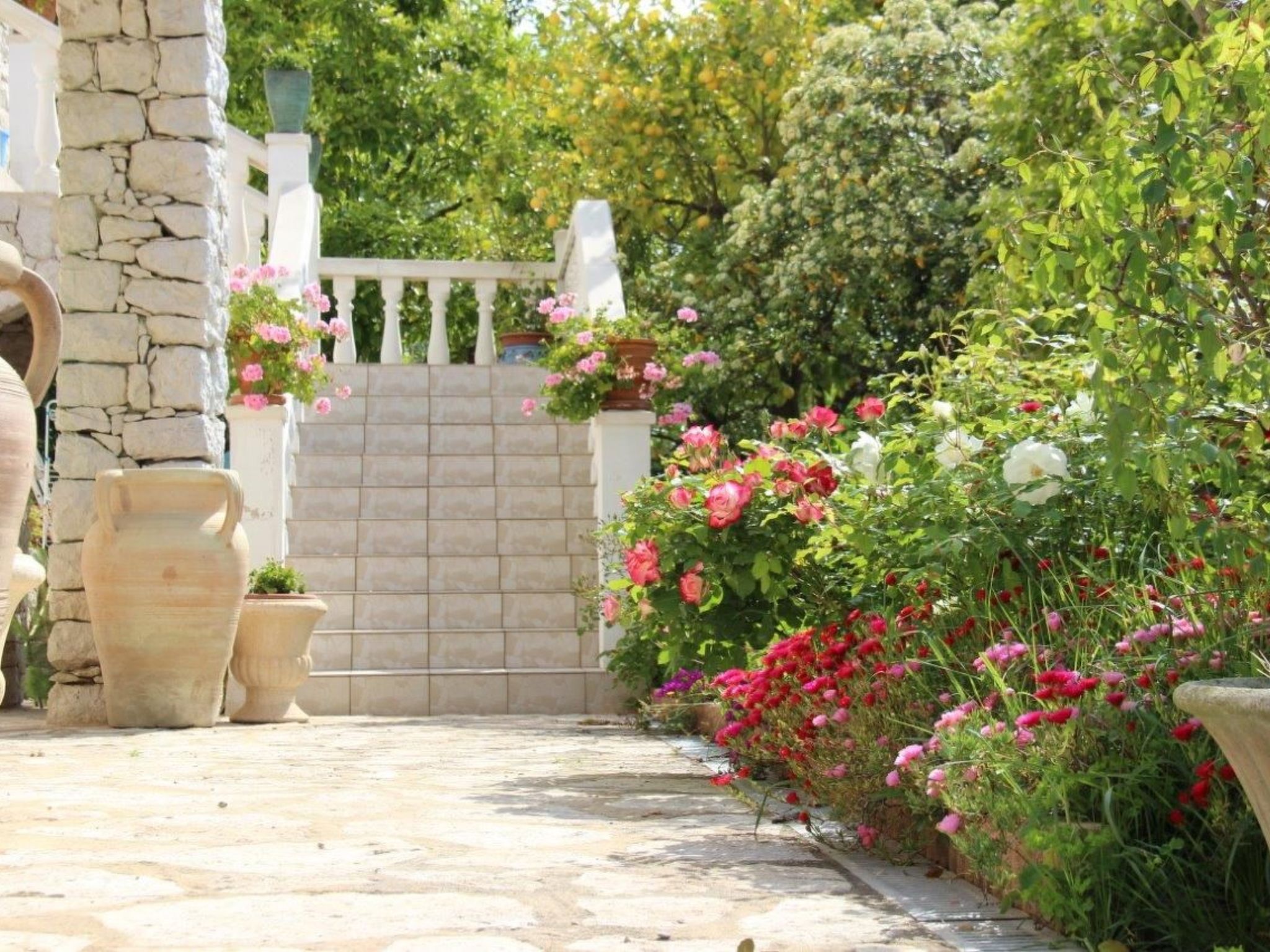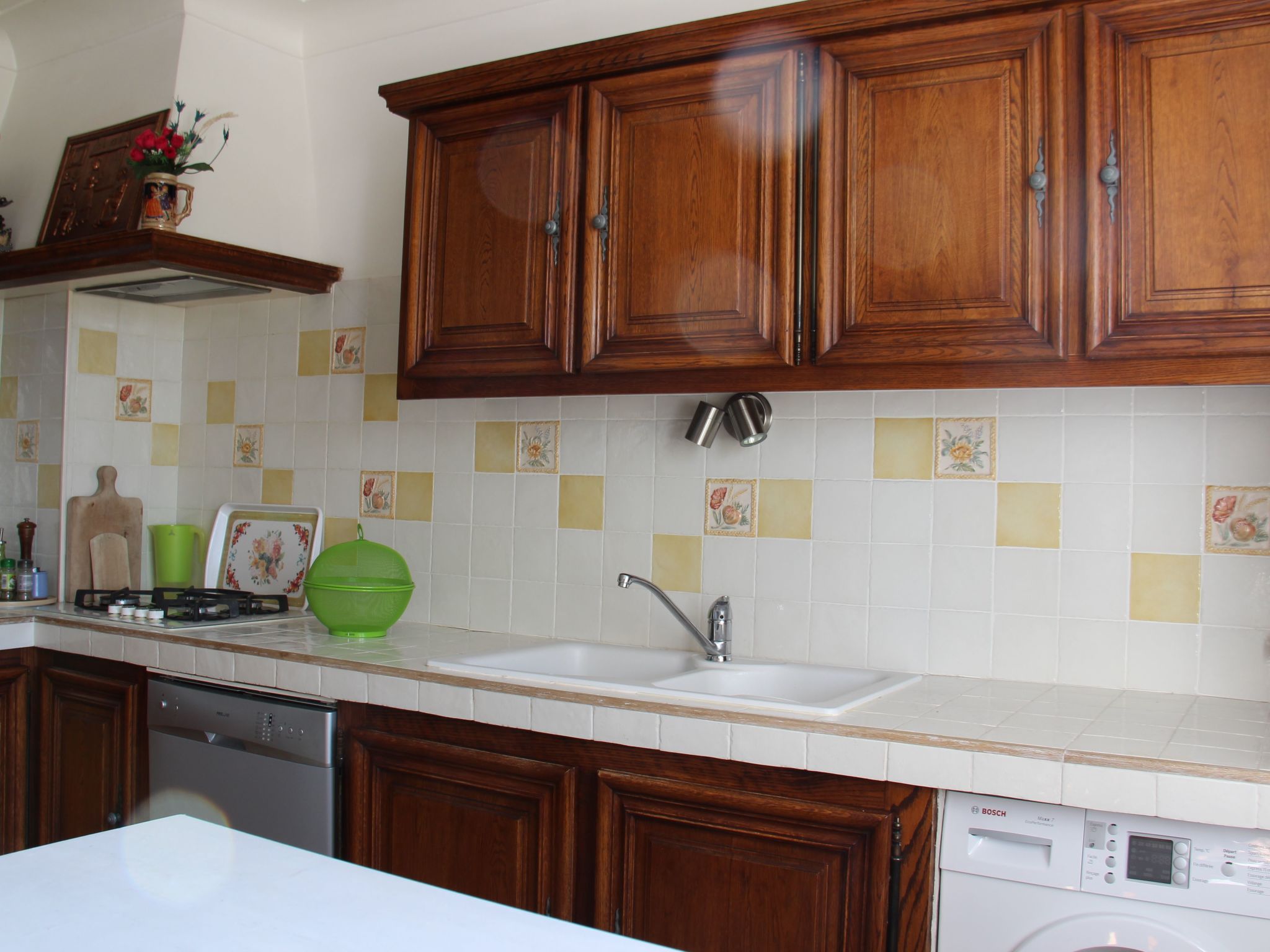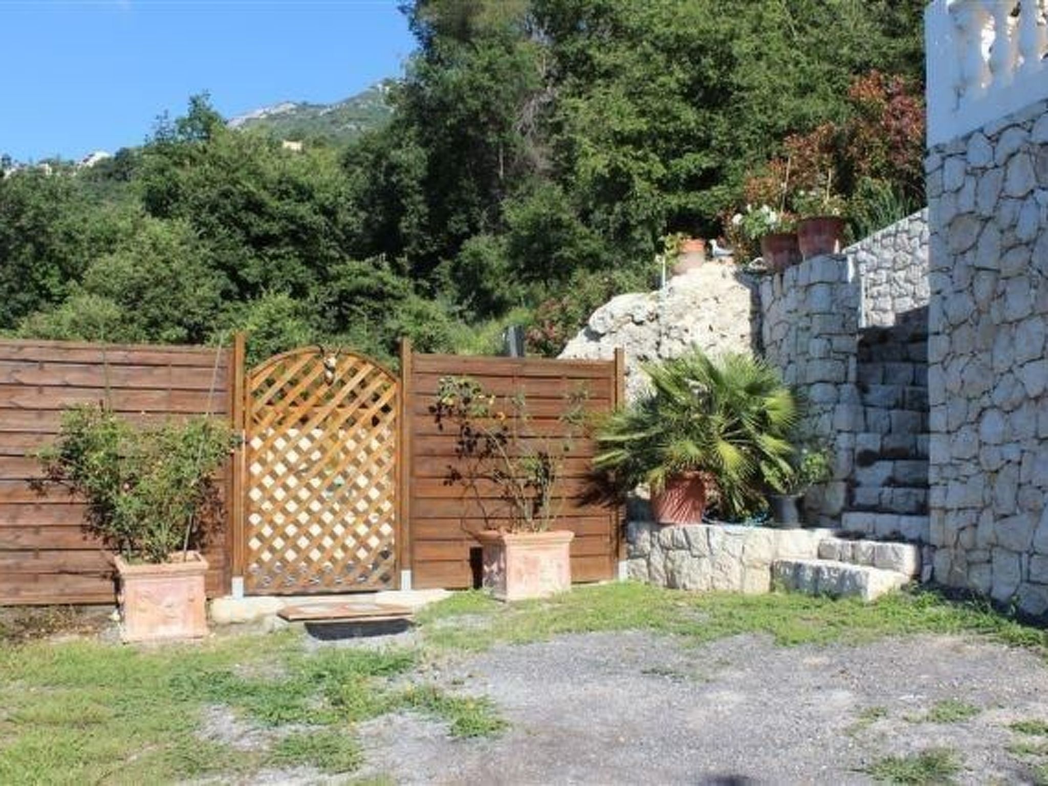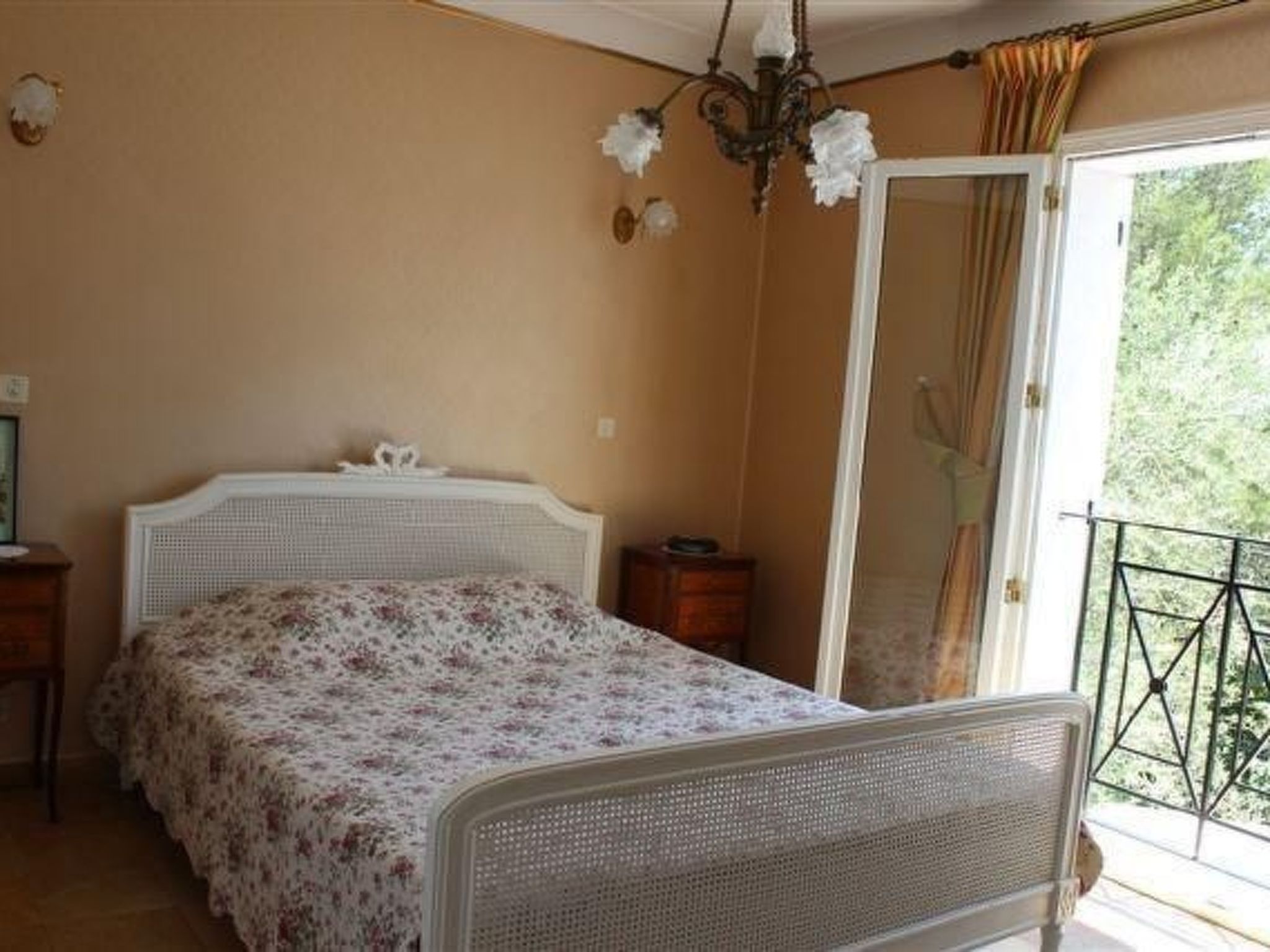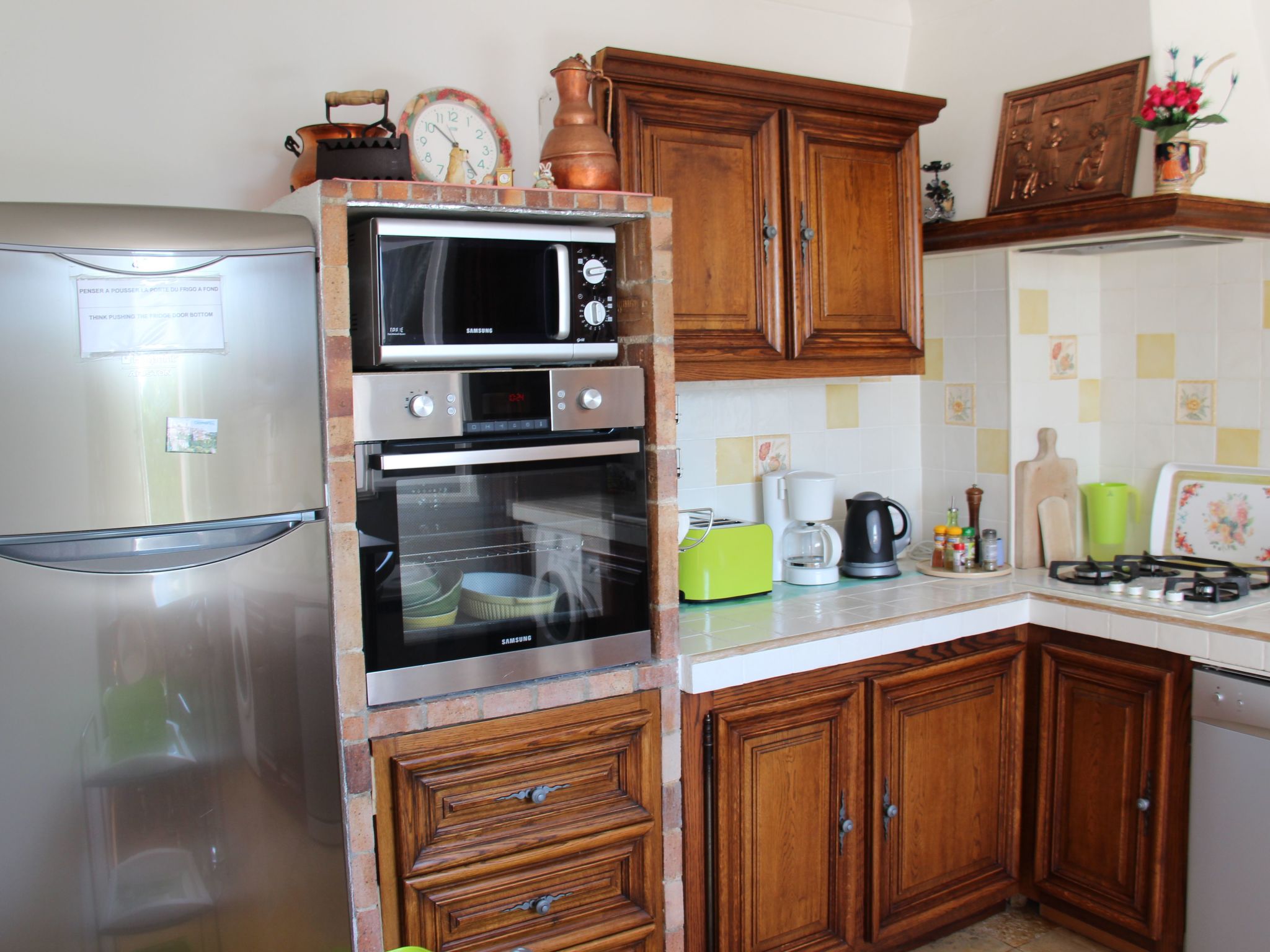 The 80 m² terrace, enclosed and protected from the sun, communicates with the living room. Here you can enjoy absolute peace and quiet. Parents can relax while the children play. The terrace has an arbour (5 x 3 m) and a pergola (3.5 x 3.5 m), a barbecue, a wall-mounted pizza oven, garden furniture, a table and chairs and sun loungers. This means you can spend plenty of time outside enjoying the barbecue, eating, relaxing and lounging. From the terrace, you can access your own private swimming pool (8 x 4 m, 1 m to 1.70 m deep), filled with chlorine-treated water and situated just below. Thanks to its sunny location, it's already a pleasant temperature early on. The 200 m² paved area around the pool is furnished with six sun loungers, two parasols and a solar shower. It enjoys all-day sunshine and magnificent sea views. Enjoy the peace and quiet as you listen to the birds and cicadas. For those who like to be a little more active, a table tennis table and table football are available. The property has an automatic entrance gate, automatic lighting and two parking spaces.