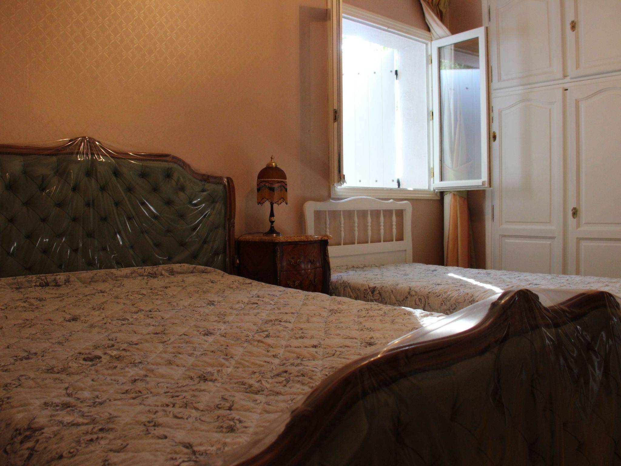 The 125 m² non-smoking flat offers plenty of space in its French-style rooms, as evidenced by the 60 m² living room. It consists of a comfortable lounge set in front of the fireplace with leather sofa and armchairs and a dining set. The spacious kitchen is fully equipped. There are three bedrooms in all, also furnished in an elegant, timeless style. Two of the bedrooms each have a double bed (160 x 200 cm), while the third has another double bed (140 x 190 cm), a single bed (90 x 190 cm) and a folding bed (80 x 180 cm). Each bedroom has its own fan. The spacious bathroom has a bath, shower, double washbasin and bidet. For safety and hygiene reasons, particular care is taken with the final cleaning of the accommodation, outside areas, terrace and swimming pool, making the rental area 600 square metres completely private.