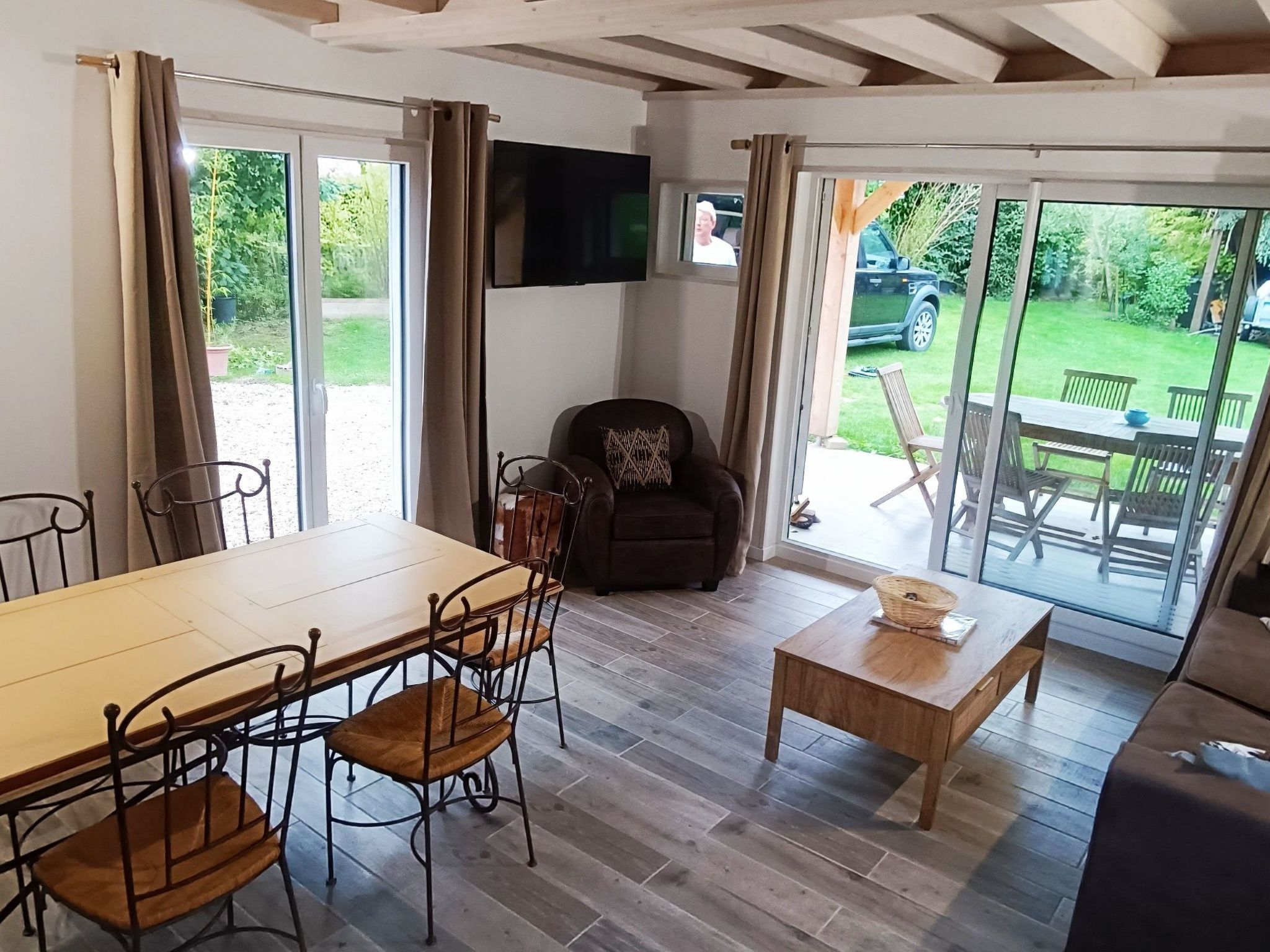 The charm continues outside, where each house has its own private, well-defined 300 m2 garden planted with trees, a covered terrace for enjoying meals al fresco, and individual parking. The entrance is shared by two houses, but each area remains well separated to ensure your peace and quiet.