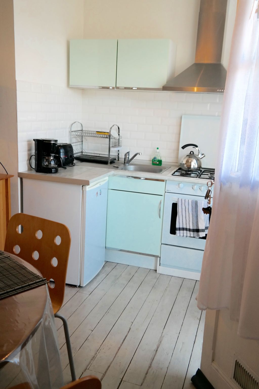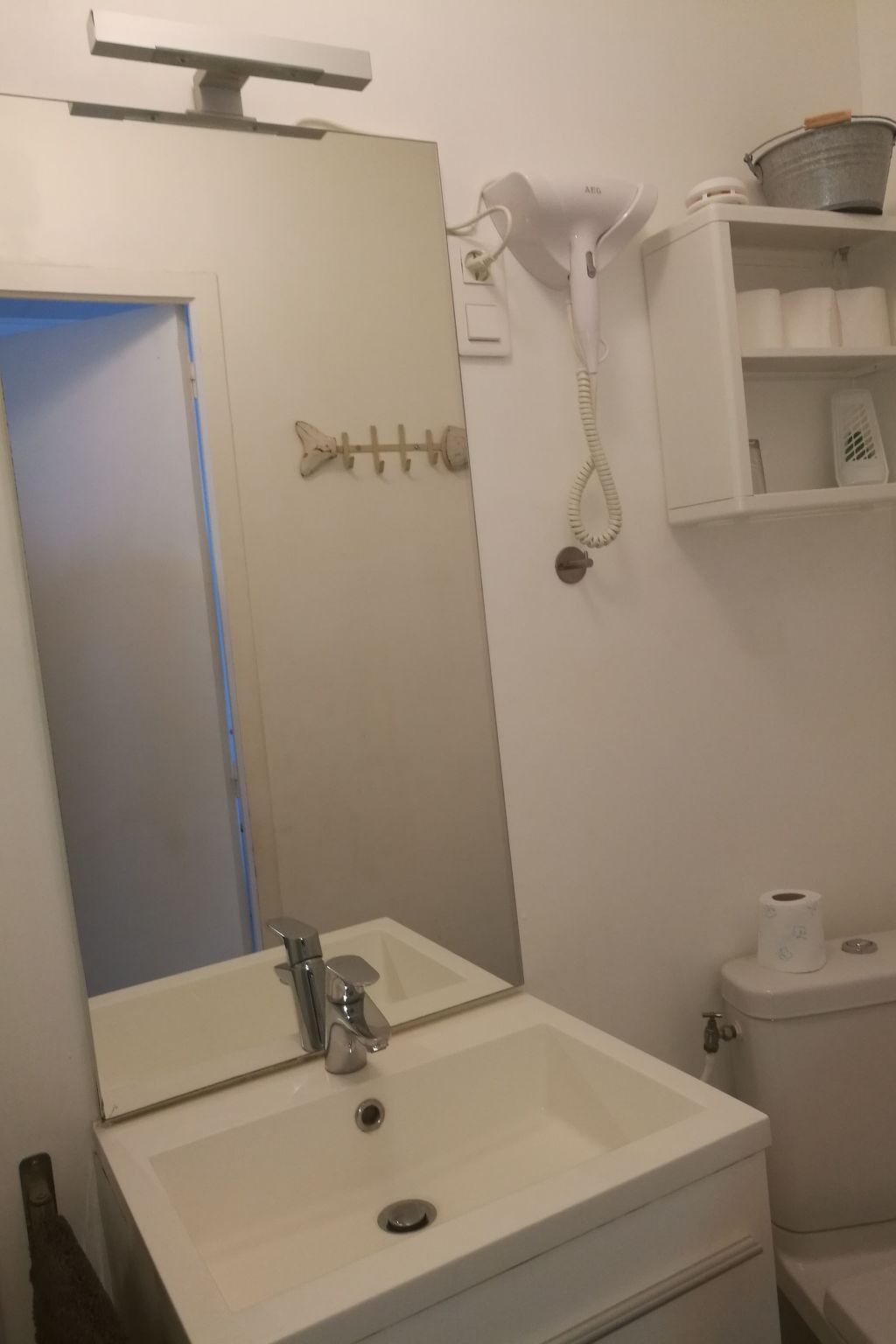 Inside, the flat features a cosy bedroom with a comfortable 140 cm x 200 cm double bed, guaranteeing a good night's sleep. The bathroom includes a shower and toilet, promising practicality and privacy. The kitchen area is fully equipped for meal preparation, with a 4-burner gas hob and oven, microwave, two types of coffee maker (Nespresso and filter) and all the necessary utensils. For moments of relaxation, there's a sitting area with a sofa bed and a small coffee table.