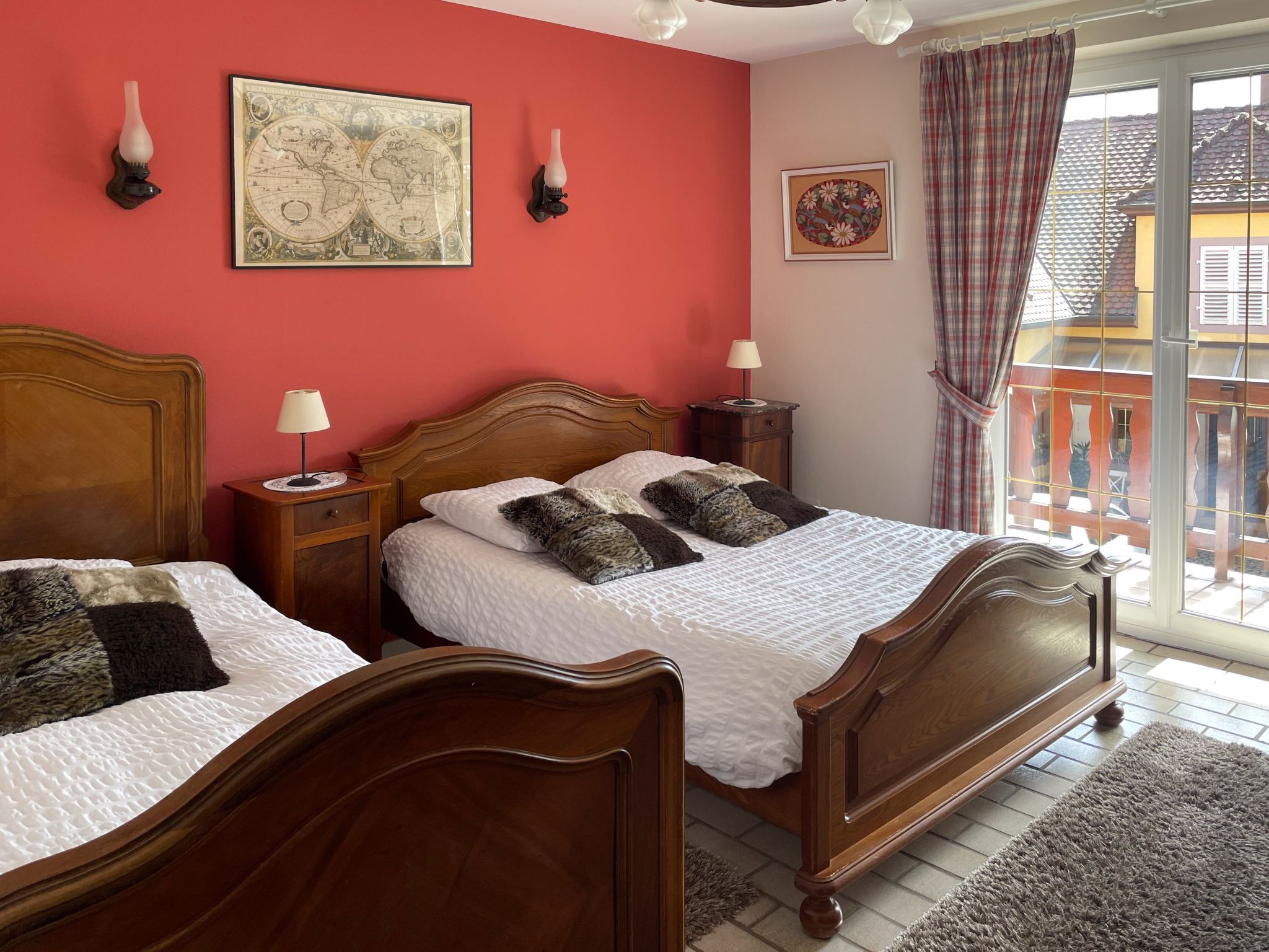 The gîte is on the 1st floor. It has 3 bedrooms: