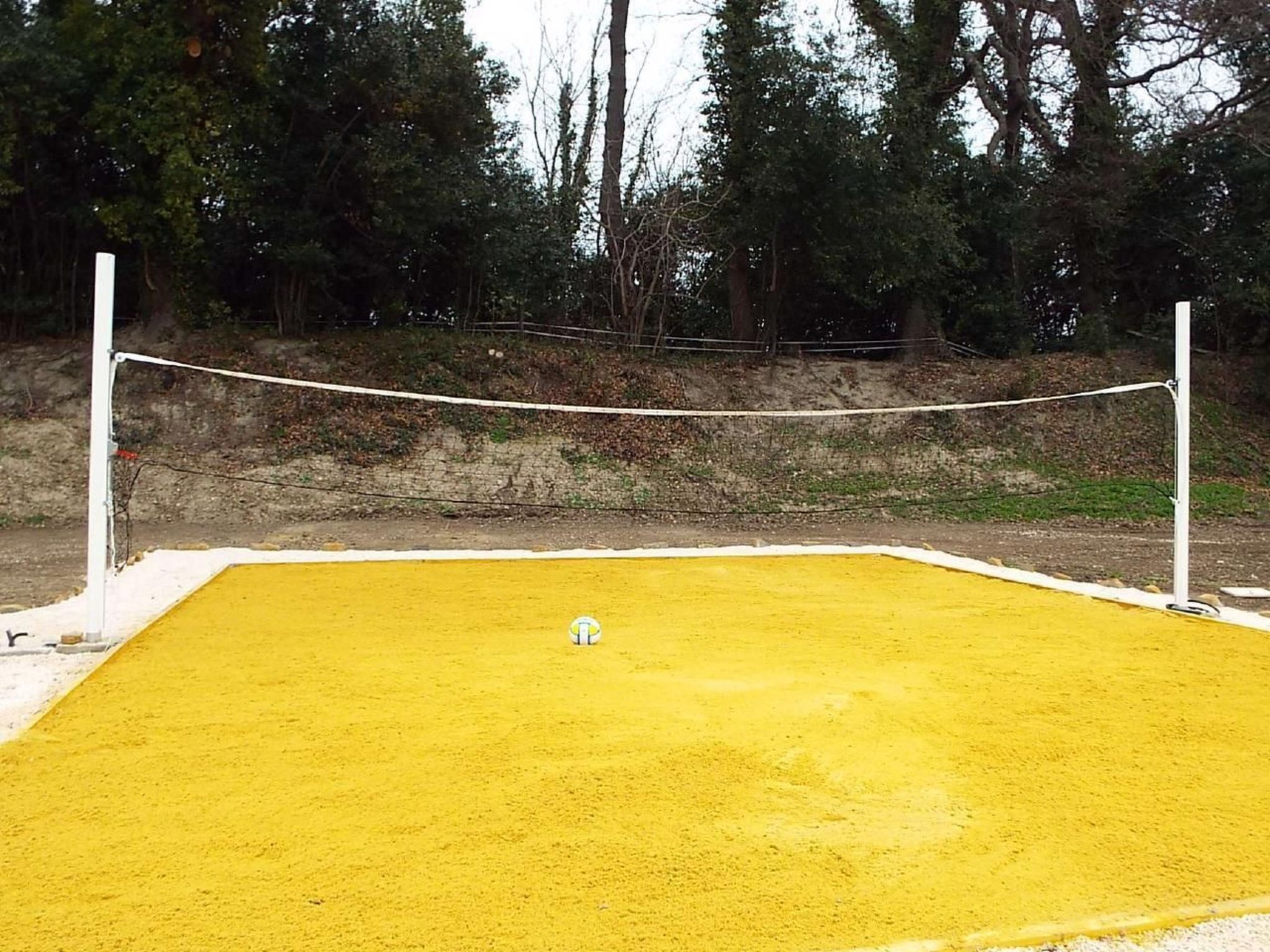 basketball hoop, football pitch, boules pitch and beach volleyball court,