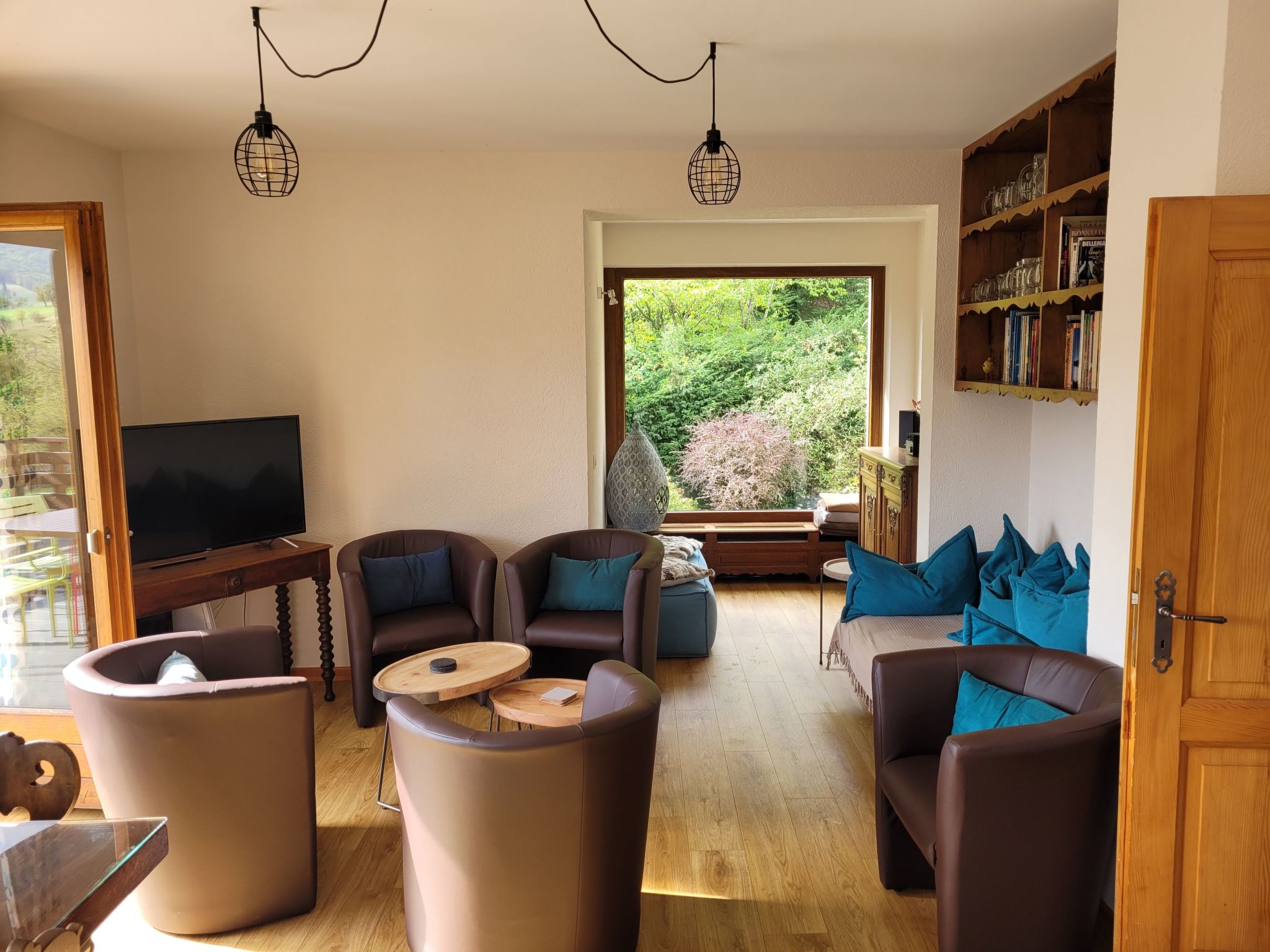 - view: mountain, garden, forrest, lawn
