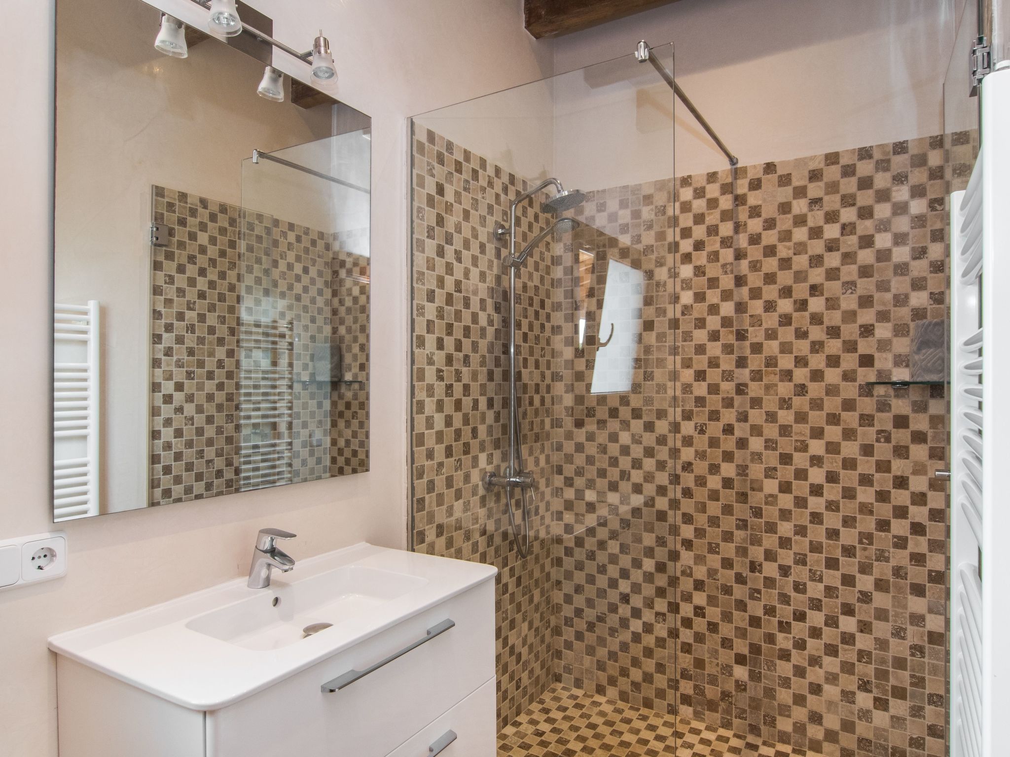 On the ground floor we find, a large entrance hall with access to the other floors, a spacious living room with sofa, 52" plasma TV, satellite, dvd, stereo, piano, fireplace..., a dining room with a table for 10 people, a spacious fully equipped kitchen with fireplace, ceramic hob, oven, fridge-freezer, toaster, kettle, dishwasher..., laundry room (washing machine, iron, ironing board, frother, dishwasher...), washing machine, iron, iron and iron..., laundry room (washing machine, iron, frother, dishwasher...).laundry (washing machine, iron, ironing board, broom...), a toilet with shower and wc, three bathrooms with wc, vidé bathtub... (two of them are en suite and have a jacuzzi), three bedrooms: - One with two single beds of 90 cm wide by 2.another with a double bed of 1.50m x 2.00m (with en suite bathroom) - And the other one (which has an en suite bathroom and dressing room), has a double bed of 1.80m x 2.00m.