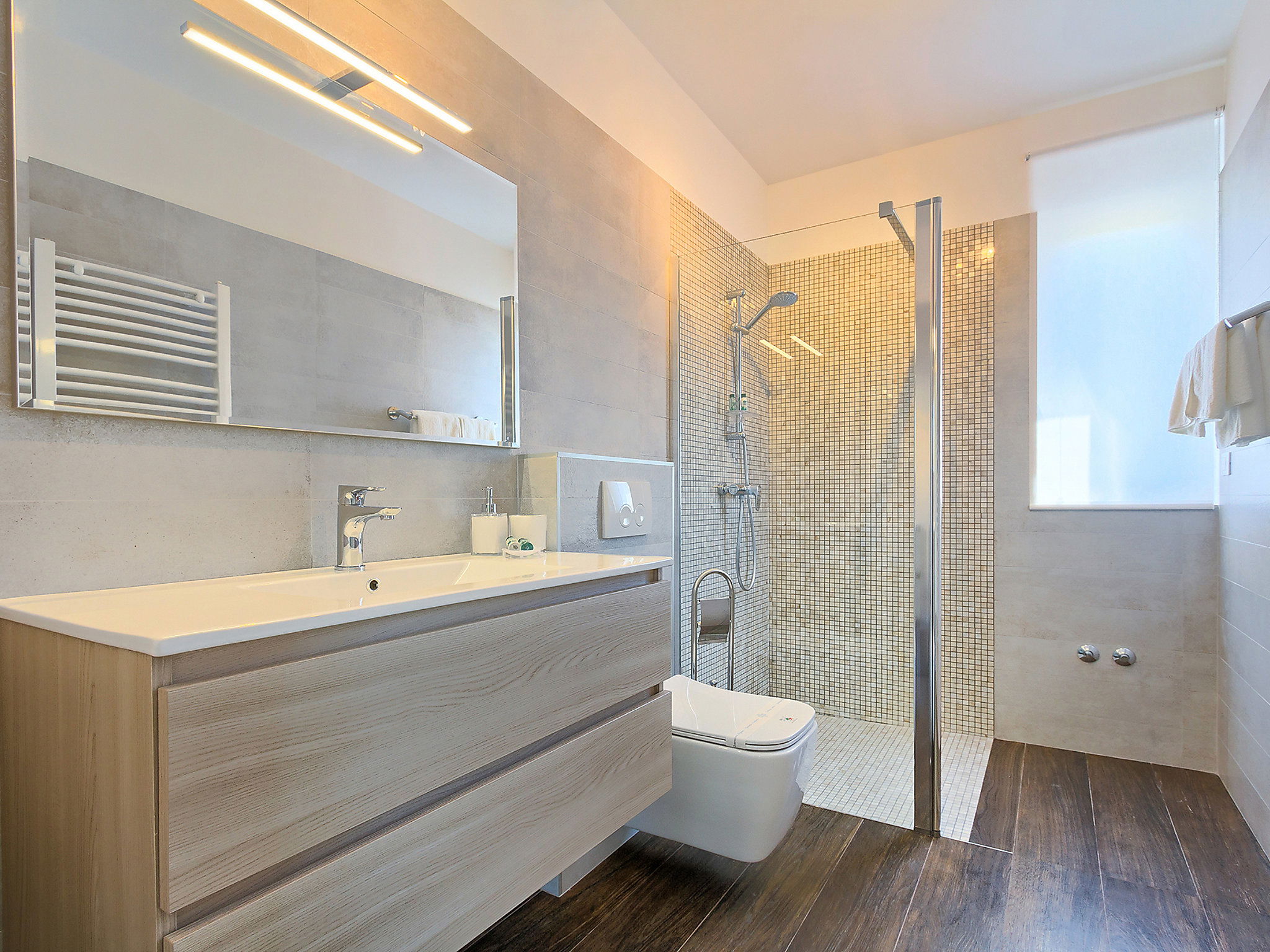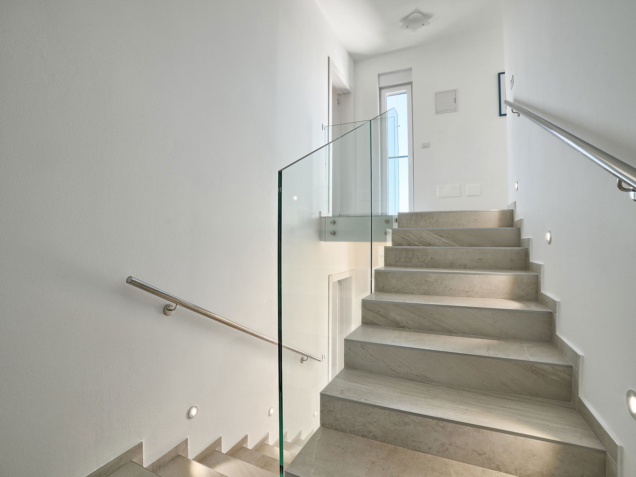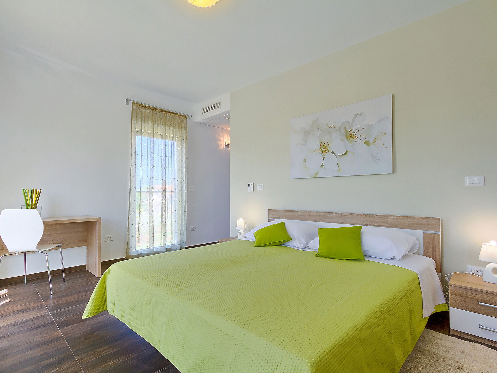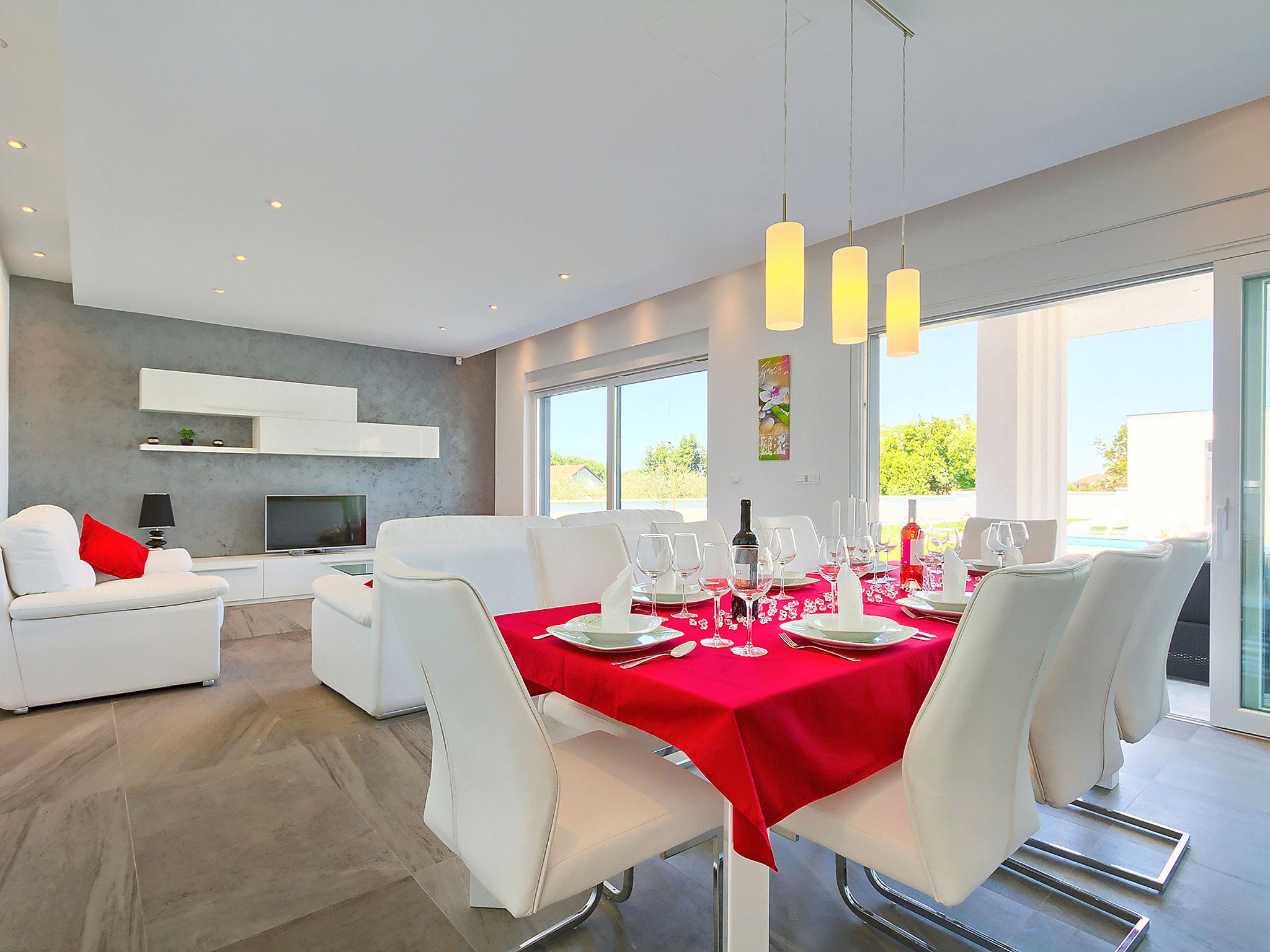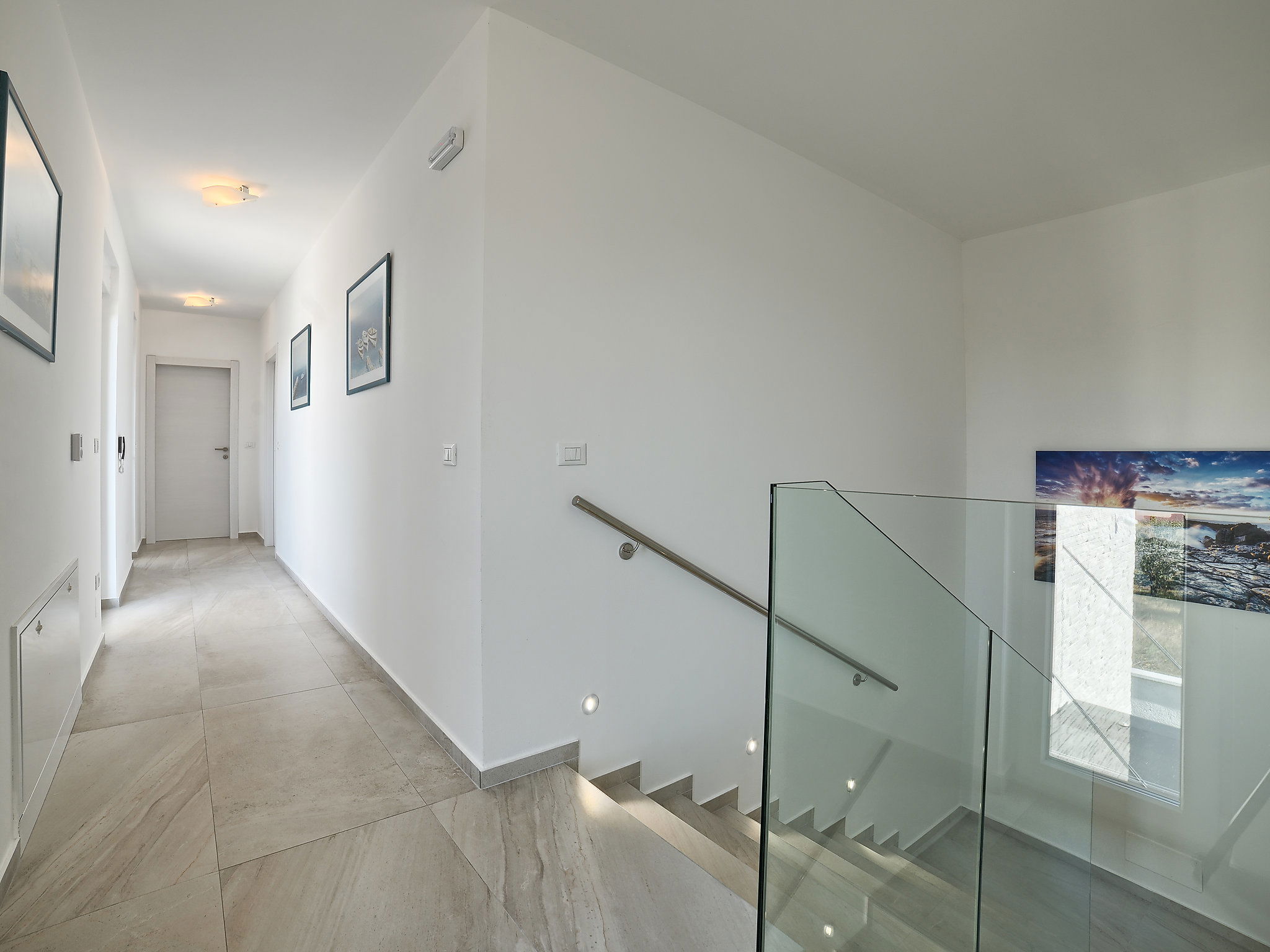Štinjan 5 km from Pula: Modern, beautiful villa "Lungera", 2 storeys. 3 km from the centre of Fažana, in a sunny position, 1 km from the sea, 1 km from the beach. Private: property 1'250 m2 (fenced), garden with lawn and wildlife garden, swimming pool angular, heated (43 m2, depth 135 cm, seasonal availability: 09.Mar. - 21.Nov.) with internal staircase and salt-electrolysis pool-cleaning system. Outdoor shower, pool house with fridge and cooking stove, terrace, garden furniture, barbecue. In the house: internet access, washing machine. Parking at the house on the premises. Shop 200 m, restaurant 500 m, bus stop 220 m, pebble beach 1 km, rocky beach 1 km. Golf course (18 hole) 5 km, sailing school 2 km, tennis 1 km, riding stable 3 km, walking paths from the house 500 m, cycle lane 100 m. Please note: airfield 15 km from the property. Swimming pool heated (extra). By groups of young people double deposit is requested on arrival. No pets allowed.