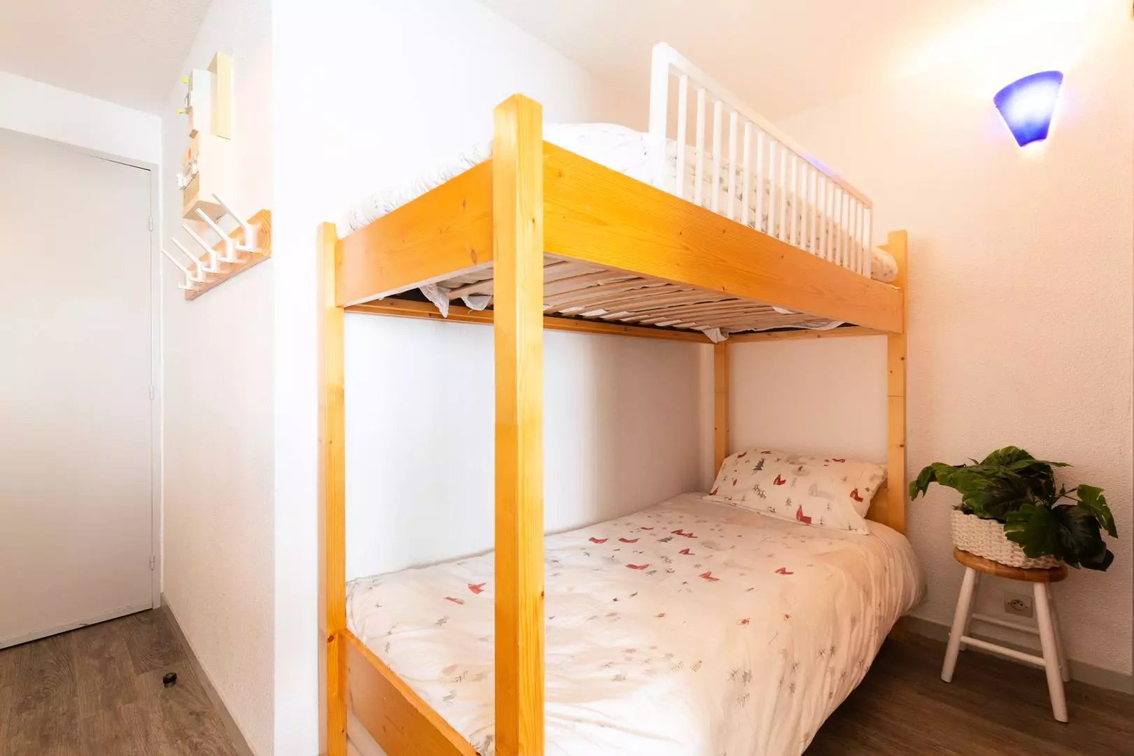 1 bedroom with a double bed (140cm) and a cabin with 2 single bunk beds,