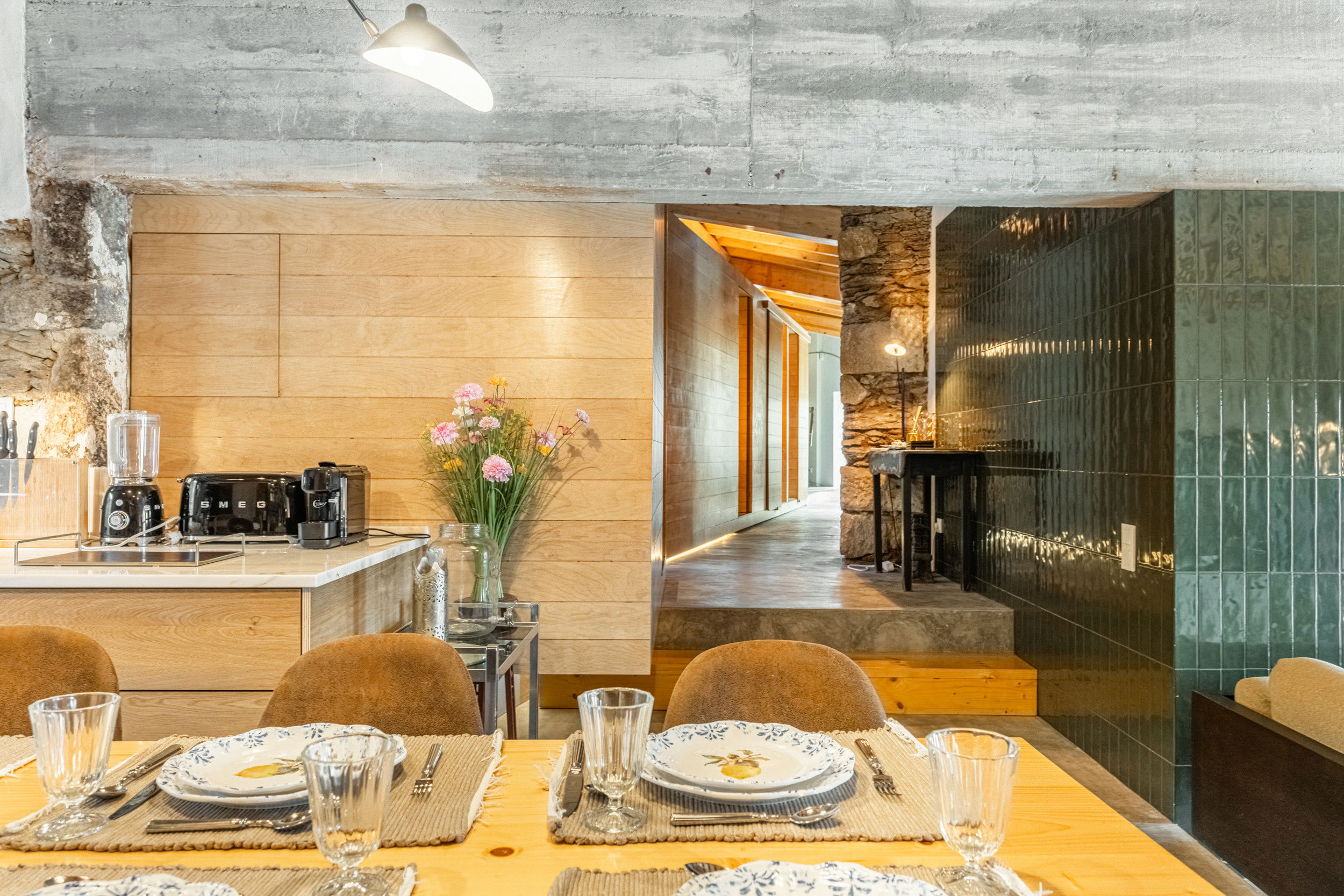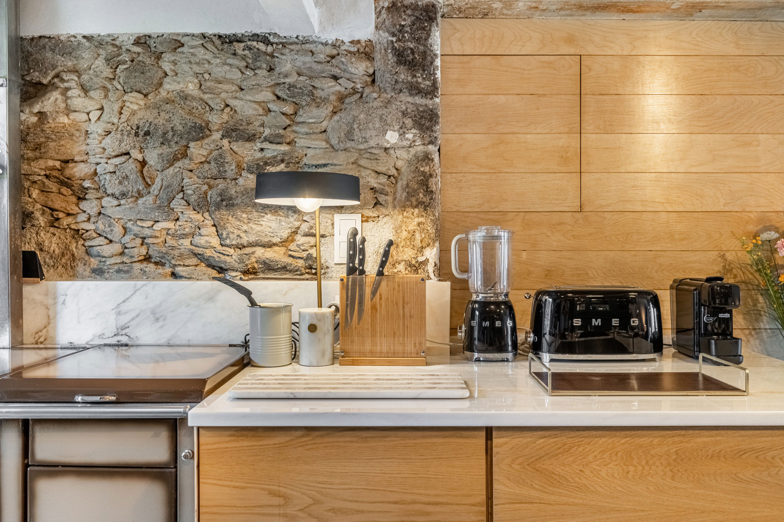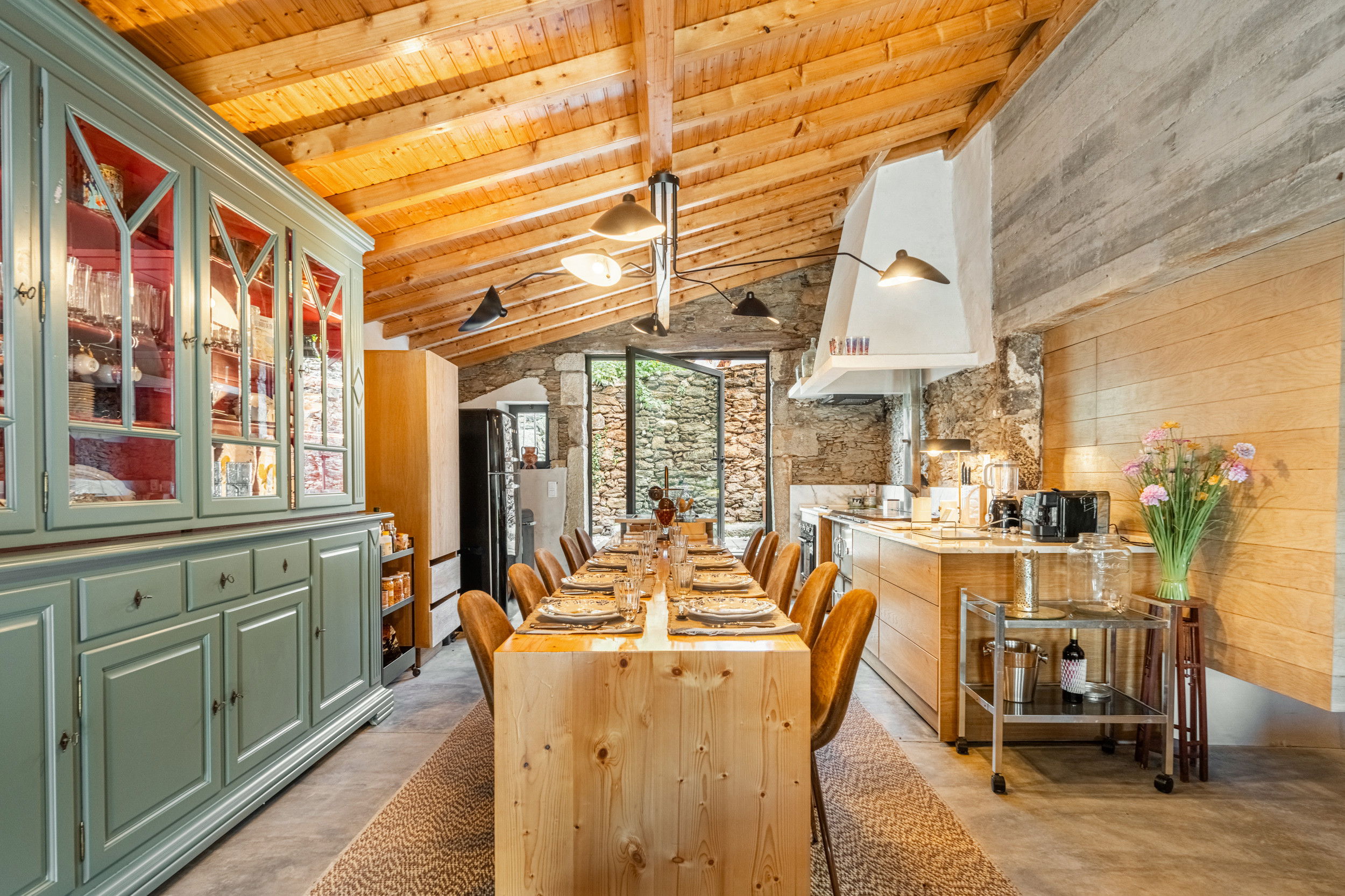 Inside, the warmth of natural materials continues. The four double bedrooms, crafted from wood and set upon the villa’s original stone foundations, create a cozy yet refined atmosphere that celebrates the region’s heritage. With three modern shower rooms, a well-appointed SMEG kitchen, and spacious living areas offering ample seating for dining and lounging, every unique detail is designed for comfort and connection. A second lounge framed by exposed stone walls provides the perfect retreat for peaceful moments.