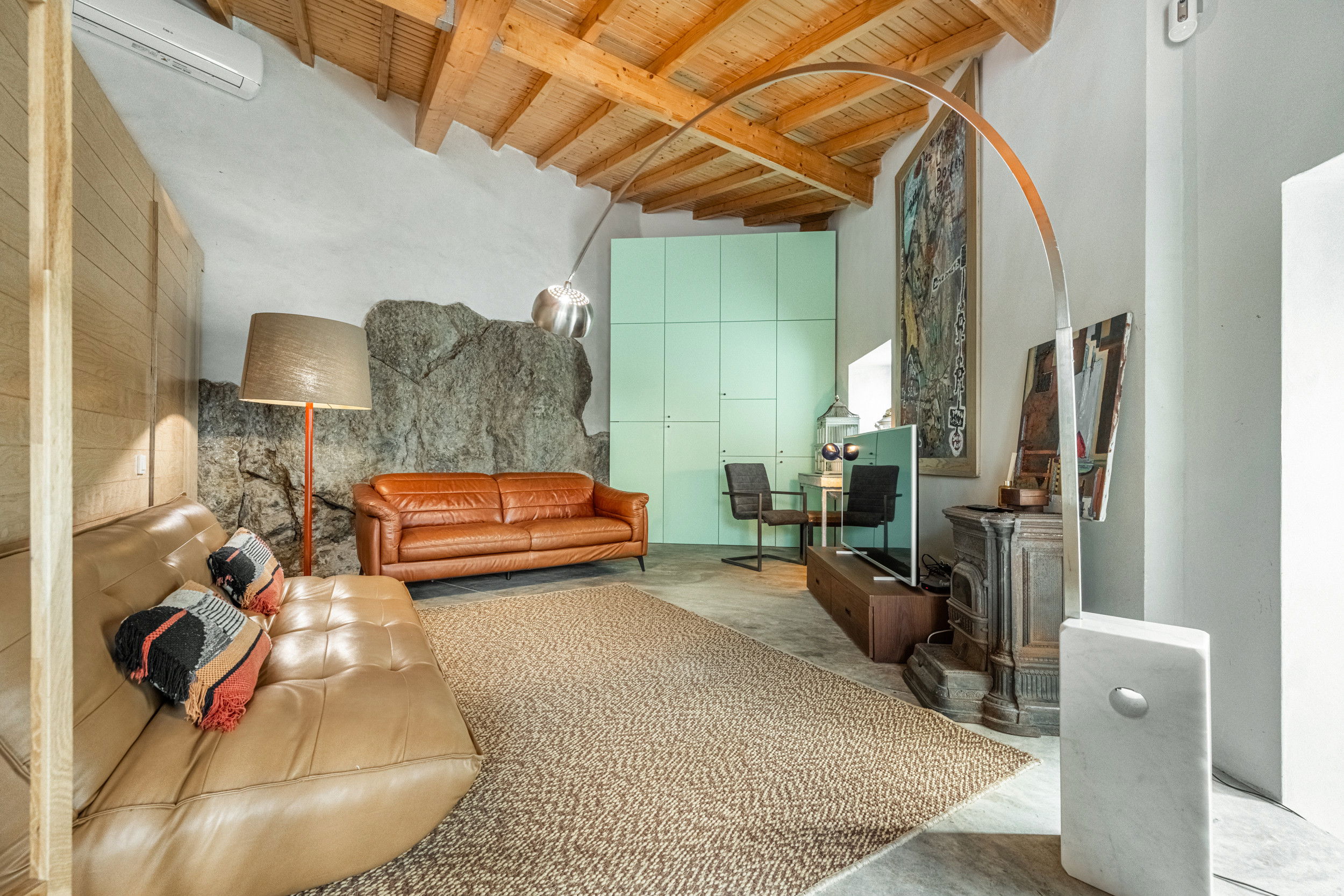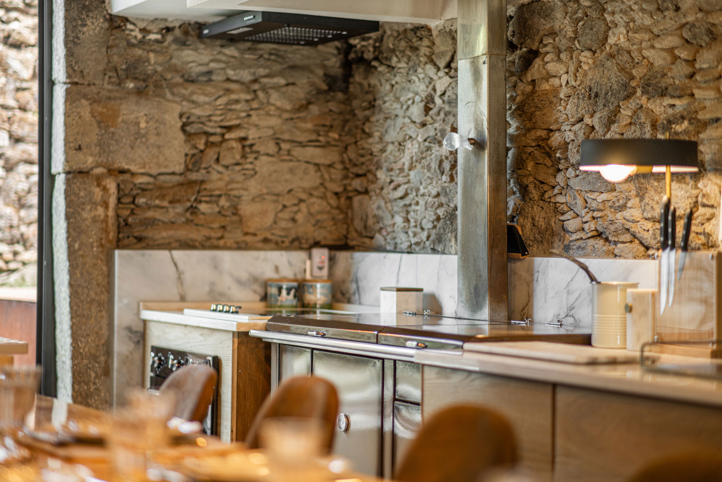 Nestled between the mountains and the river, this remarkable stone-and-wood villa captures the essence of rustic beauty with a touch of contemporary comfort. Thoughtfully integrated into the surrounding rocks, it offers a seamless blend of nature, design, and tranquility.