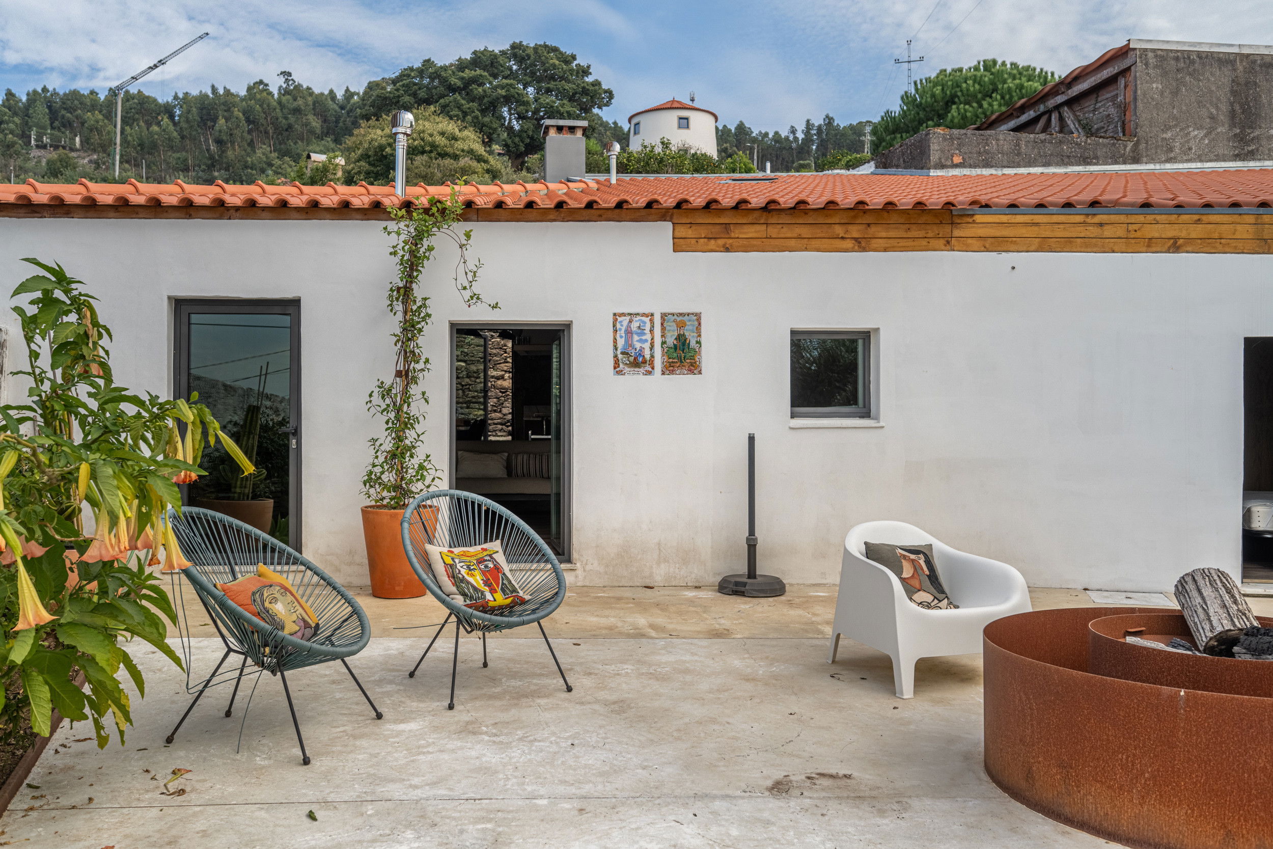 One terrace at the front of the villa with fire-pit