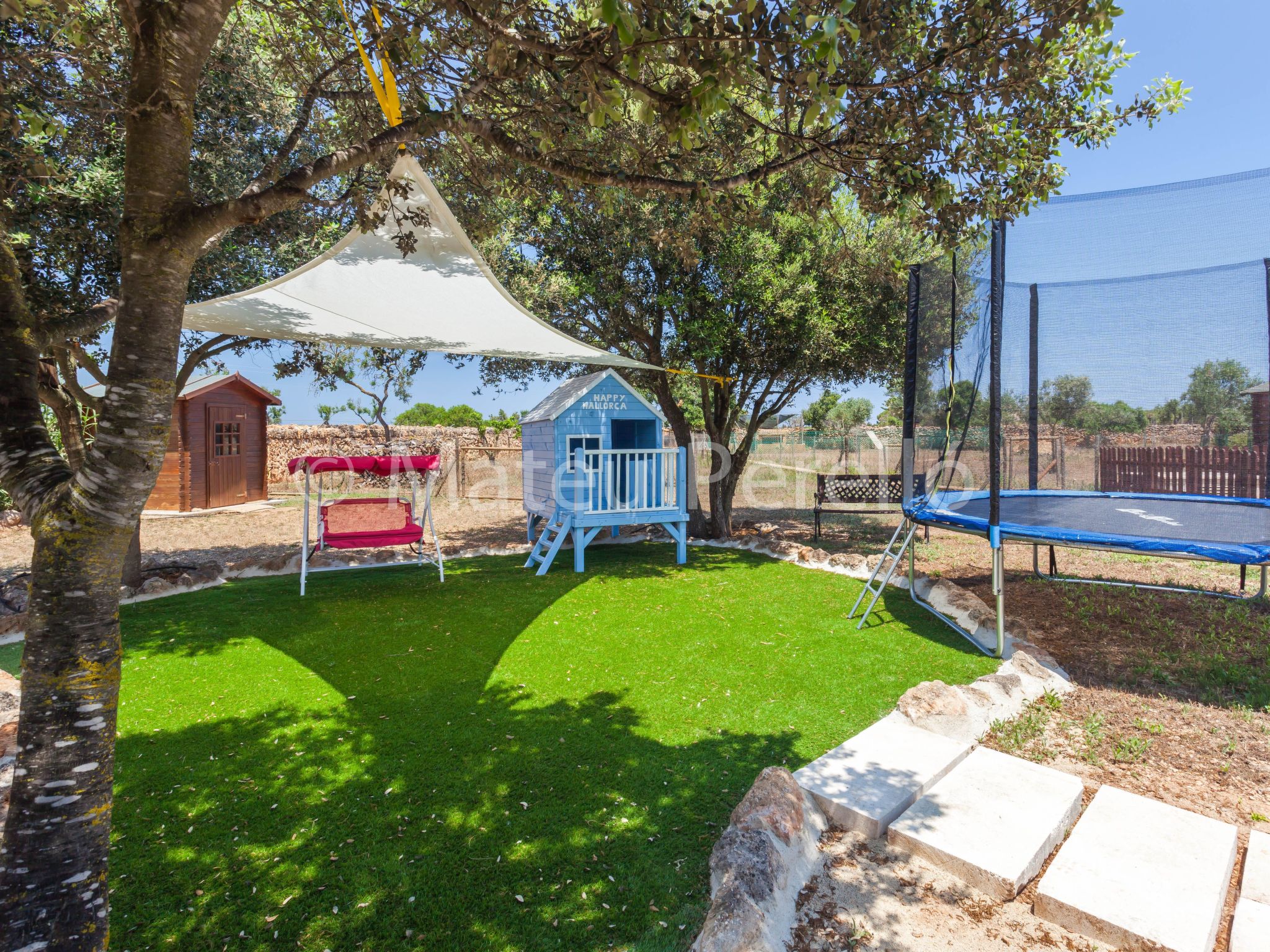 The villa's extensive exterior is a true paradise. A large covered terrace surrounds the house, complemented by an air-conditioned porch with double glazing. The gardens are extensive, with a children's play area, wood-fired barbecue and a fenced plot with chickens, ducks and sheep. The jewel in the crown is the main 9x4 m swimming pool, accompanied by a slide, paddling pool, a wooden pergola with garden furniture, sun loungers and an artificial grass area with a children's playhouse.