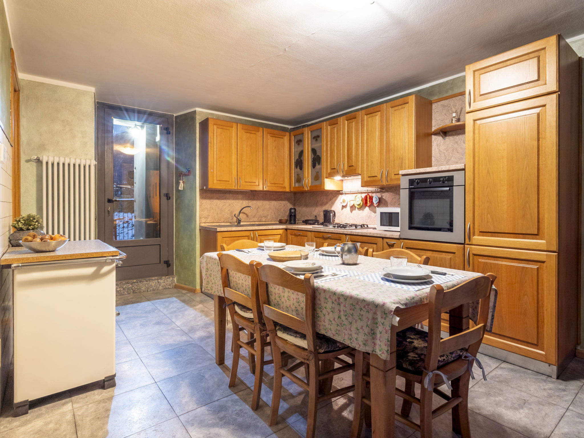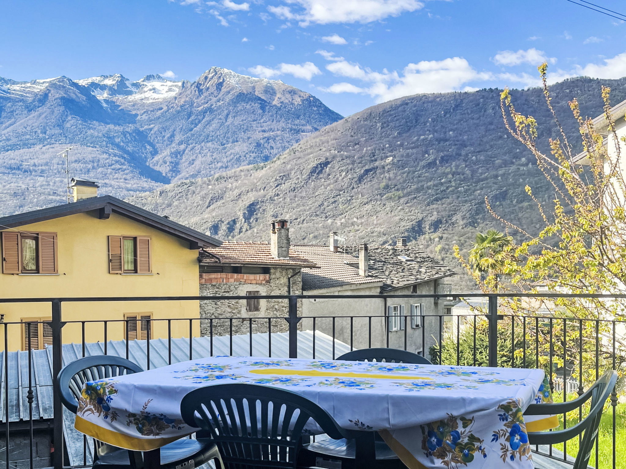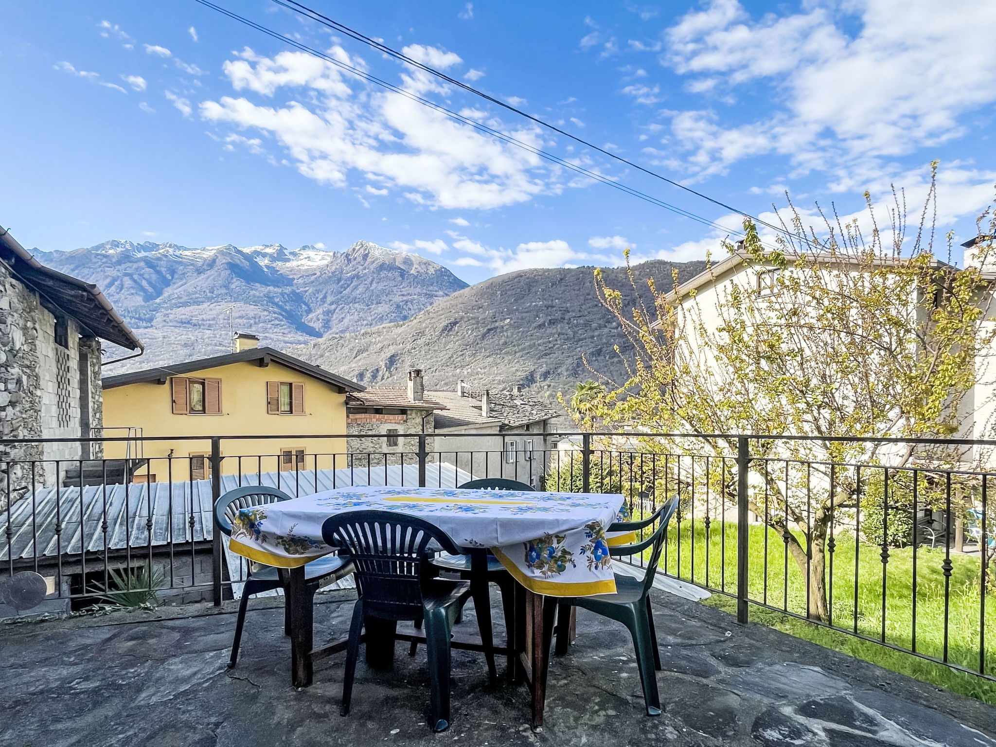 Small, rustic house "Casa Quadrifoglio Terrace", 300 m a.s.l., 2 storeys. In the centre of Talamona 4 km from the centre of Morbegno, in the residential district, excellent location: right in the centre but still quiet, 20 km from the lake, 1.2 km from the river. Private: large garden with lawn and trees. Terrace. In the house: storage room for bicycles, storage room for skis, central heating system. Narrow motor access (50 m via unmade road). Parking at the house. Supermarket 600 m, restaurant, bar 200 m, bus stop 500 m. Nearby attractions: Fly Emotion (Zipline) 13 km, Ponte Tibetano Ponte nel Cielo 16 km, Riserva Naturale della Val di Mello 19 km, Sondrio 24 km, Train Bernina Express: Tirano-St Moritz 51 km. Well-known ski regions can easily be reached: Campodolcino 52 km, Madesimo 58 km. Well-known lakes can easily be reached: Lago di Como 2 km. Hiking paths: Monte Foffricio, Rifugio Legnone, Ponte di Stavello, Rifugio di Fuentes, Osiccio di Sotto – Osiccio di Sopra.