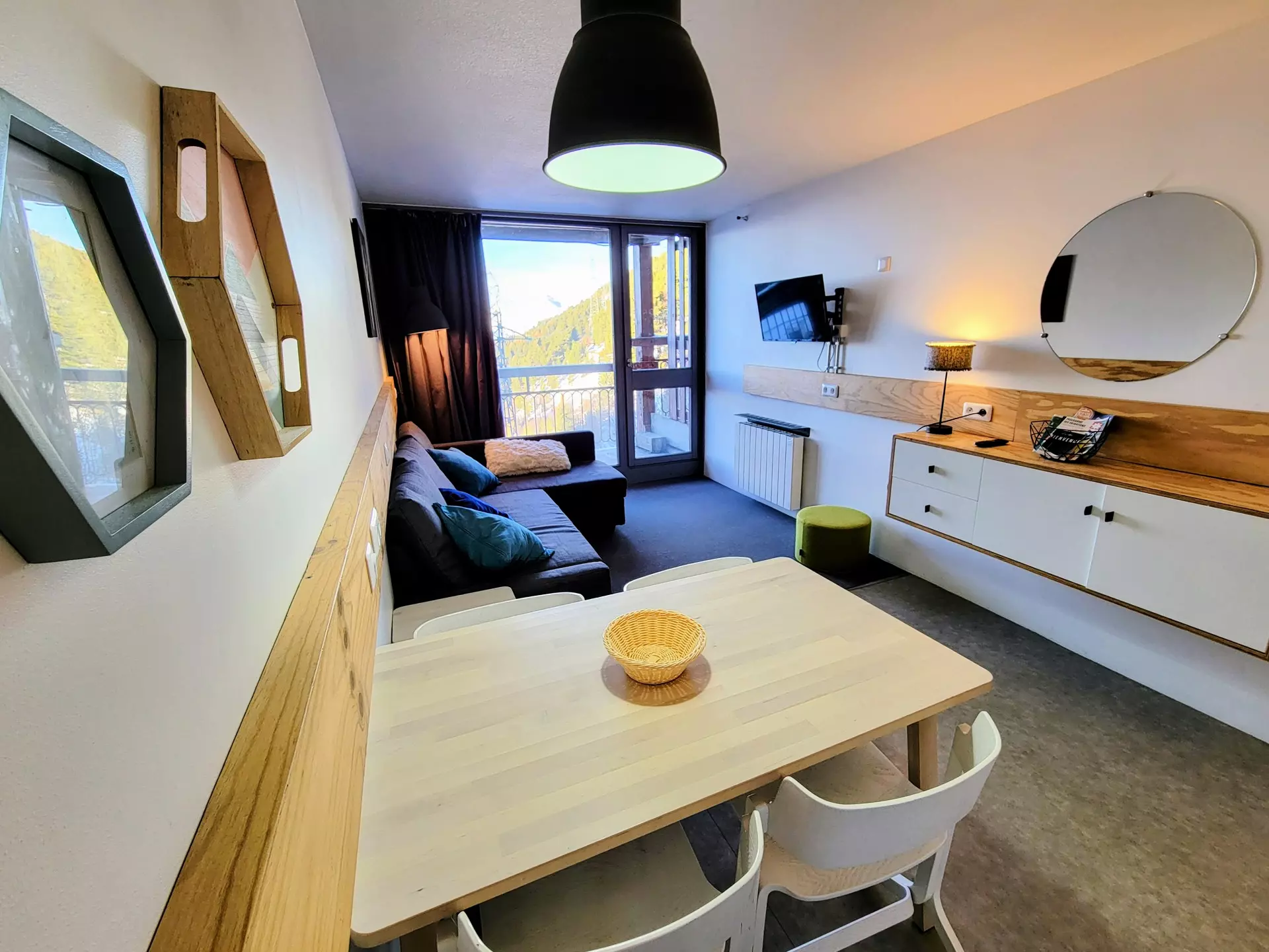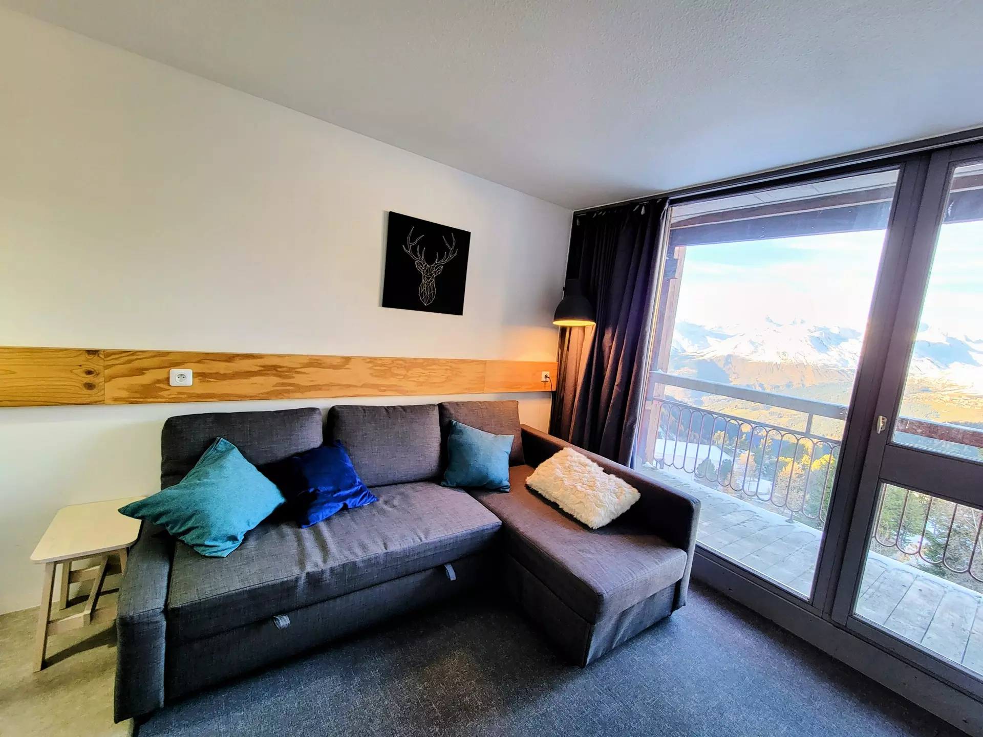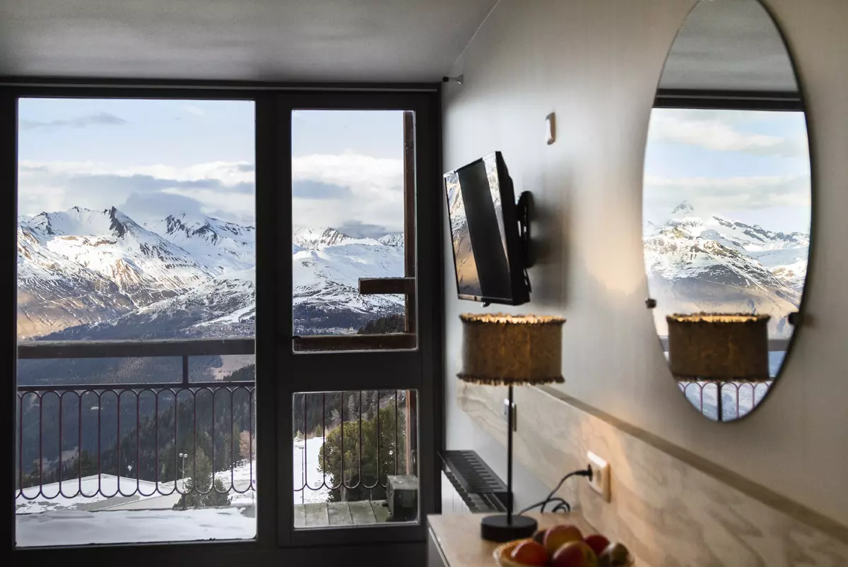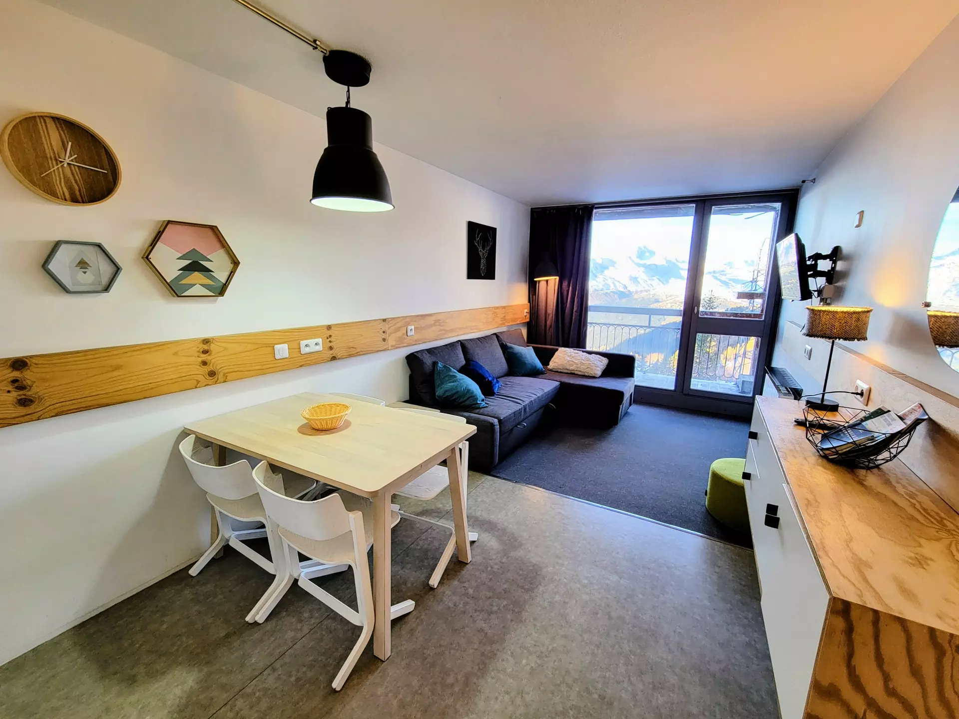 Renovated and welcoming studio apartment, 29m², equipped for 5 people, located on the 10th floor of the Varet 2 residence, with a north/northwest facing balcony offering views of Mont Blanc.