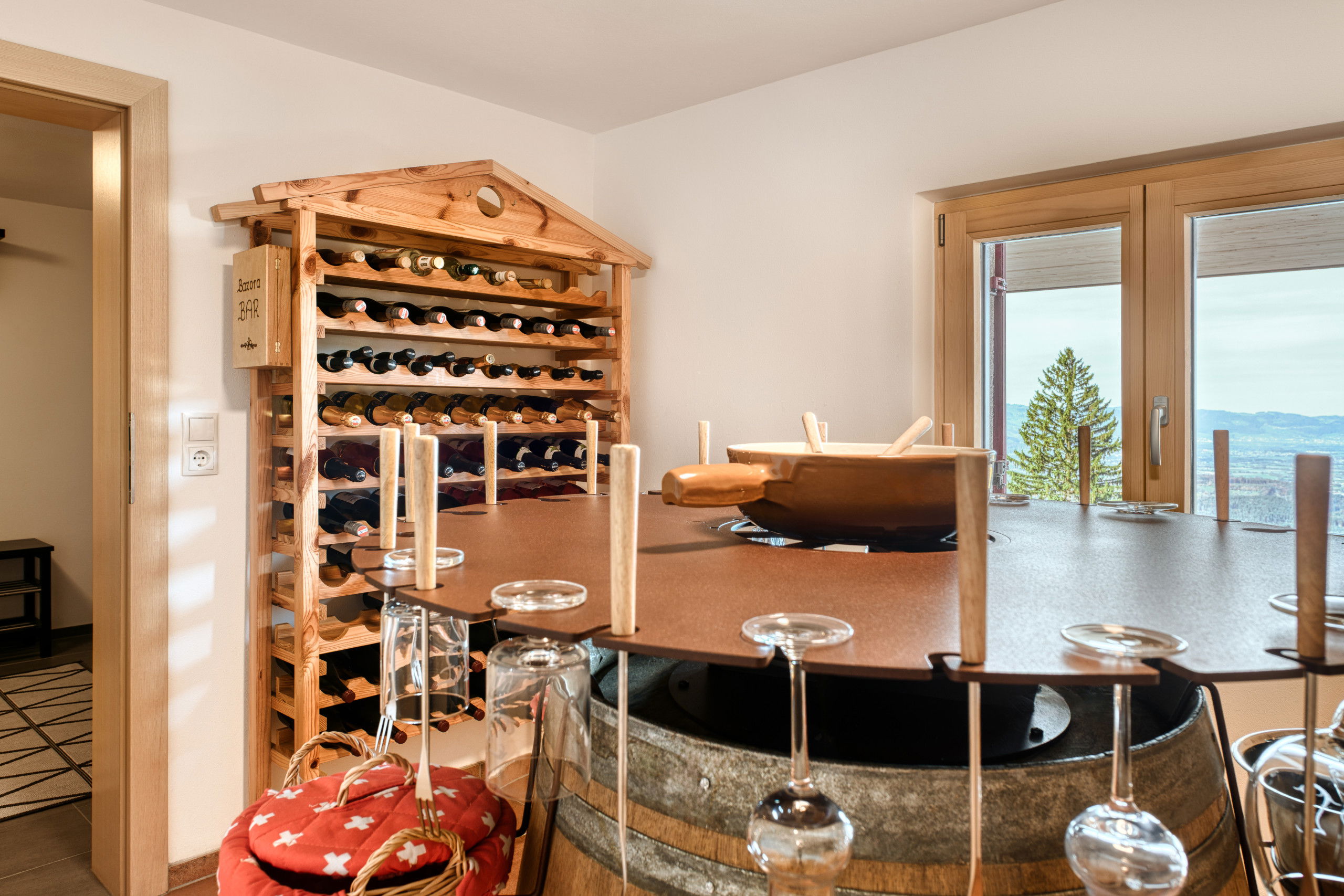 For sociable hours, a lovingly designed wine and enjoyment room with a large sn of wines and a fondue bar is available on the ground floor – a atmospheric place for cosy evenings.