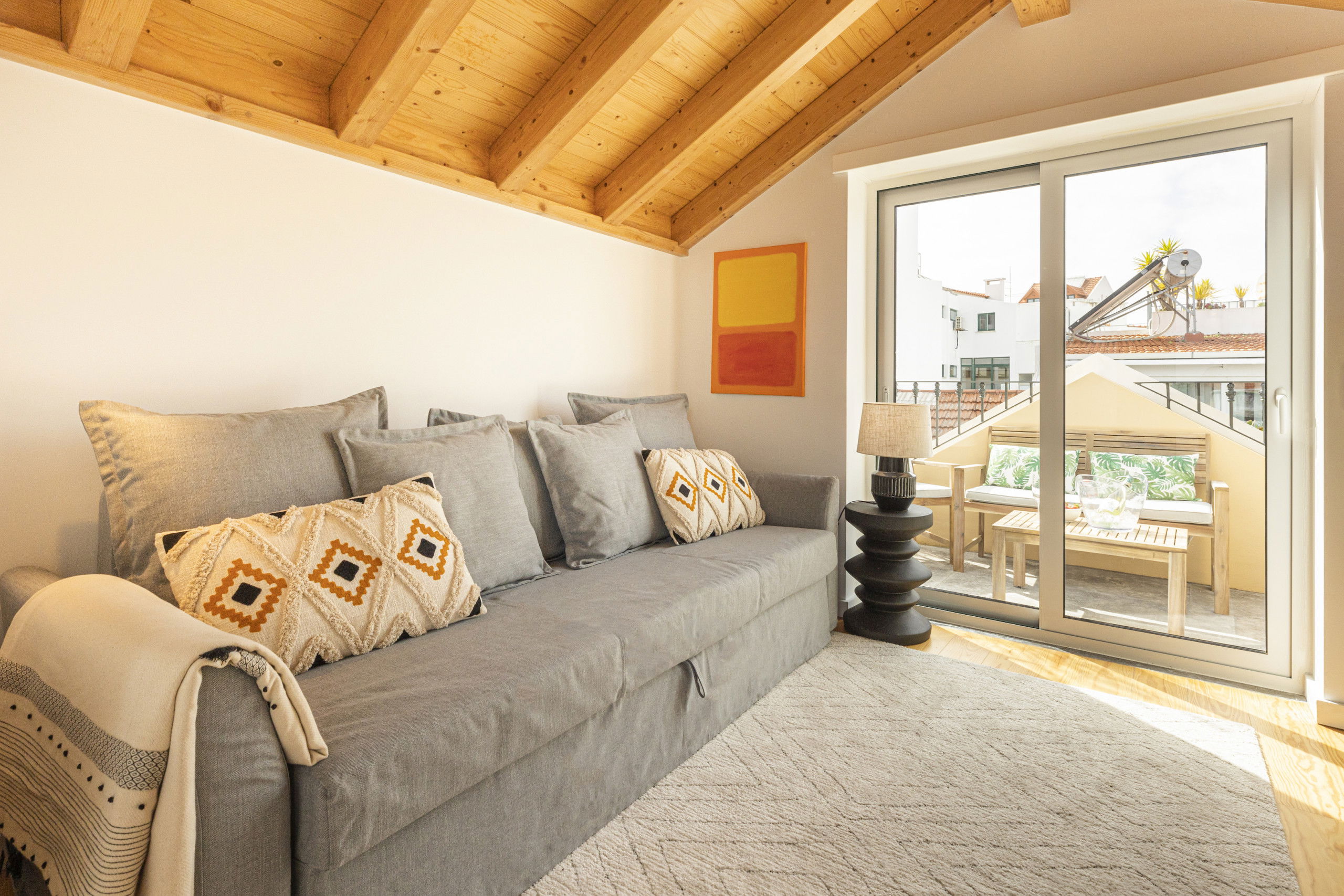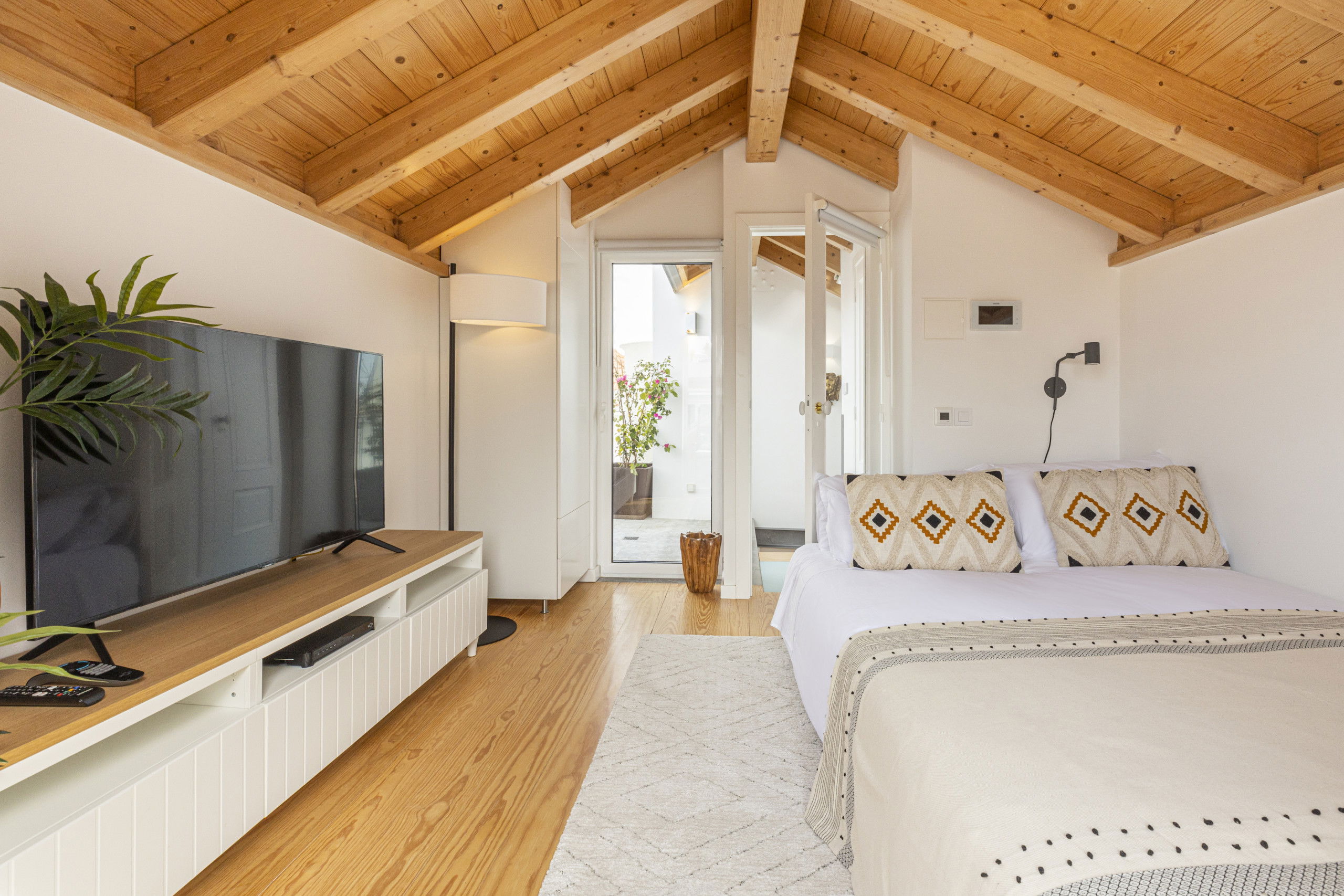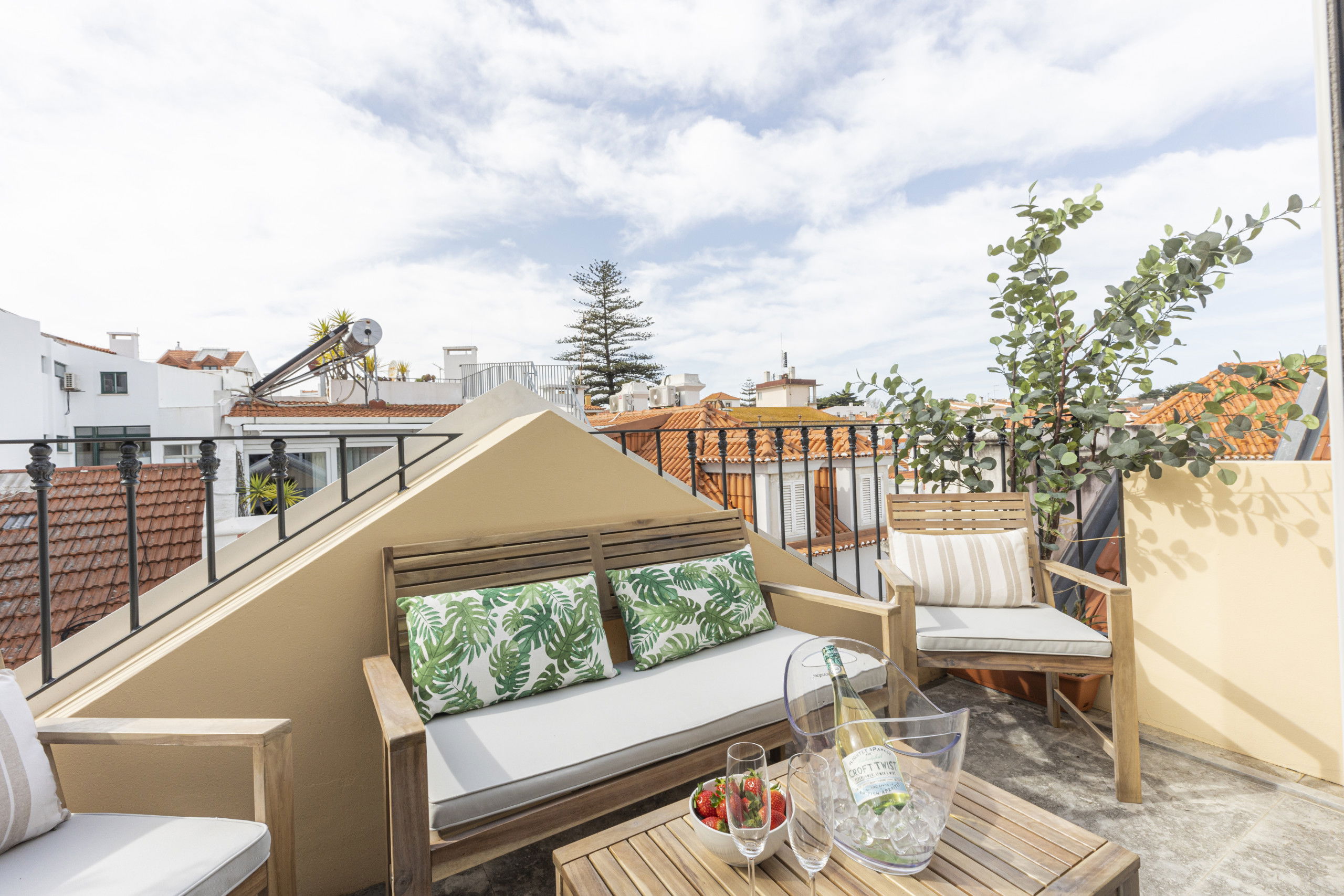 The fun and quirky details of this house are sure to delight and add character to your stay. Colourful artwork adorns the walls and the unique furnishings and décor reflect the vibrant culture of Portugal. Downstairs you will find an open-plan living room/kitchen with a contemporary but cosy feel, tiled floors, and exposed wooden beams. Head upstairs and on the floor there are 2 large, light-filled double bedrooms, beautifully decorated with wooden floors, and fitted wardrobes and there are 2 modern bathrooms. On the top floor, there is a large sunny sitting room that can be converted into a third double bedroom if required. Doors lead directly out to a small private terrace, with gorgeous views across the Cascais rooftops to the bay beyond, the perfect spot for a sundowner or 2! There is also a small bathroom on this floor.