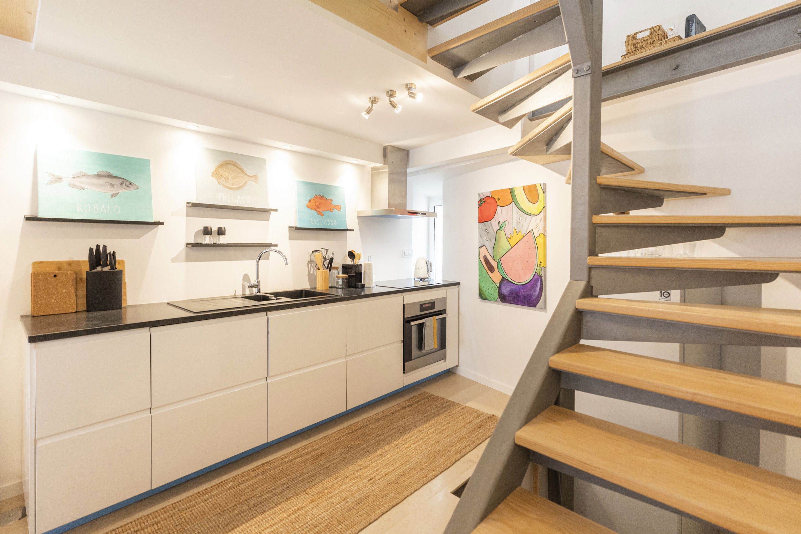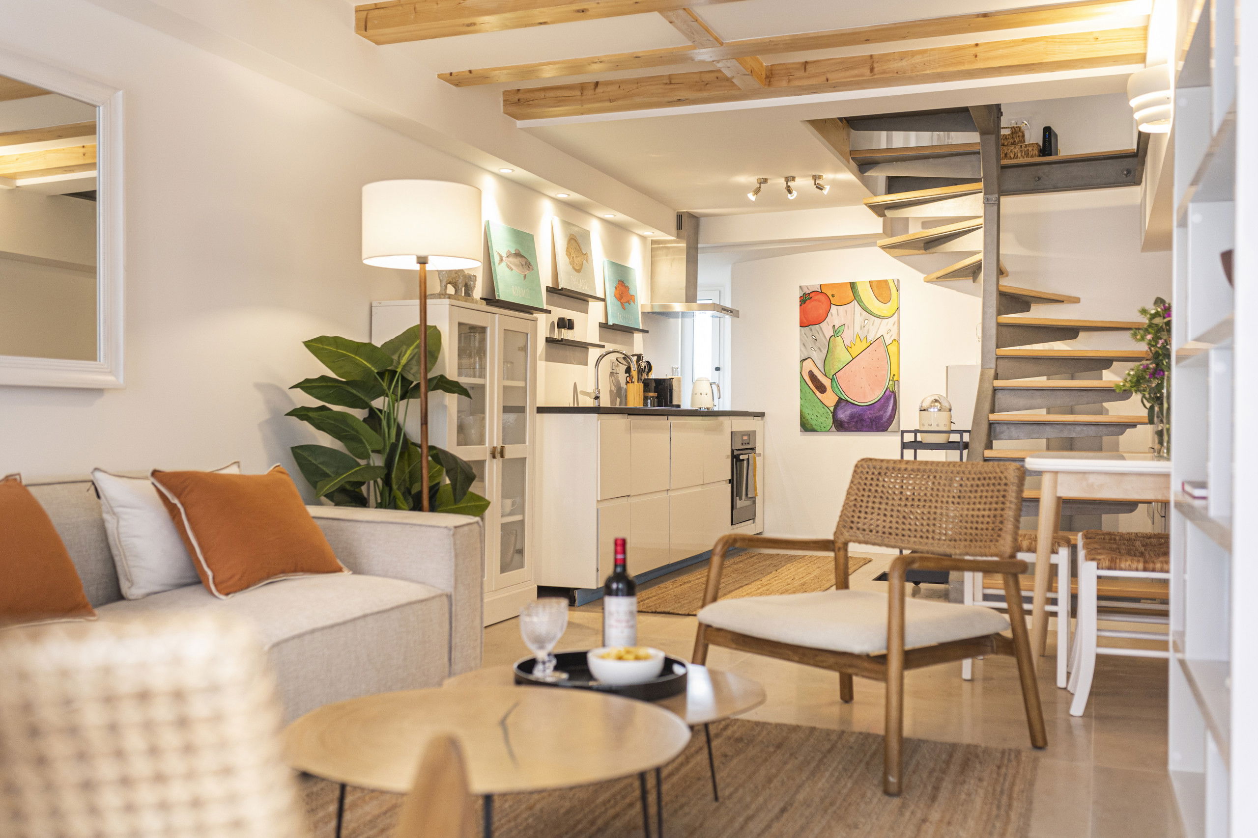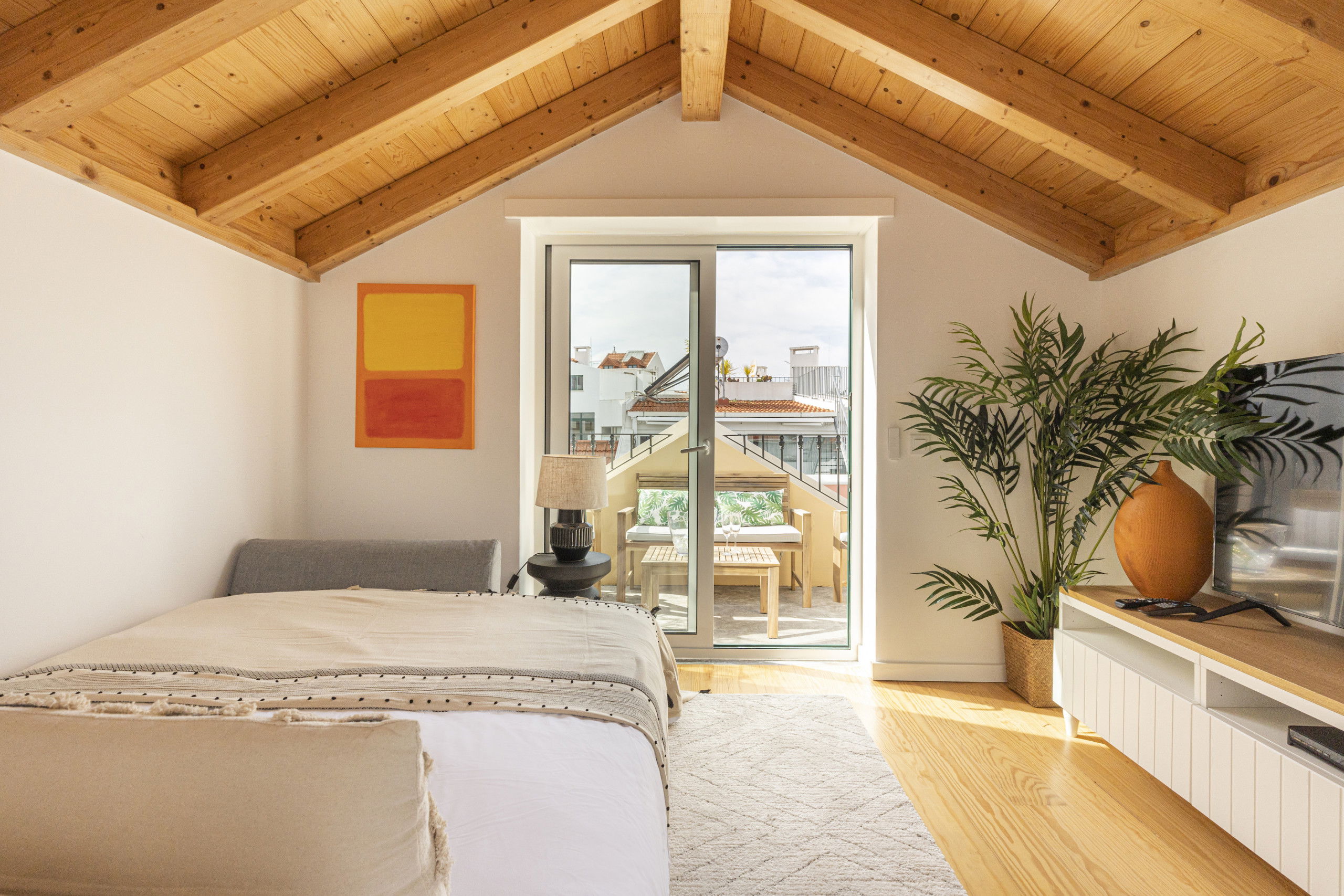 The fun and quirky details of this house are sure to delight and add character to your stay. Colourful artwork adorns the walls and the unique furnishings and décor reflect the vibrant culture of Portugal. Downstairs you will find an open-plan living room/kitchen with a contemporary but cosy feel, tiled floors, and exposed wooden beams. Head upstairs and on the floor there are 2 large, light-filled double bedrooms, beautifully decorated with wooden floors, and fitted wardrobes and there are 2 modern bathrooms. On the top floor, there is a large sunny sitting room that can be converted into a third double bedroom if required. Doors lead directly out to a small private terrace, with gorgeous views across the Cascais rooftops to the bay beyond, the perfect spot for a sundowner or 2! There is also a small bathroom on this floor.
