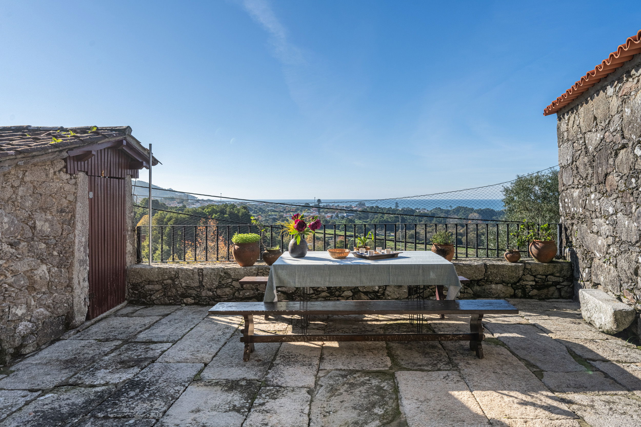 Located in Cristelo, just five minutes from Caminha and the beautiful sandy beach of Moledo, this inviting property brings together two traditional stone houses—the Main Stone House and the Stone Cottage—rented exclusively together to create a serene coastal retreat. Perfect for families or groups, the homes combine comfort, privacy and authentic rustic charm, all framed by magnificent sea views.