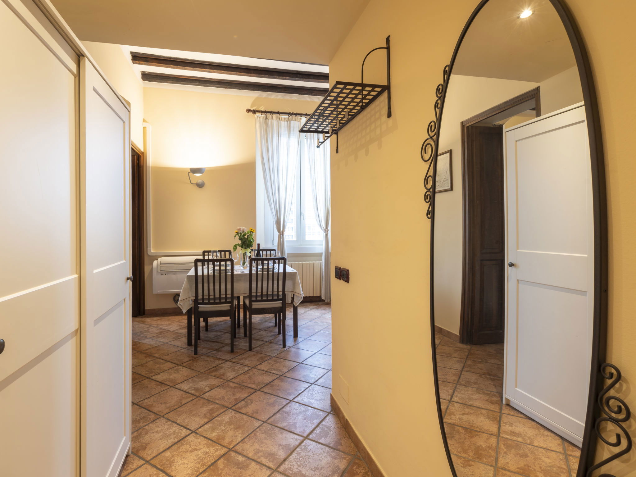 2-room apartment 65 m2 on 3rd floor, west facing position. Spacious and bright, practical and comfortable furnishings: large living/dining room with 1 double sofabed, dining table and TV. 1 room with 1 double bed. Kitchenette (oven, 2 gas rings, toaster, kettle, microwave, freezer, electric coffee machine, Capsules for coffee machine (Nespresso) free). Shower/bidet/WC. Heating, air-conditioning. Panoramic view of the city and Mura Spagnole (1548 d.c.). Facilities: washing machine, iron, children's high chair, baby cot, hair dryer. Internet (WiFi, free). Please note: suitable for families. Non-smokers only. Maximum 1 pet/ dog allowed. Smoke alarm, fire extinguisher. IT015146C2ZWEIU41H