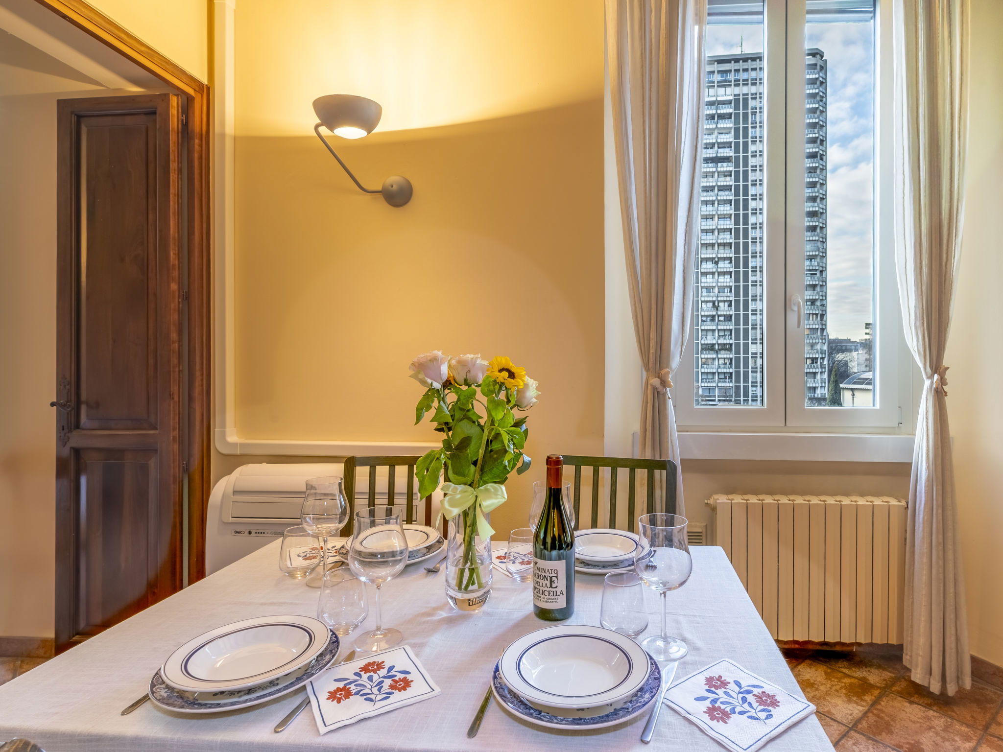 Beautiful, comfortable, historical apartment house "Sabotino City View", 4 storeys, from the 19th century. In the centre of Milano, in the district Porta Romana, in a busy position in the residential district, on a main road. In the house: lift, heating available only from 15.Oct. - 15.Apr.. Public parking on the road extra. Grocery 200 m, supermarket 350 m, restaurant, bar, café 100 m, tram "9" 50 m, bus stop "65" 50 m, railway station "Cadorna (MXP Express Train)" 3.2 km, underground station "Porta Romana (M3)" 50 m, park "Ravizza" 900 m, outdoor swimming pool 400 m, thermal baths "Terme Milano" 150 m. Golf course (18 hole) 9 km. Nearby attractions: Navigli (canal district) 1.8 km, Colonne di San Lorenzo 2.2 km, Piazza del Duomo 2.2 km, Brera district 2.5 km, Castello Sforzesco/ Parco Sempione 3 km, Fiera Milano City / MiCo 5.7 km. Well-known lakes can easily be reached: Lago di Como 52 km. Neighbourhood highly sensitive to noise. Quietness and good behaviour expected.