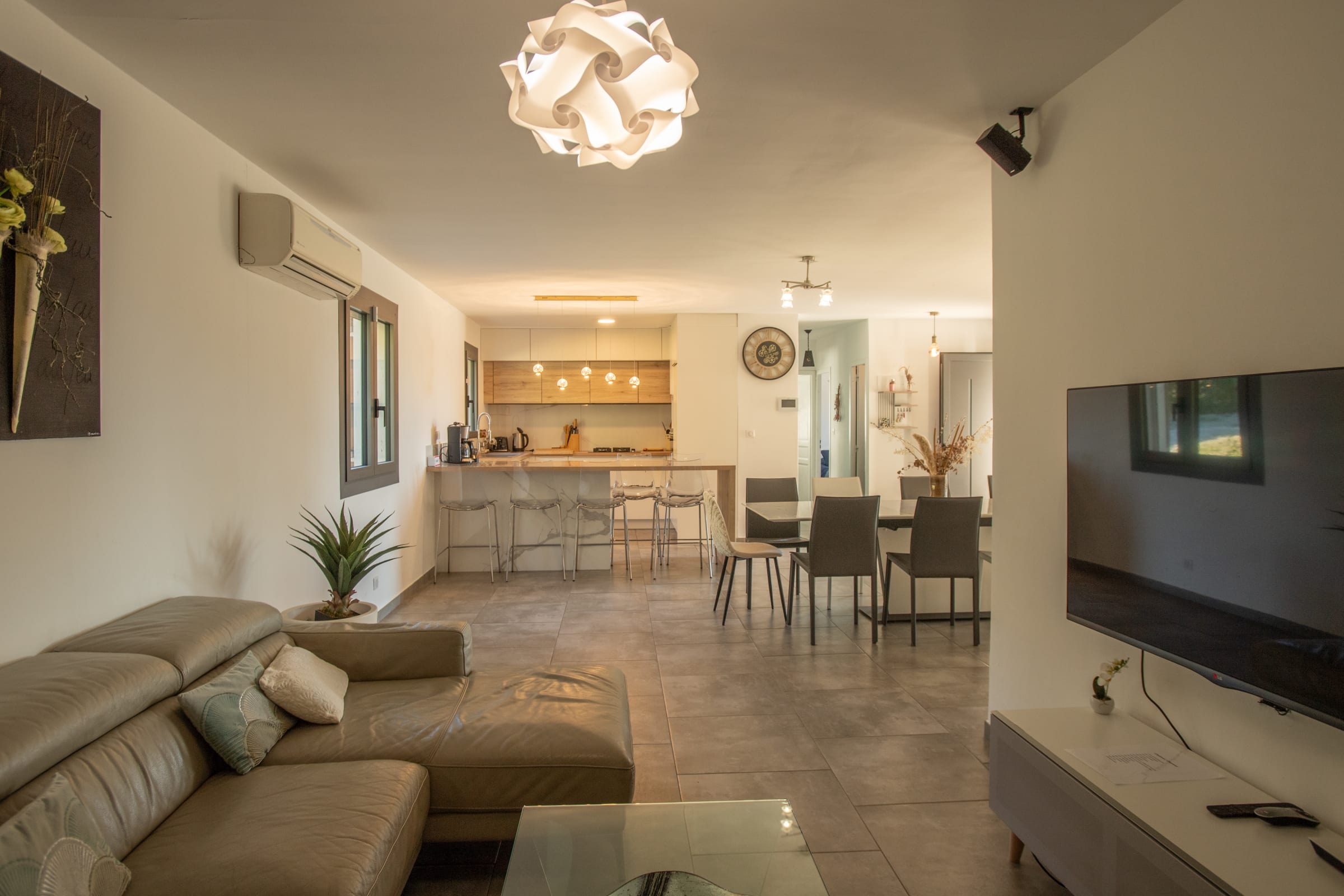 Les pièces de vie sont lumineuses et agréables, ouvertes sur l’extérieur, avec climatisation dans la maison et connexion Wi-Fi, pour un séjour aussi reposant que pratique.