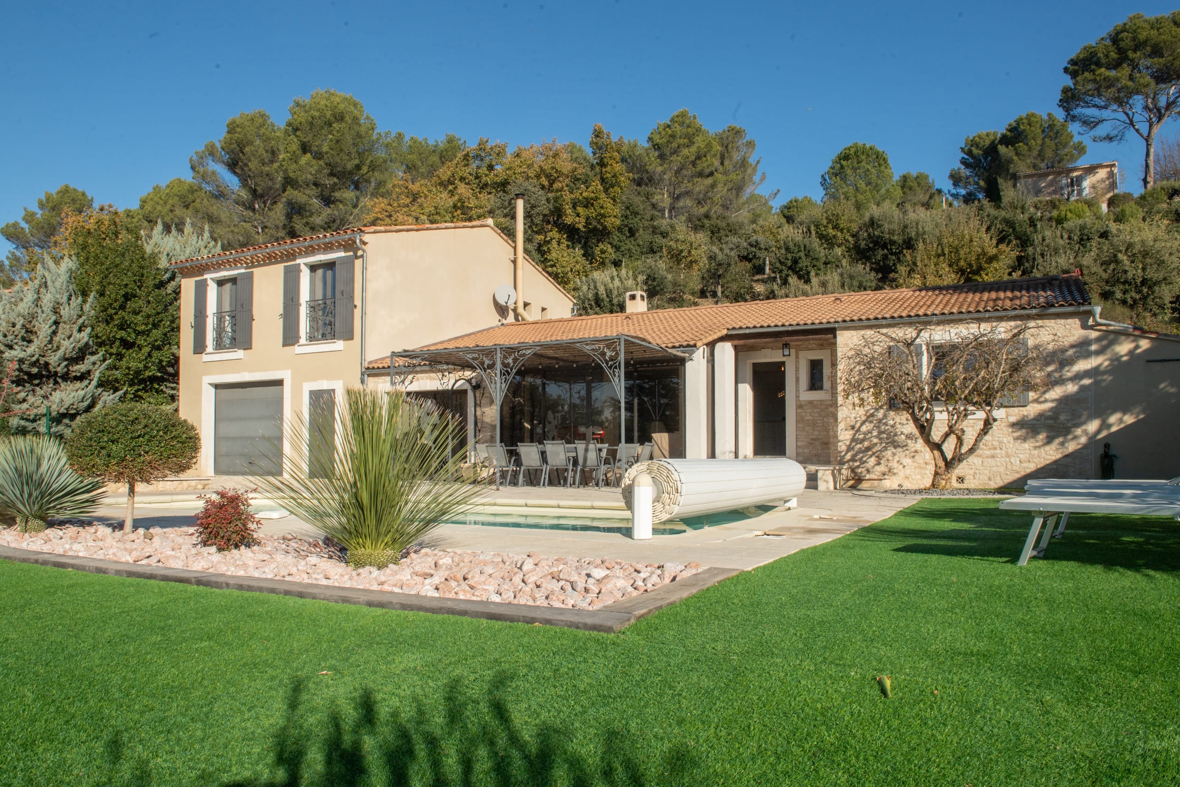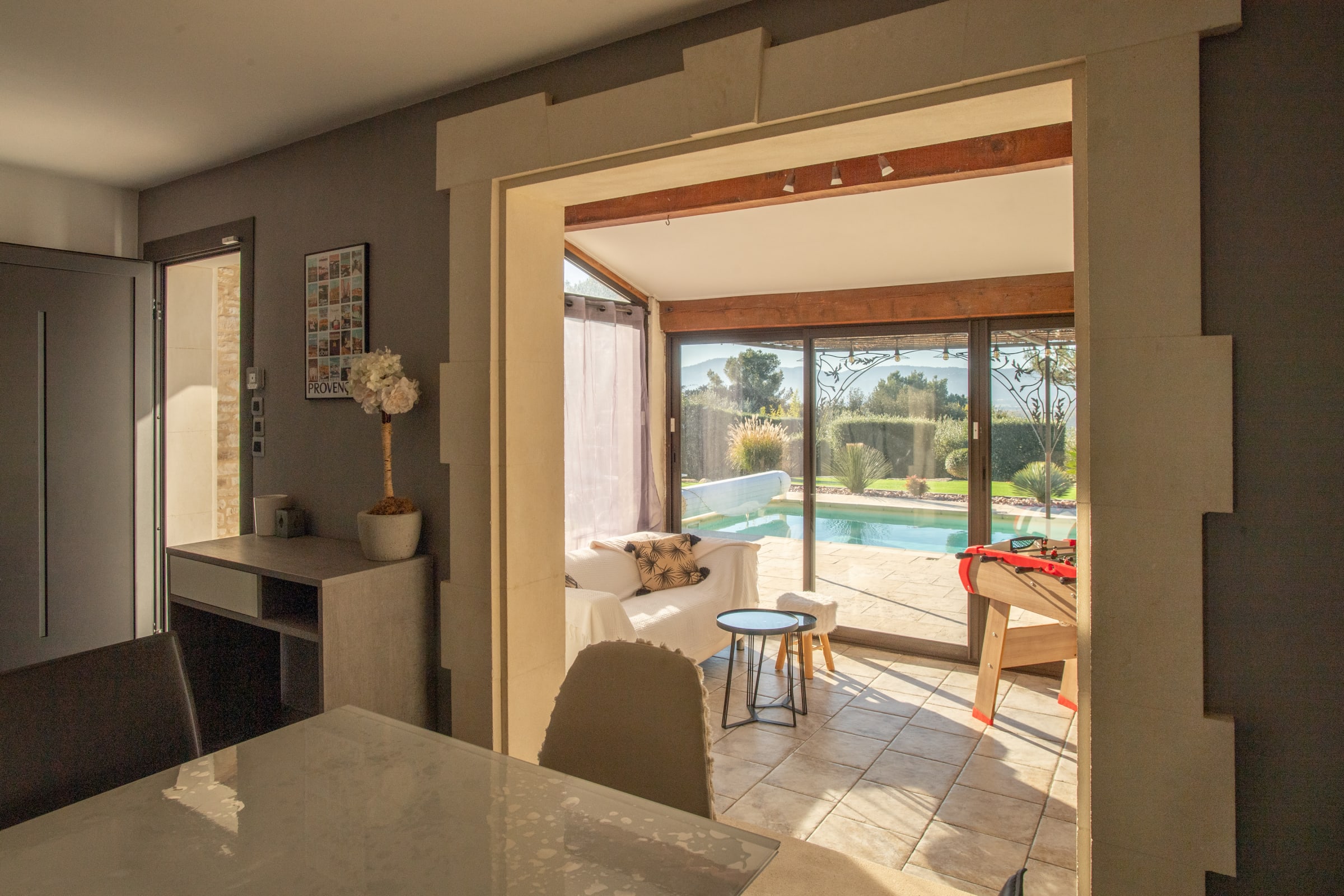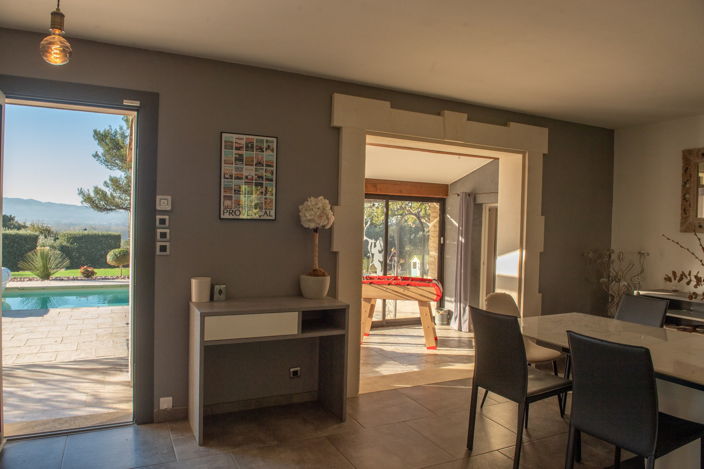 La villa bénéficie également d’une vue dégagée côté Durance, apportant une atmosphère apaisante et une vraie sensation d’évasion.