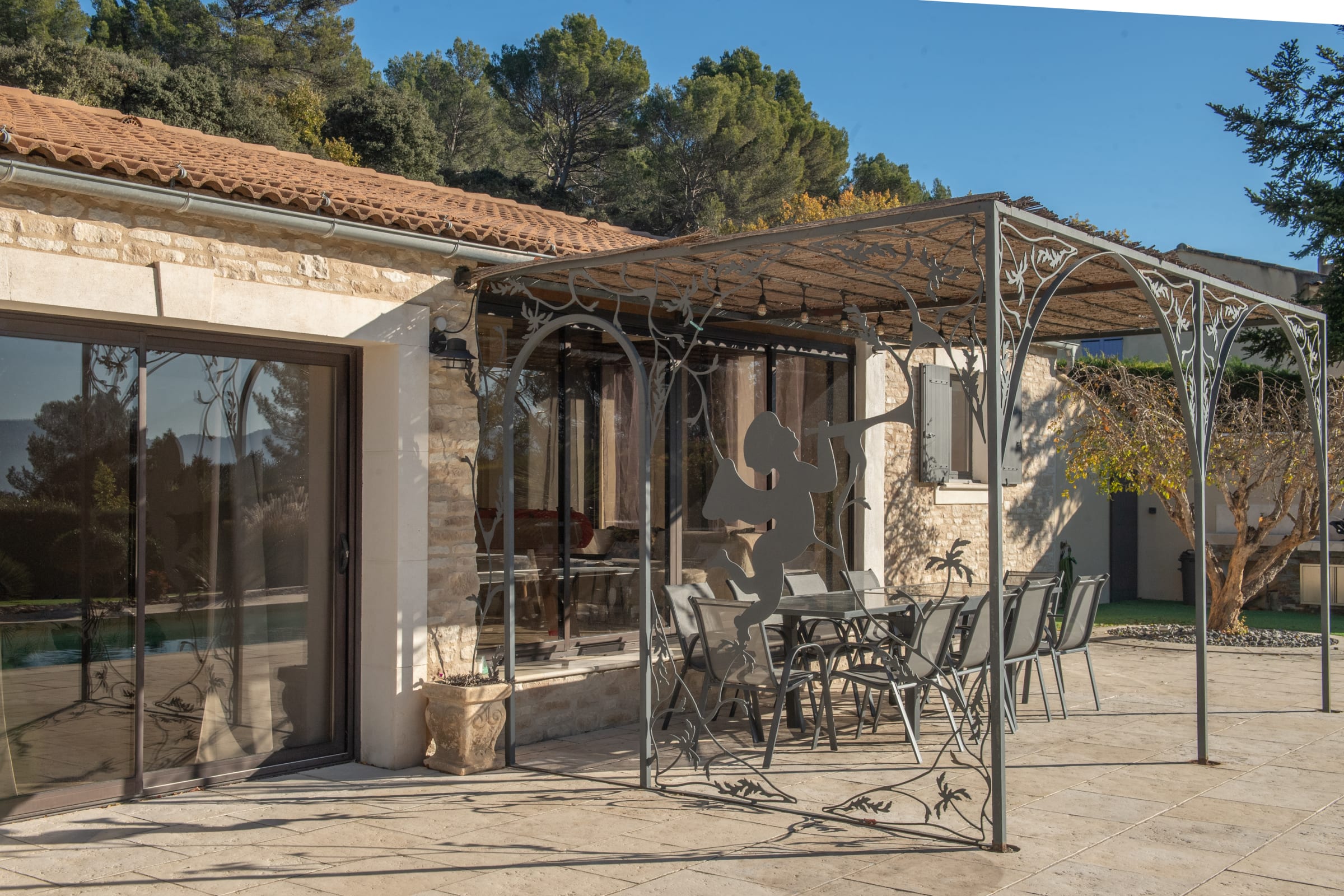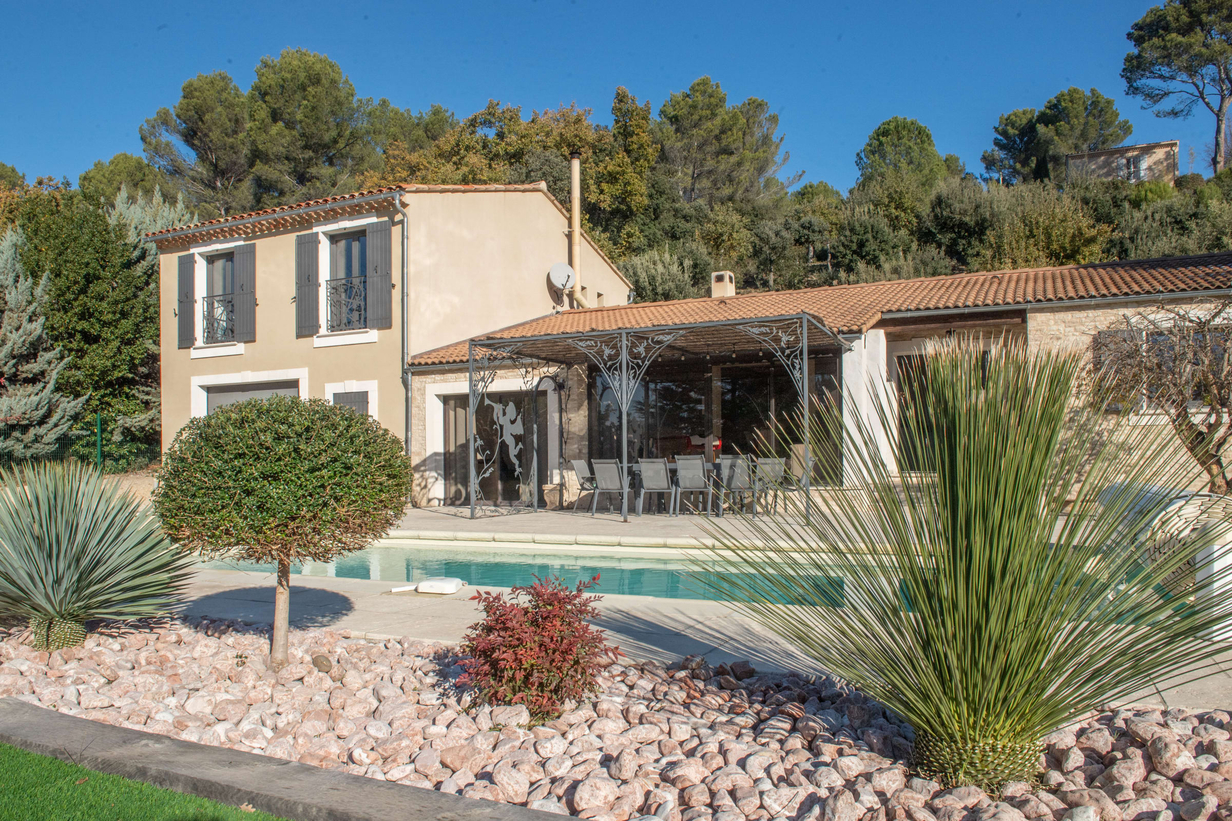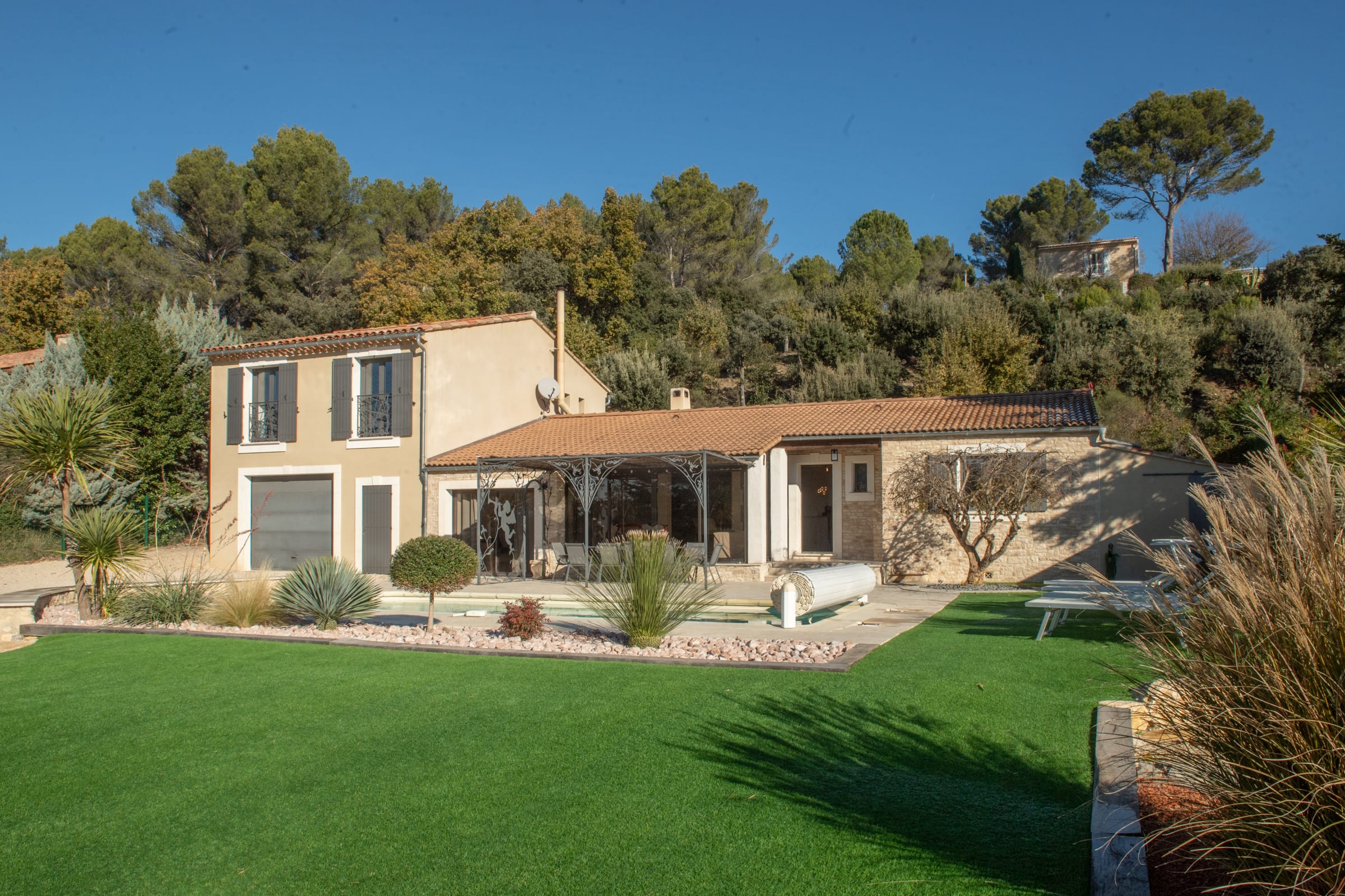 La villa bénéficie également d’une vue dégagée côté Durance, apportant une atmosphère apaisante et une vraie sensation d’évasion.